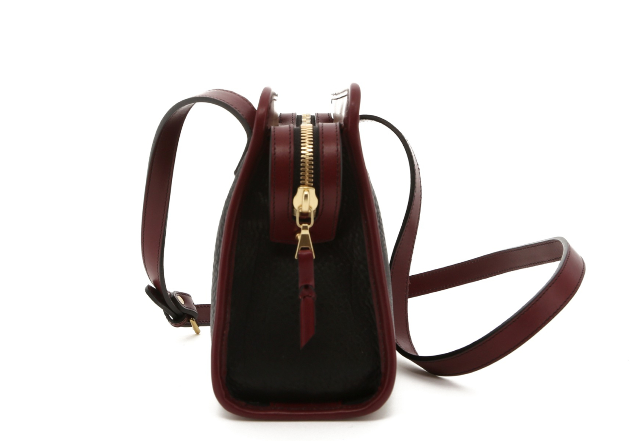 Blazer Bag - Black Pebble Leather / Maroon Belting Trim - Grey Cordura Lining