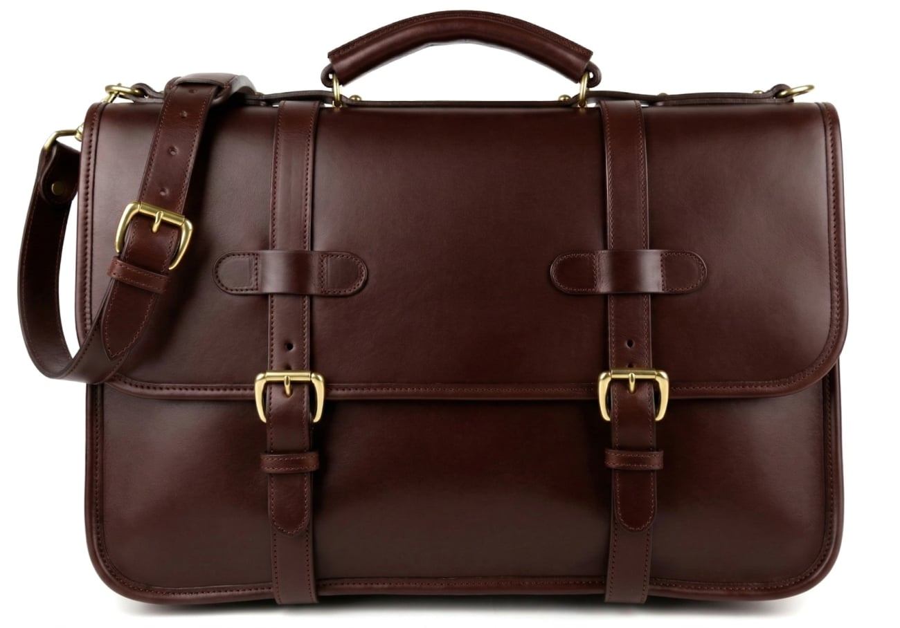 This notable yet casual version of our iconic English Briefcase was designed over 40 years ago as an alternative for the more informal professional and remains a true heirloom of craftsmanship to this very day. This hardworking business bag has a thoughtfully organized interior and hands-free optional strap. With its distinctive flap design and functioning buckles, this will undoubtedly be the talk of the office.