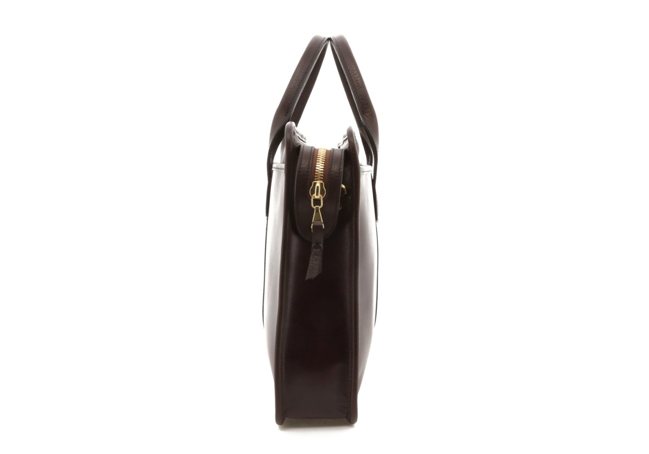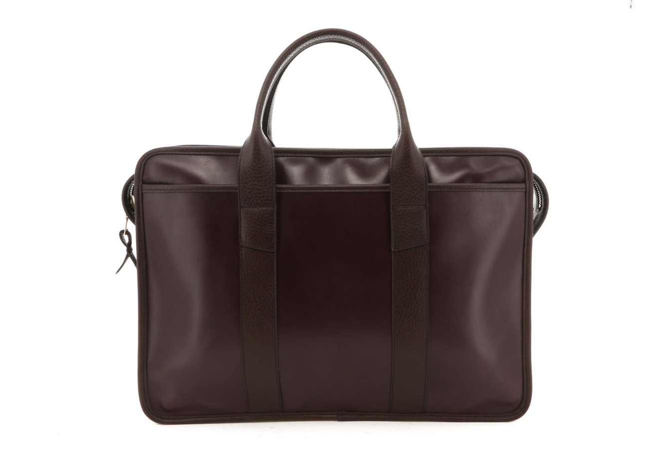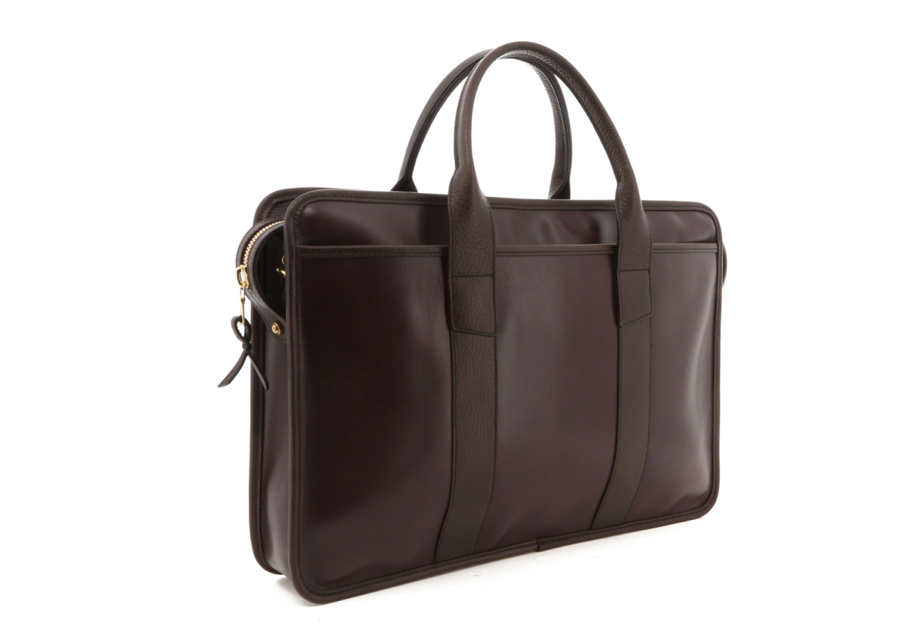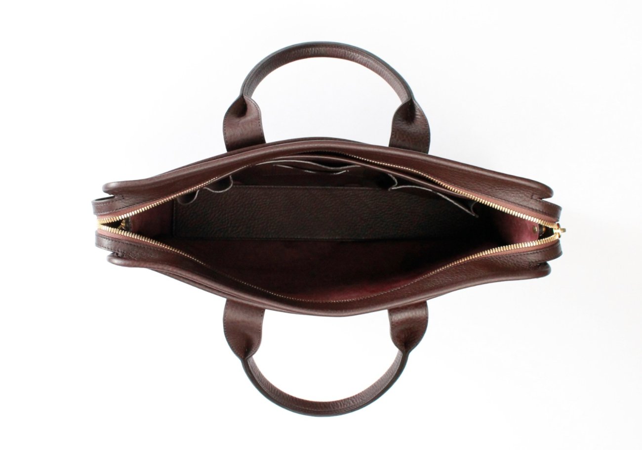Bound Edge Zip-Top Briefcase - Eggplant/Brown Trim - Belting Leather