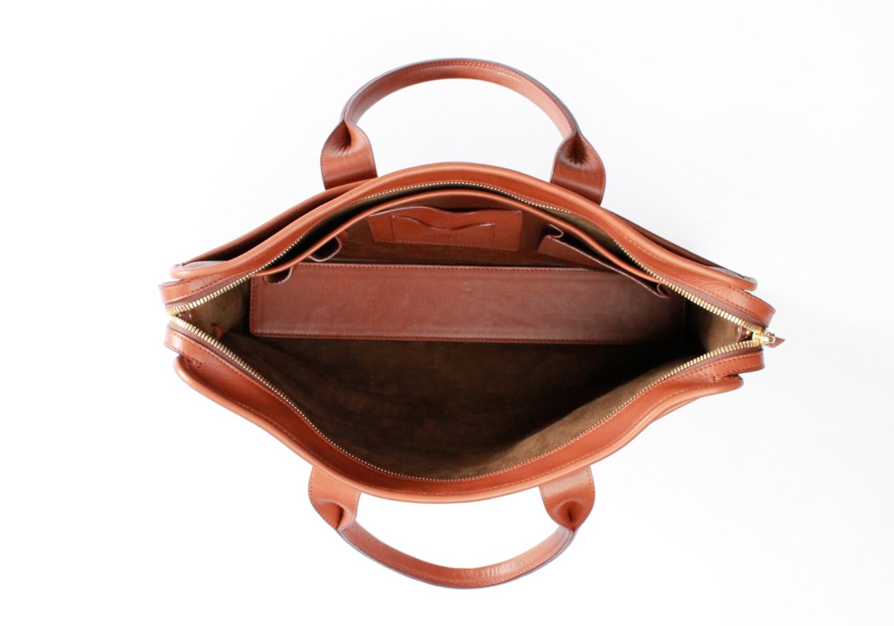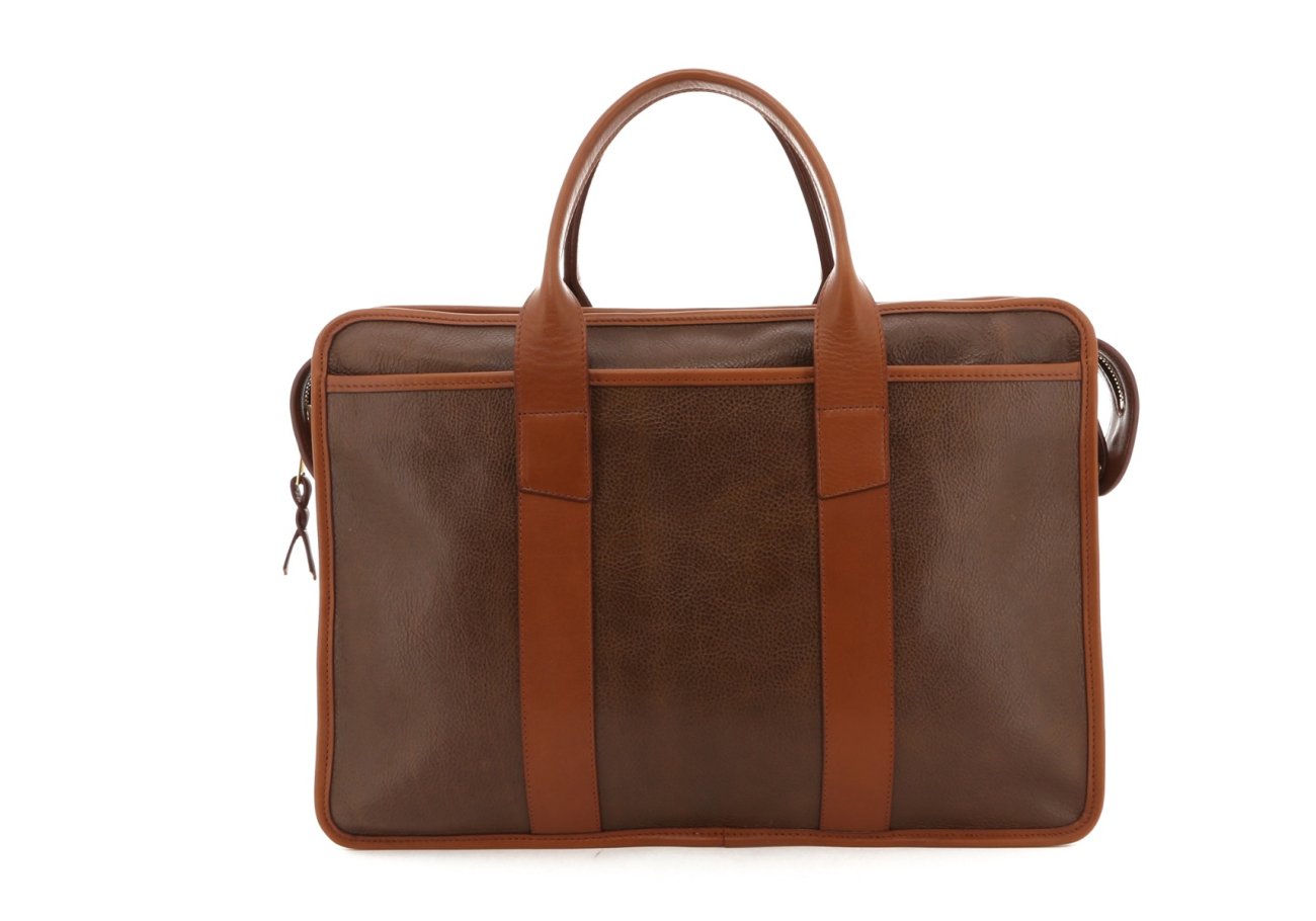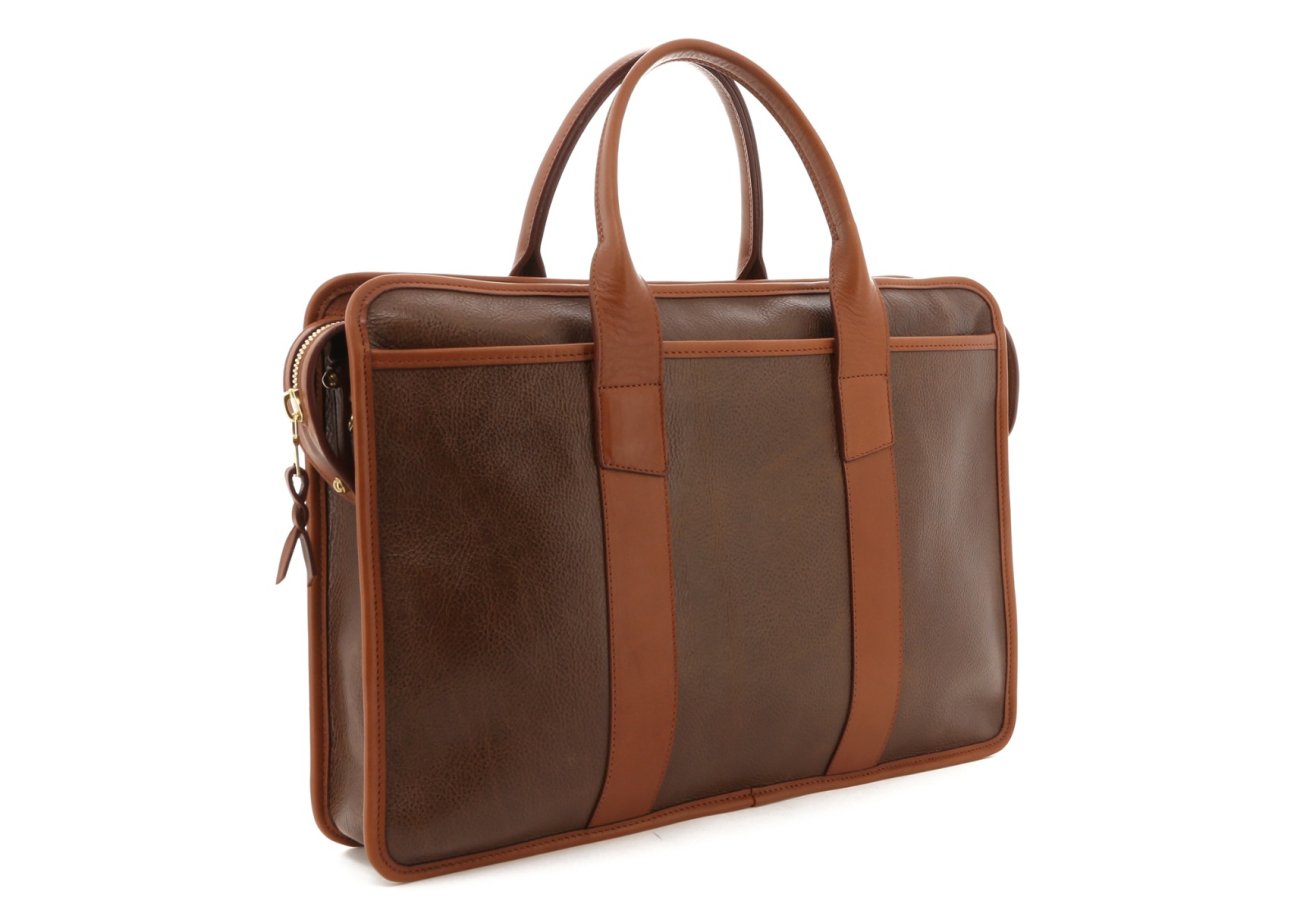 Bound Edge Zip-Top Briefcase - Toffee / Cognac Trim - Tumbled Leather