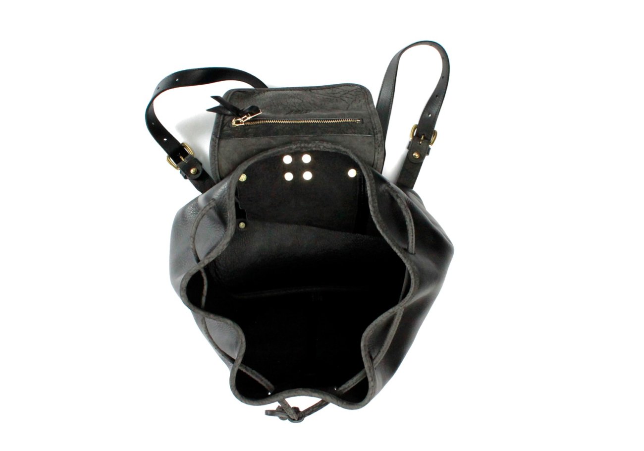Classic Backpack - Black - Slate Grey Goatskin Trim - Tumbled