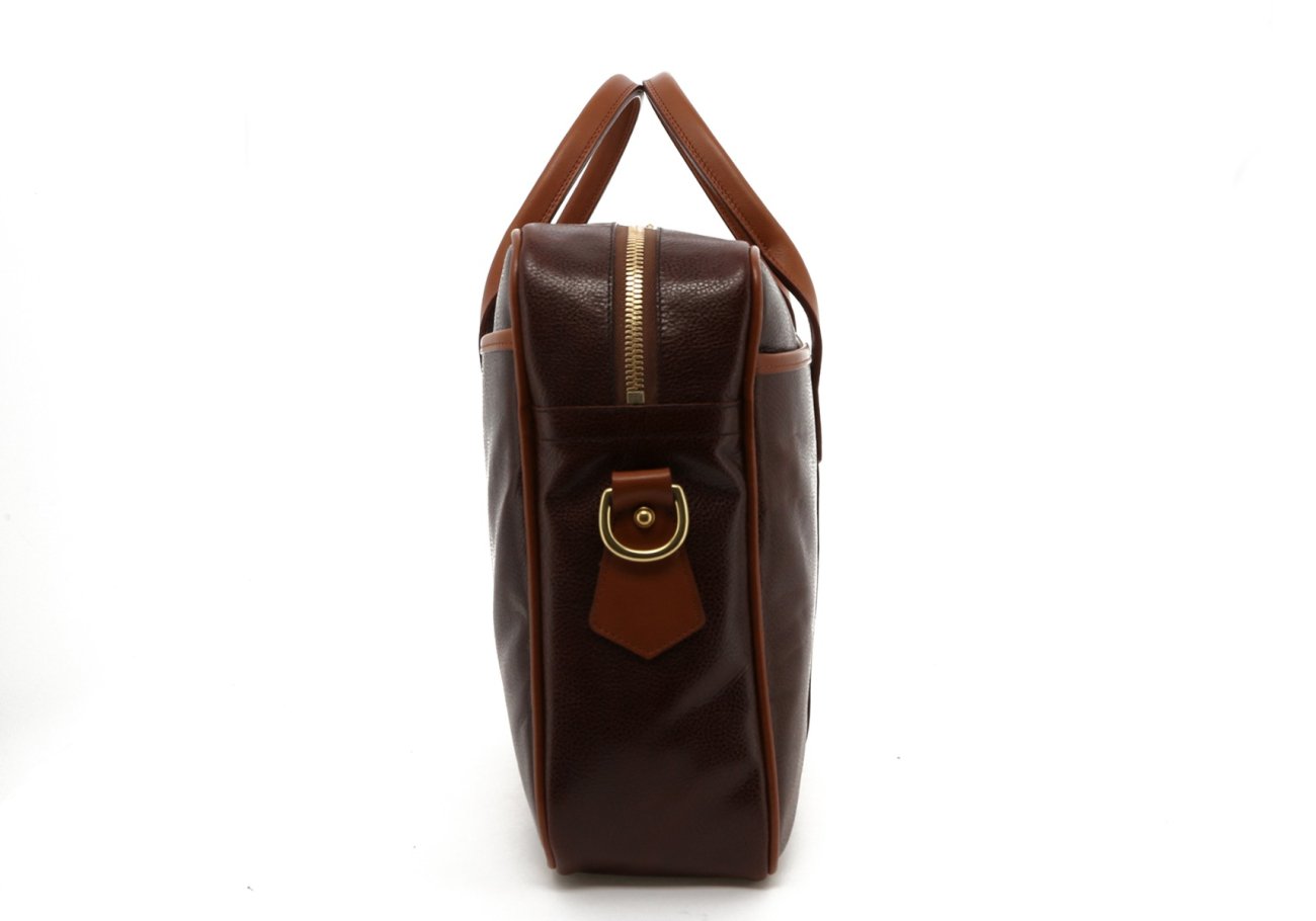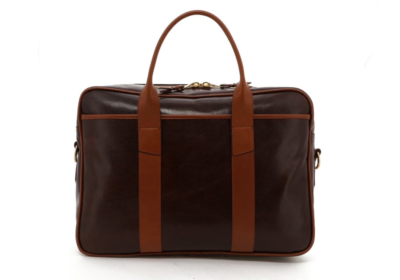 Commuter Briefcase - Glossy Chocolate Goatskin / Cognac Trim