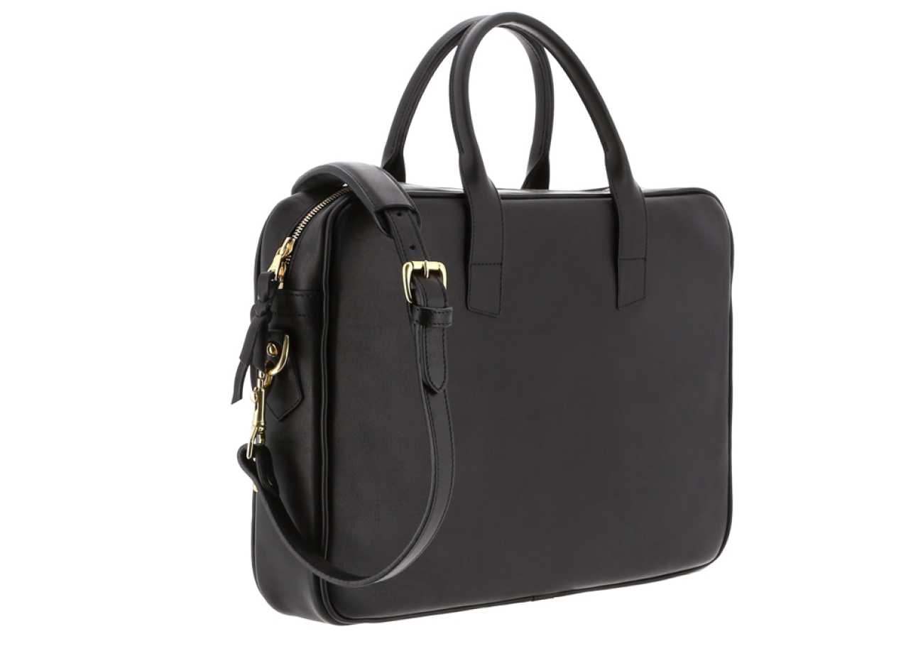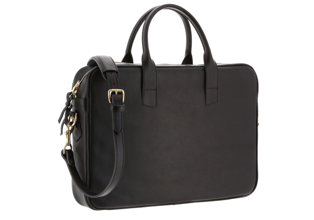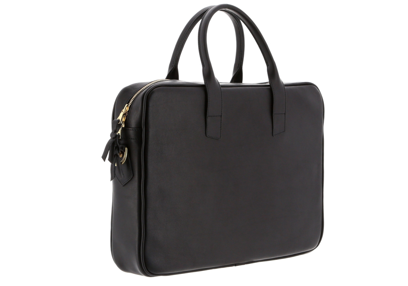 Computer Briefcase - Tumbled - Black - 2 Full Length Exterior Pockets