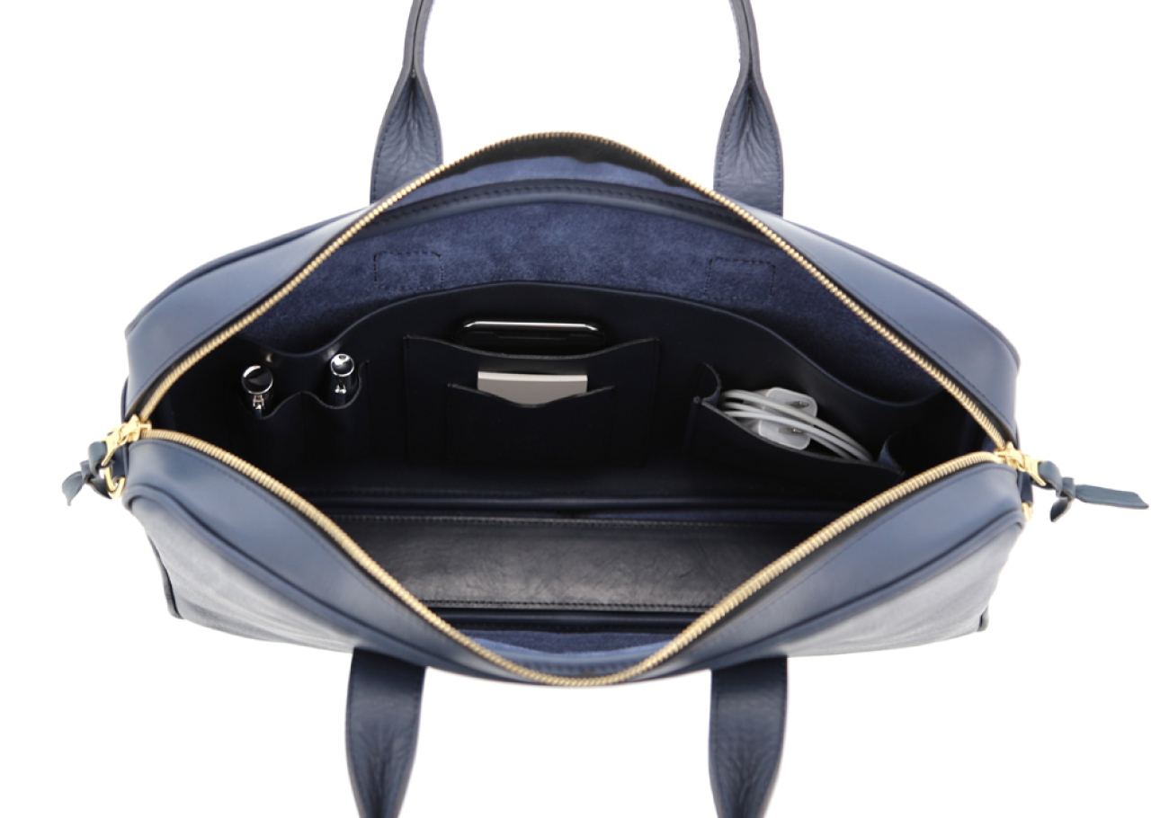 Computer Briefcase - Tumbled - Navy - Charcoal Sunbrella Lining