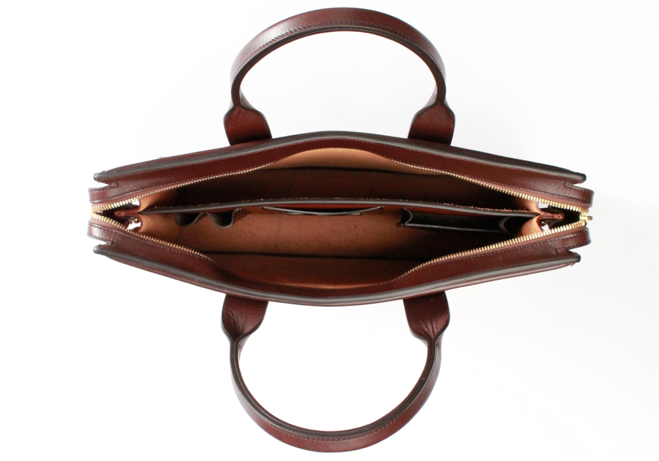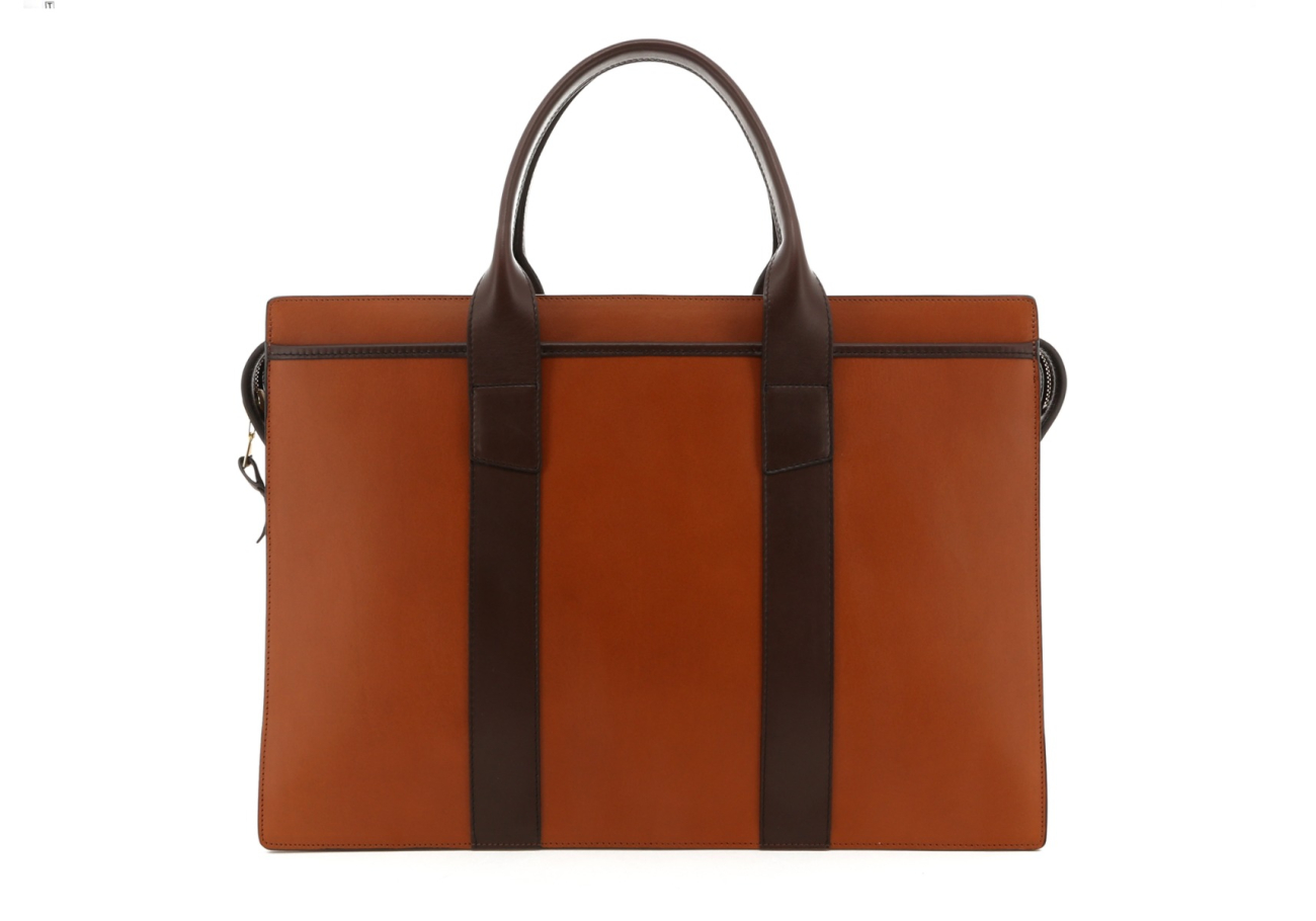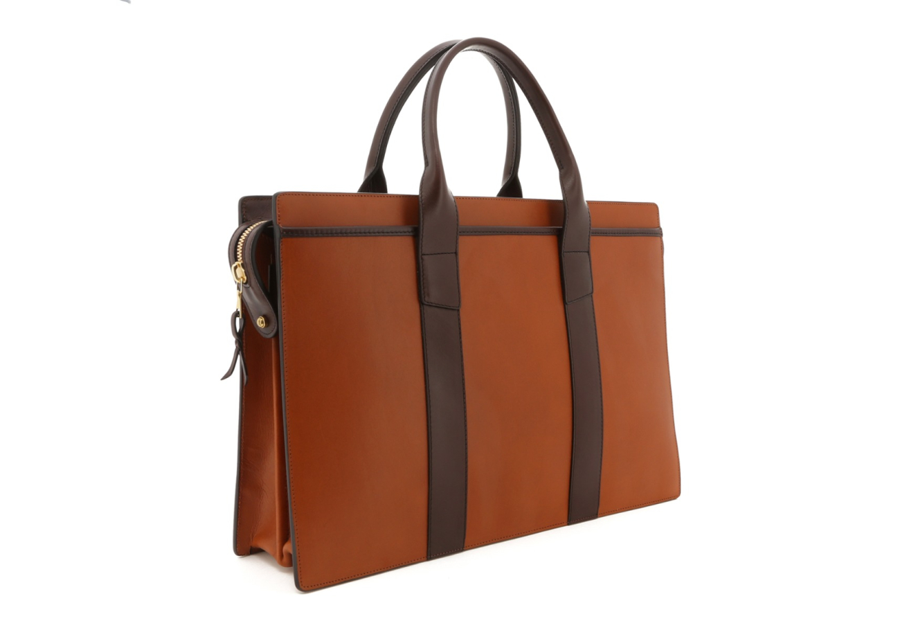 Double Zip-Top Briefcase - Cognac/Chocolate Trim - Belting