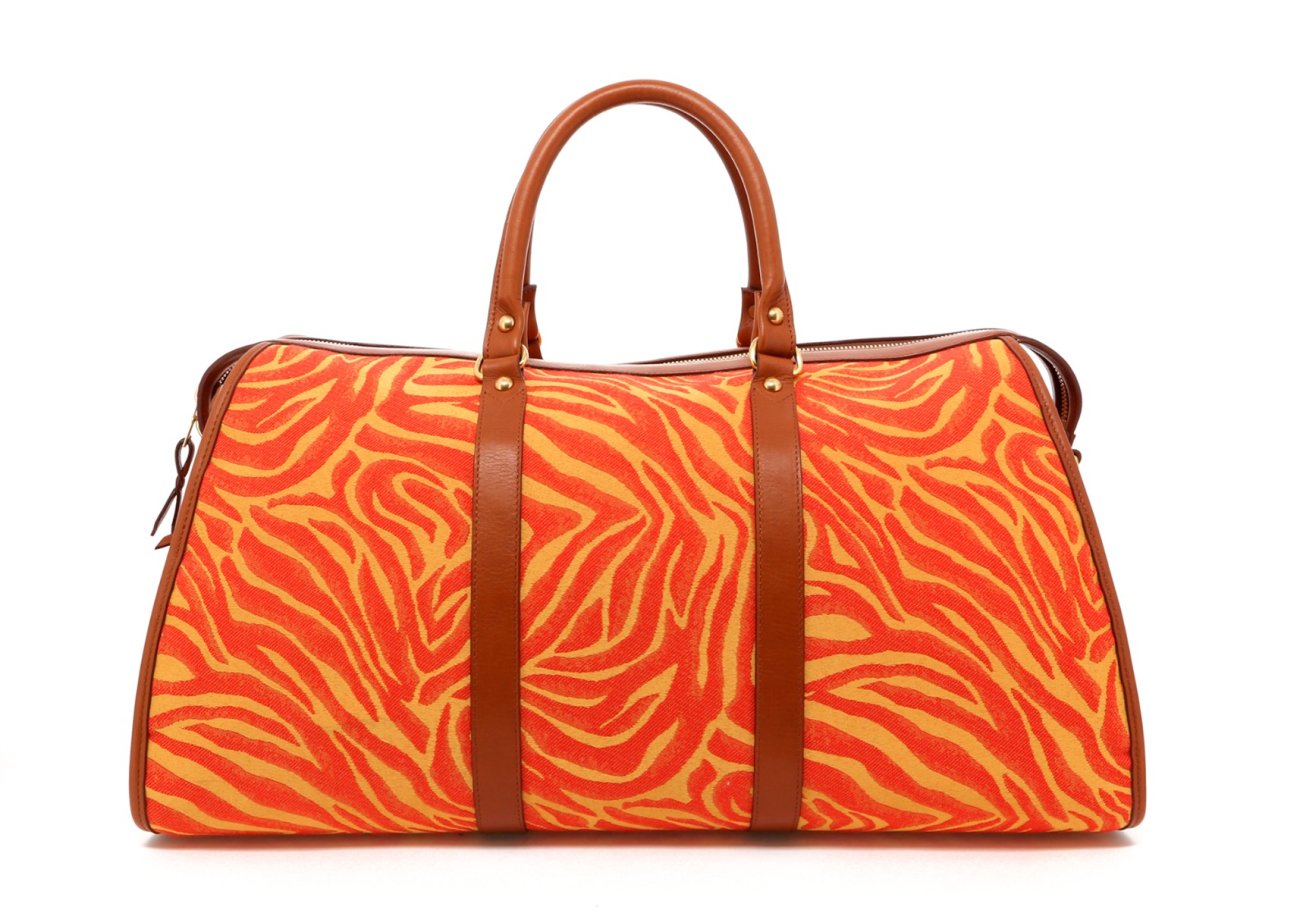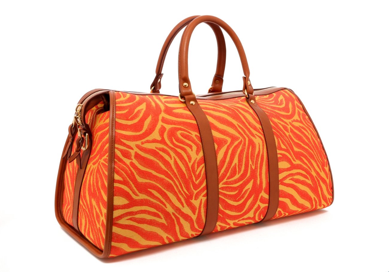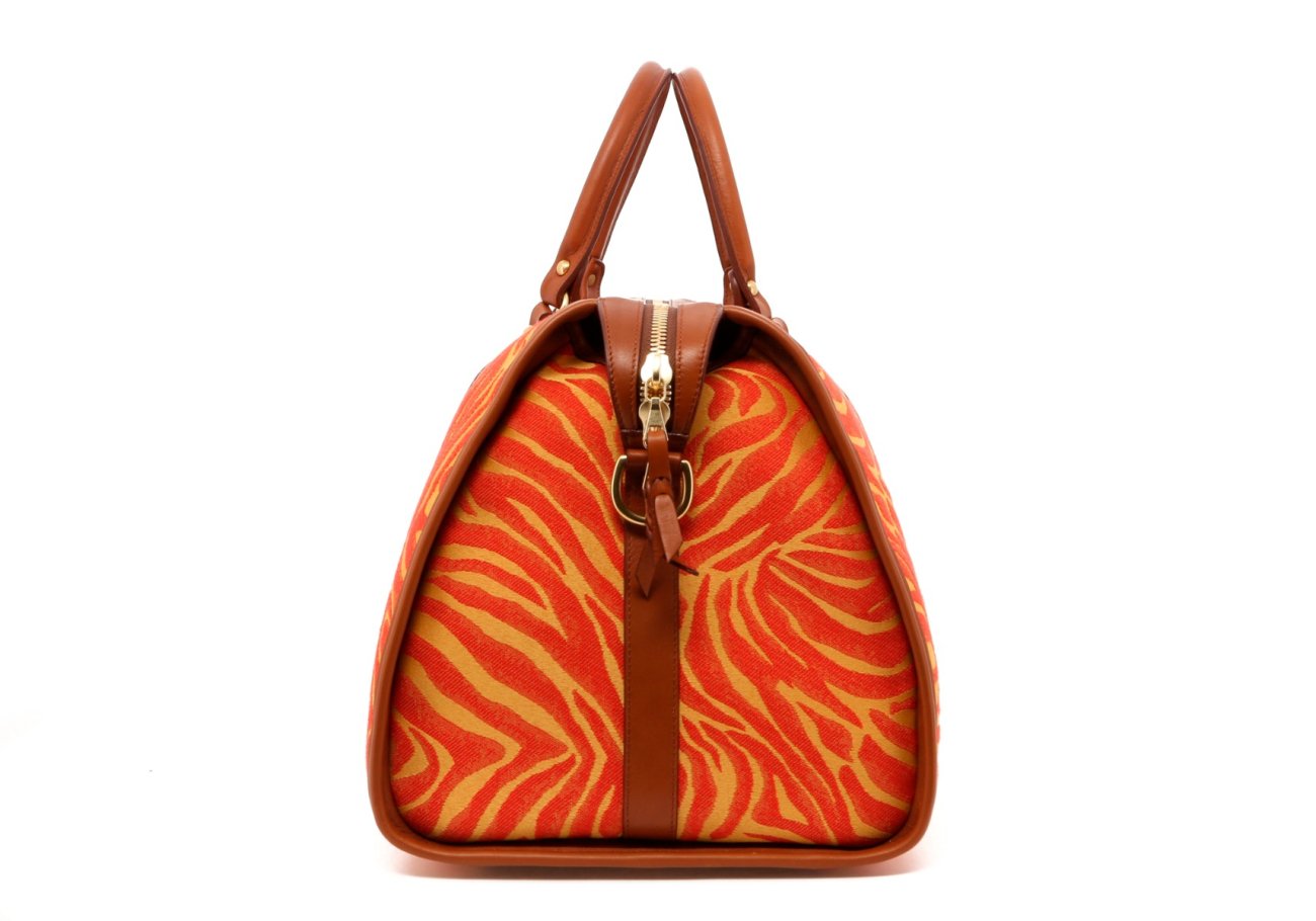 Hampton Duffle - Tango/Citrus Animal Print - Cognac Trim