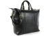 Zipper Tote Bag Tumbled Black Silver Hardware