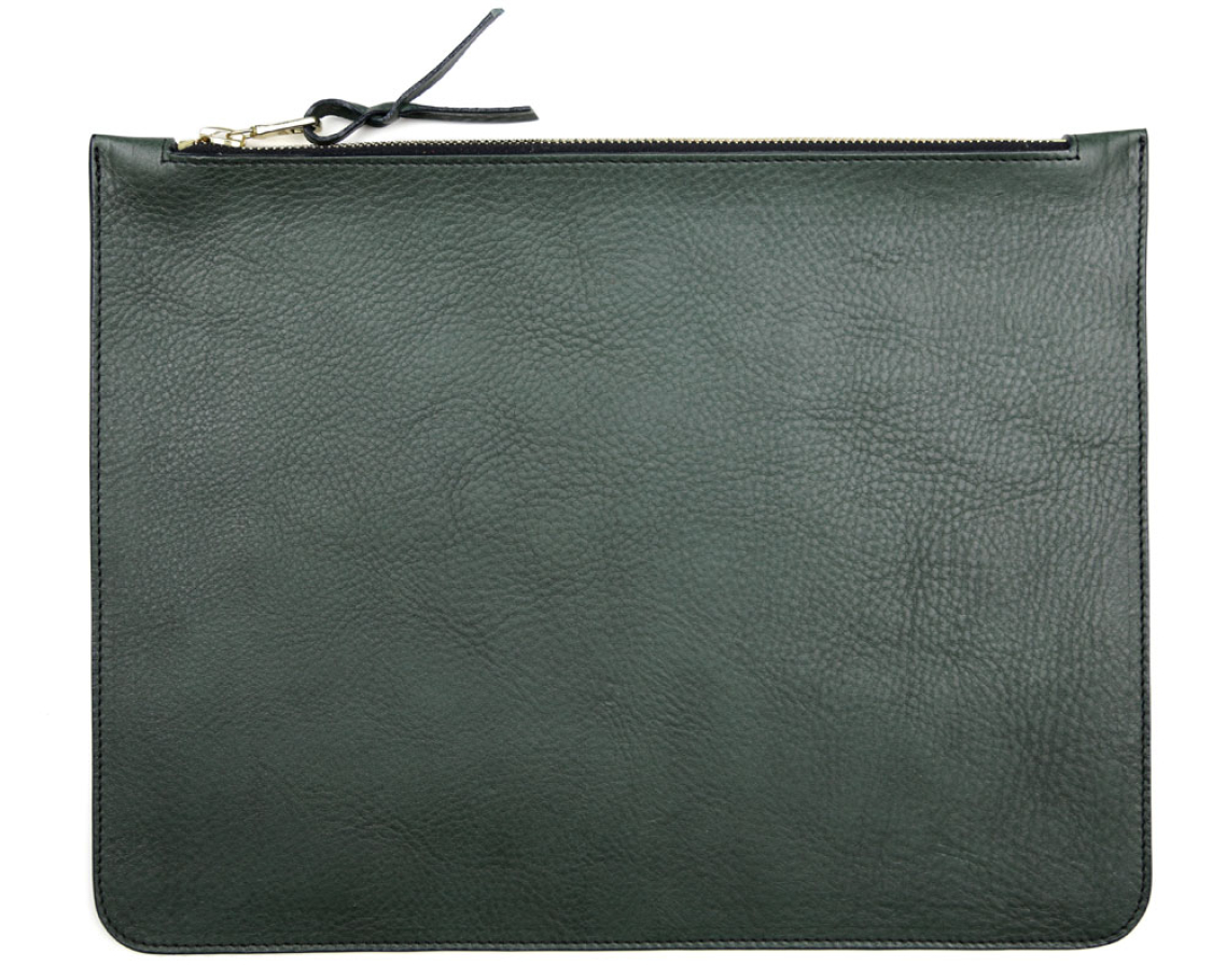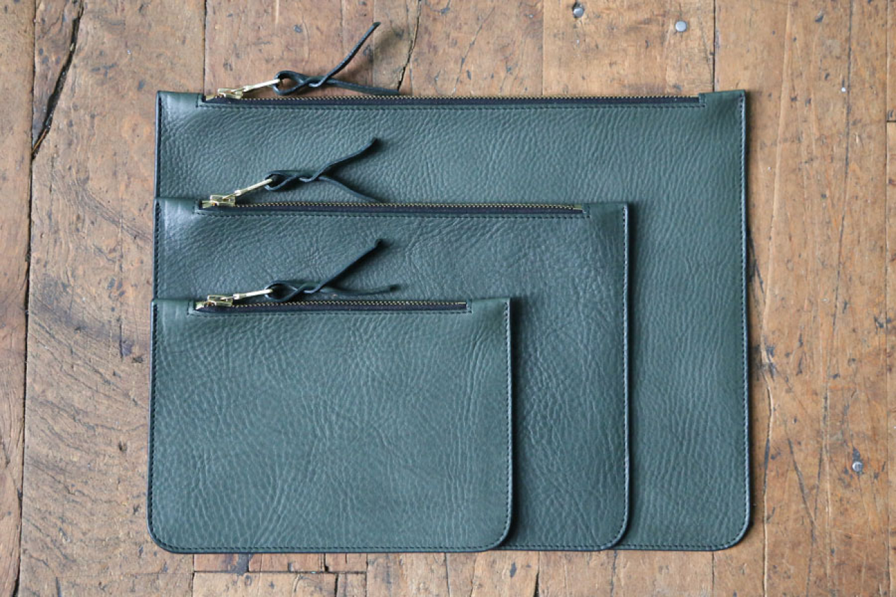 Large Leather Zipper Pouch - Tumbled - Green - Custom Logo