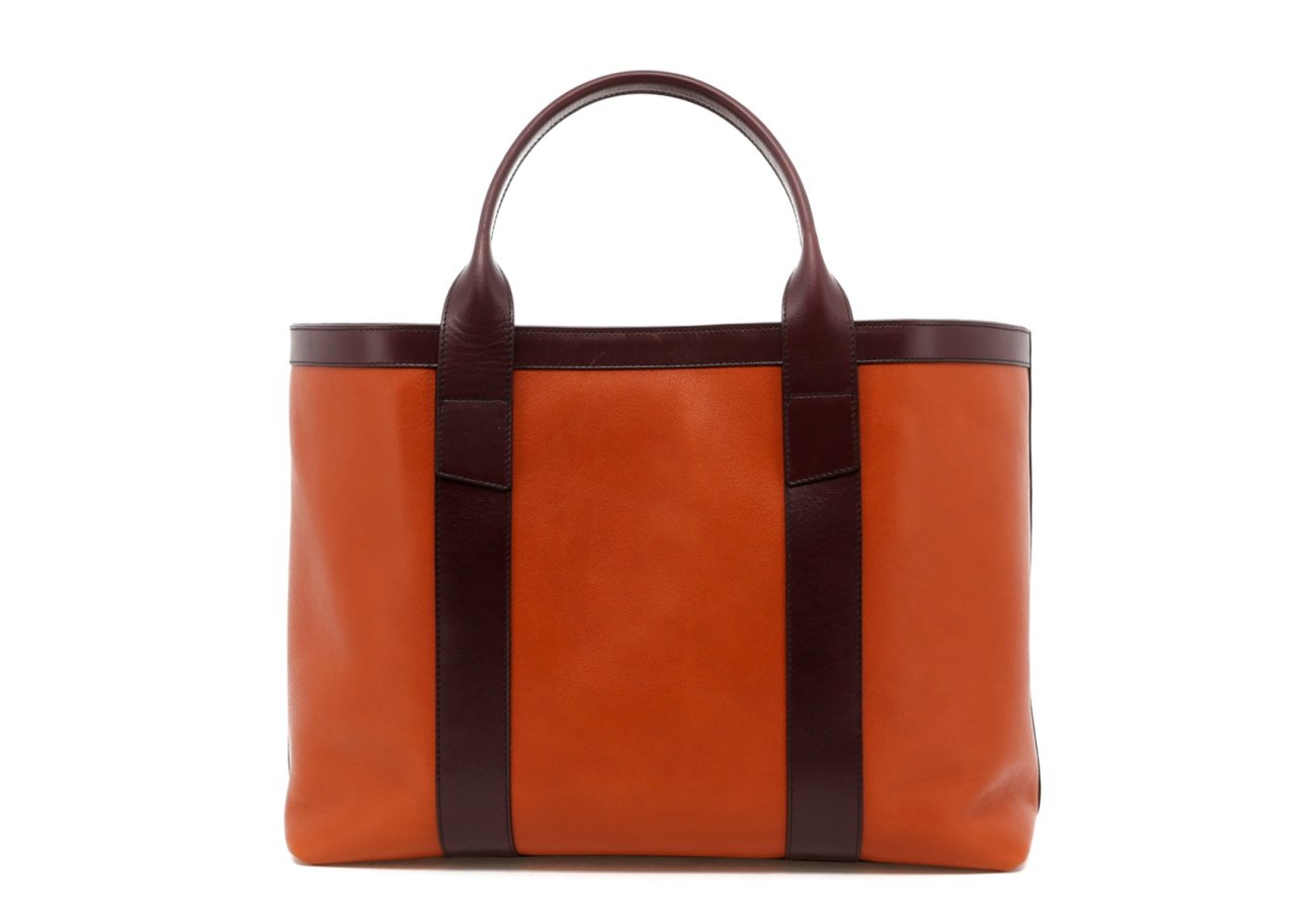 Large Working Tote - Cognac / Eggplant Trim - Tumbled Leather
