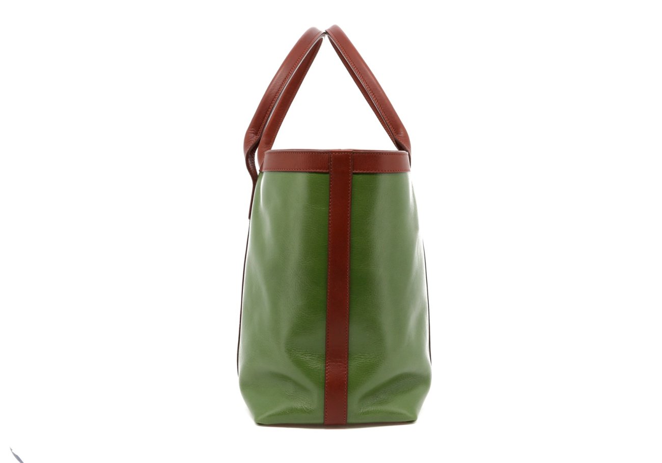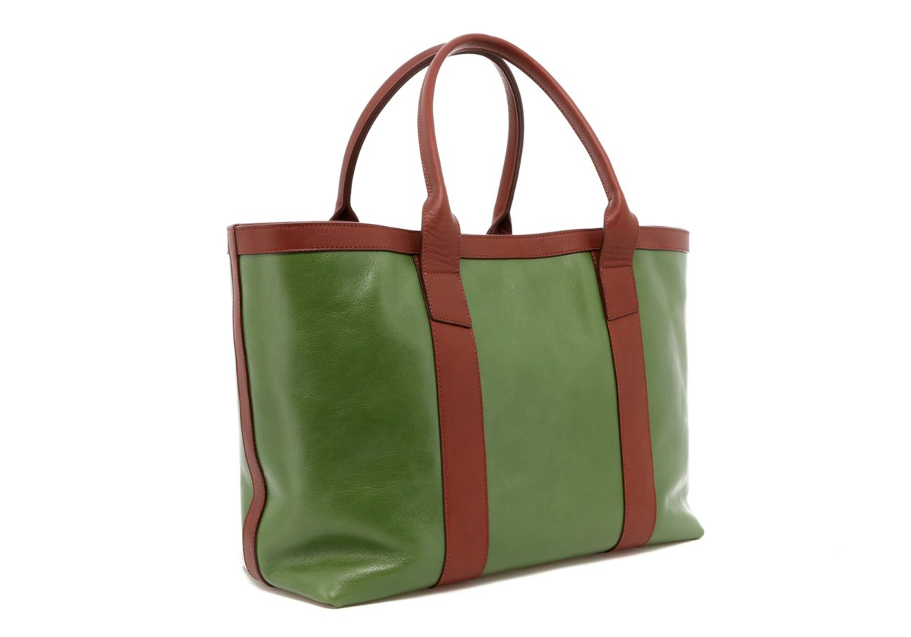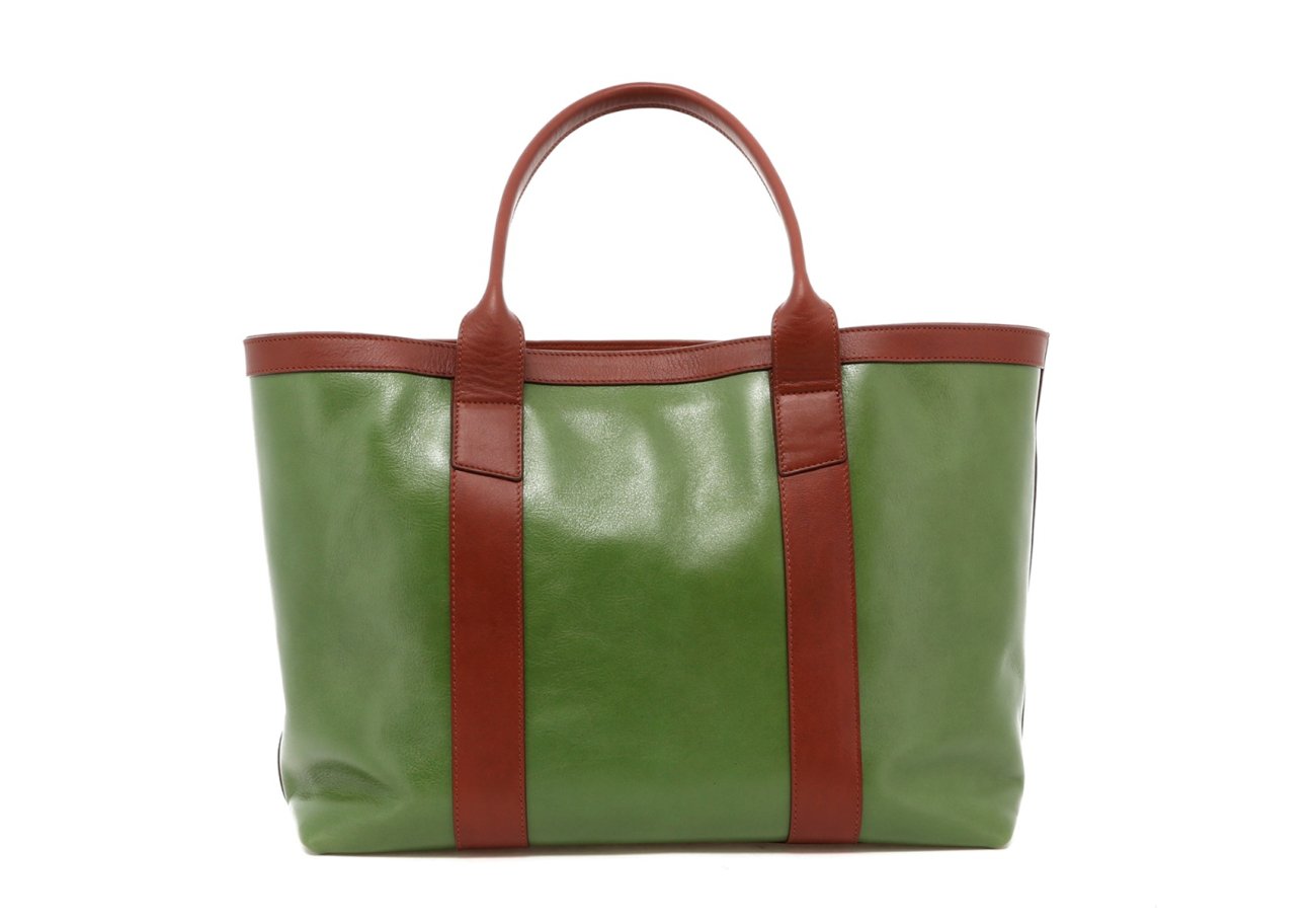 Large Working Tote - Ivy Green/Chestnut Trim - Tumbled