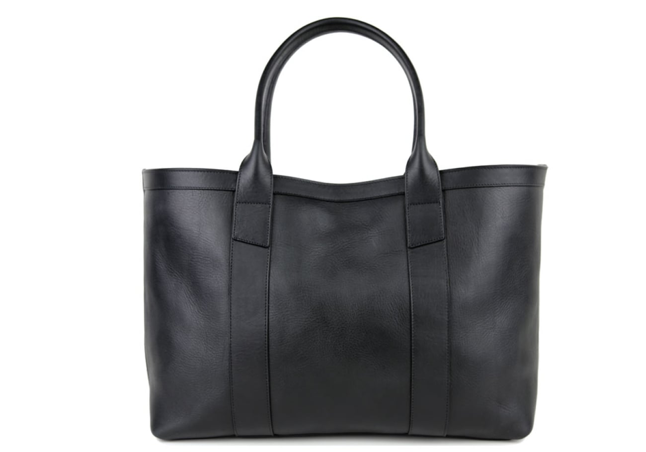 Large Working Tote - Tumbled - Black - Lined - Shoulder Strap - Zipper Closure
