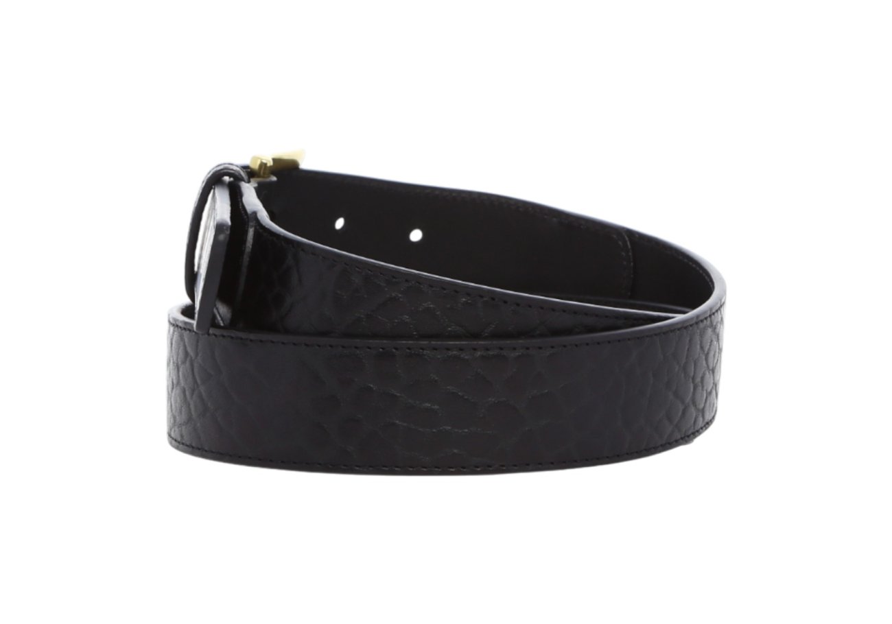 Our Shrunken Grain Leather Tab Belt combines casual versatility with a refined, elevated feel. The shrunken grain leather has a naturally distinctive texture that feels rich and slightly exotic without ever being overstated. Paired with sturdy harness belting leather on the backside and tabs, it offers both character and long lasting structure. Crafted in our Massachusetts workshop and made to develop a warm patina over time, this 1.25 inch belt is available in Chestnut, Chocolate, and Black with brass hardware, as well as Black with polished silver. It is a comfortable, everyday belt that brings a subtle touch of uniqueness to both denim and business casual attire.