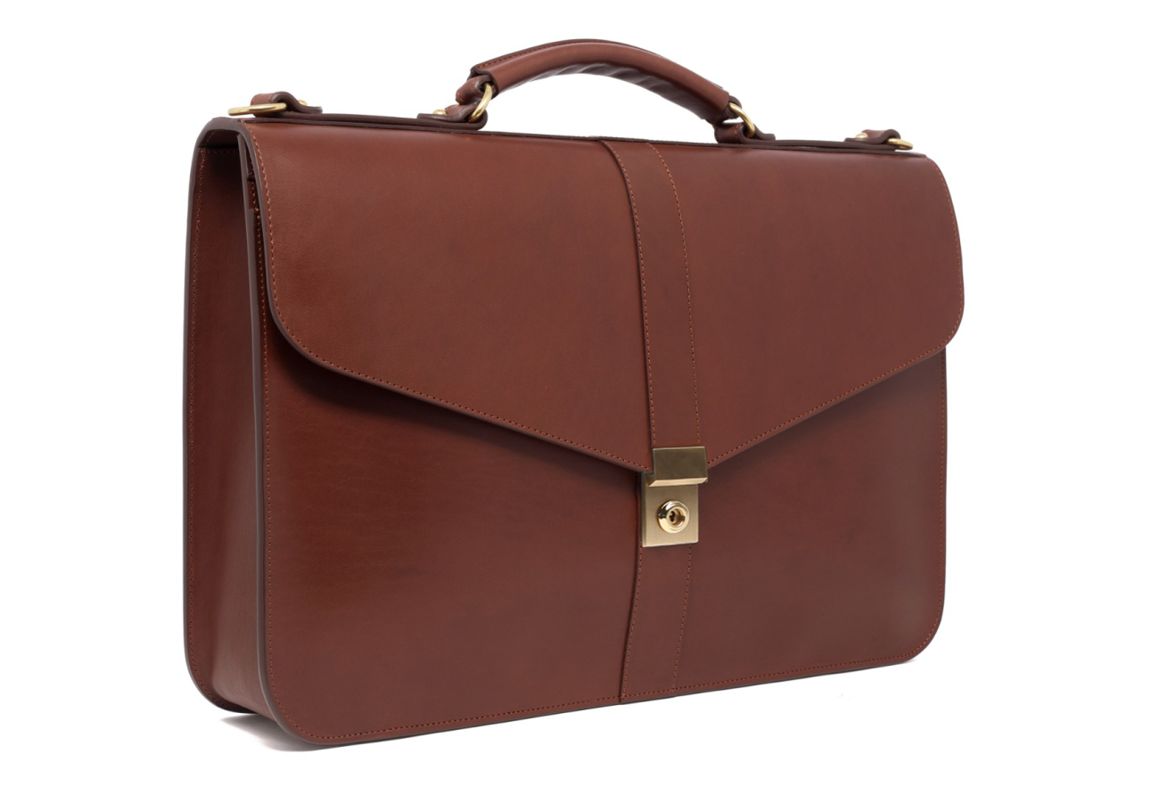 Lock Briefcase - Belting - Chestnut - Double Gusset