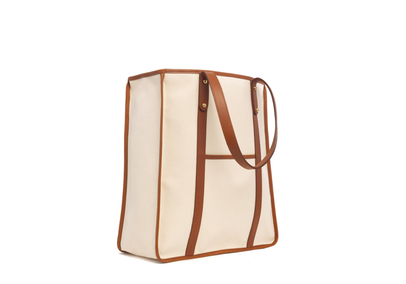 These Market Totes are in brand-new condition. The only issue is that the top binding, where the leather wrap starts and ends at the gusset side, doesn’t align perfectly due to a machine error during finishing. Rather than taking them apart for adjustment, we’re offering them at a discounted rate. With simple and sturdy details, our Market Tote is a great casual alternative that will make running errands that much easier. With dual pockets for keeping things organized on the outside while allowing for maximum reusability on the inside, you will want to reach for this practical companion again and again. These Market Totes are in brand-new condition. The only issue is that the top binding, where the leather wrap finishes and is closed off, doesn’t align perfectly due to a machine error during finishing. Rather than taking them apart for adjustment, we’re offering them at a discounted rate.