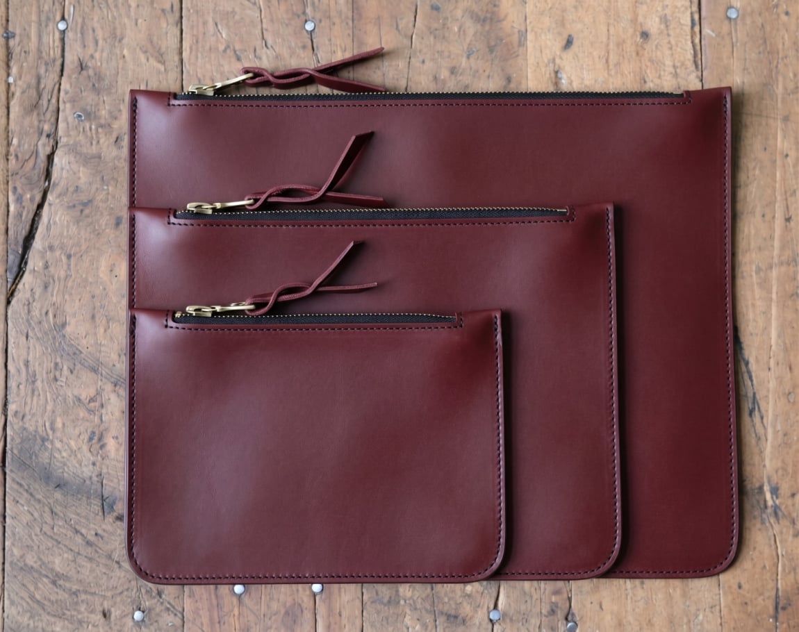 ","currencyFormat":"$%s","optionPrices":{"3147":{"baseOldPrice":{"amount":130},"oldPrice":{"amount":130},"basePrice":{"amount":130},"finalPrice":{"amount":130},"tierPrices":[],"msrpPrice":{"amount":0}},"3145":{"baseOldPrice":{"amount":130},"oldPrice":{"amount":130},"basePrice":{"amount":130},"finalPrice":{"amount":130},"tierPrices":[],"msrpPrice":{"amount":0}},"3146":{"baseOldPrice":{"amount":130},"oldPrice":{"amount":130},"basePrice":{"amount":130},"finalPrice":{"amount":130},"tierPrices":[],"msrpPrice":{"amount":0}},"3144":{"baseOldPrice":{"amount":130},"oldPrice":{"amount":130},"basePrice":{"amount":130},"finalPrice":{"amount":130},"tierPrices":[],"msrpPrice":{"amount":0}},"3148":{"baseOldPrice":{"amount":130},"oldPrice":{"amount":130},"basePrice":{"amount":130},"finalPrice":{"amount":130},"tierPrices":[],"msrpPrice":{"amount":0}},"3150":{"baseOldPrice":{"amount":130},"oldPrice":{"amount":130},"basePrice":{"amount":130},"finalPrice":{"amount":130},"tierPrices":[],"msrpPrice":{"amount":0}},"3149":{"baseOldPrice":{"amount":130},"oldPrice":{"amount":130},"basePrice":{"amount":130},"finalPrice":{"amount":130},"tierPrices":[],"msrpPrice":{"amount":0}},"6227":{"baseOldPrice":{"amount":130},"oldPrice":{"amount":130},"basePrice":{"amount":130},"finalPrice":{"amount":130},"tierPrices":[],"msrpPrice":{"amount":0}},"6289":{"baseOldPrice":{"amount":130},"oldPrice":{"amount":130},"basePrice":{"amount":130},"finalPrice":{"amount":130},"tierPrices":[],"msrpPrice":{"amount":0}},"8570":{"baseOldPrice":{"amount":130},"oldPrice":{"amount":130},"basePrice":{"amount":130},"finalPrice":{"amount":130},"tierPrices":[],"msrpPrice":{"amount":0}}},"priceFormat":{"pattern":"$%s","precision":2,"requiredPrecision":2,"decimalSymbol":".","groupSymbol":",","groupLength":3,"integerRequired":false},"prices":{"baseOldPrice":{"amount":130},"oldPrice":{"amount":130},"basePrice":{"amount":130},"finalPrice":{"amount":130}},"productId":"3143","chooseText":"Choose an Option...","images":{"3147":[{"thumb":"https:\/\/frankcleggleatherworks.com\/media\/catalog\/product\/cache\/cad2f1af5b09d5acf53ea46653d894f0\/m\/e\/medium_leather_zipper_pouch_frank_clegg_cognac.png.jpg","img":"https:\/\/frankcleggleatherworks.com\/media\/catalog\/product\/cache\/c6a572893e2378651af4ad65718ab4b2\/m\/e\/medium_leather_zipper_pouch_frank_clegg_cognac.png.jpg","full":"https:\/\/frankcleggleatherworks.com\/media\/catalog\/product\/cache\/24d3251e819665fd0245377182dccb19\/m\/e\/medium_leather_zipper_pouch_frank_clegg_cognac.png.jpg","caption":null,"position":"3","isMain":true,"type":"image","videoUrl":null,"product_id":"3147","product_url":"https:\/\/frankcleggleatherworks.com\/medium-leather-zipper-pouch-cognac.html","targetPath":"\/medium-leather-zipper-pouch-cognac.html","productUrl":"https:\/\/frankcleggleatherworks.com\/medium-leather-zipper-pouch-cognac.html","preorder":"1","instocktext":"In stock and ready to ship","preordertext":"Out of Stock: However, you can still place an order, and we will craft the product within 5-7 weeks.","stock":1,"status":"1","color_key":"cognac","leather_key":"smooth_tumbled_leather-","leather_swatch_key":"smooth_tumbled_leather-cognac"},{"thumb":"https:\/\/frankcleggleatherworks.com\/media\/catalog\/product\/cache\/cad2f1af5b09d5acf53ea46653d894f0\/c\/o\/cognac_leather_pouches_frank_clegg.jpeg","img":"https:\/\/frankcleggleatherworks.com\/media\/catalog\/product\/cache\/c6a572893e2378651af4ad65718ab4b2\/c\/o\/cognac_leather_pouches_frank_clegg.jpeg","full":"https:\/\/frankcleggleatherworks.com\/media\/catalog\/product\/cache\/24d3251e819665fd0245377182dccb19\/c\/o\/cognac_leather_pouches_frank_clegg.jpeg","caption":null,"position":"4","isMain":false,"type":"image","videoUrl":null,"product_id":"3147","product_url":"https:\/\/frankcleggleatherworks.com\/medium-leather-zipper-pouch-cognac.html","targetPath":"\/medium-leather-zipper-pouch-cognac.html","productUrl":"https:\/\/frankcleggleatherworks.com\/medium-leather-zipper-pouch-cognac.html","preorder":"1","instocktext":"In stock and ready to ship","preordertext":"Out of Stock: However, you can still place an order, and we will craft the product within 5-7 weeks.","stock":1,"status":"1","color_key":"cognac","leather_key":"smooth_tumbled_leather-","leather_swatch_key":"smooth_tumbled_leather-cognac"}],"3145":[{"thumb":"https:\/\/frankcleggleatherworks.com\/media\/catalog\/product\/cache\/cad2f1af5b09d5acf53ea46653d894f0\/m\/e\/medium_leather_zipper_pouch_frank_clegg_chestnut.png.jpg","img":"https:\/\/frankcleggleatherworks.com\/media\/catalog\/product\/cache\/c6a572893e2378651af4ad65718ab4b2\/m\/e\/medium_leather_zipper_pouch_frank_clegg_chestnut.png.jpg","full":"https:\/\/frankcleggleatherworks.com\/media\/catalog\/product\/cache\/24d3251e819665fd0245377182dccb19\/m\/e\/medium_leather_zipper_pouch_frank_clegg_chestnut.png.jpg","caption":null,"position":"3","isMain":true,"type":"image","videoUrl":null,"product_id":"3145","product_url":"https:\/\/frankcleggleatherworks.com\/medium-leather-zipper-pouch-chestnut.html","targetPath":"\/medium-leather-zipper-pouch-chestnut.html","productUrl":"https:\/\/frankcleggleatherworks.com\/medium-leather-zipper-pouch-chestnut.html","preorder":null,"instocktext":"In stock and ready to ship","preordertext":"Out of Stock: However, you can still place an order, and we will craft the product within 5-7 weeks.","stock":1,"status":"1","color_key":"chestnut","leather_key":"smooth_tumbled_leather-","leather_swatch_key":"smooth_tumbled_leather-chestnut"},{"thumb":"https:\/\/frankcleggleatherworks.com\/media\/catalog\/product\/cache\/cad2f1af5b09d5acf53ea46653d894f0\/c\/h\/chestnut_leather_pouches_frank_clegg.jpeg","img":"https:\/\/frankcleggleatherworks.com\/media\/catalog\/product\/cache\/c6a572893e2378651af4ad65718ab4b2\/c\/h\/chestnut_leather_pouches_frank_clegg.jpeg","full":"https:\/\/frankcleggleatherworks.com\/media\/catalog\/product\/cache\/24d3251e819665fd0245377182dccb19\/c\/h\/chestnut_leather_pouches_frank_clegg.jpeg","caption":null