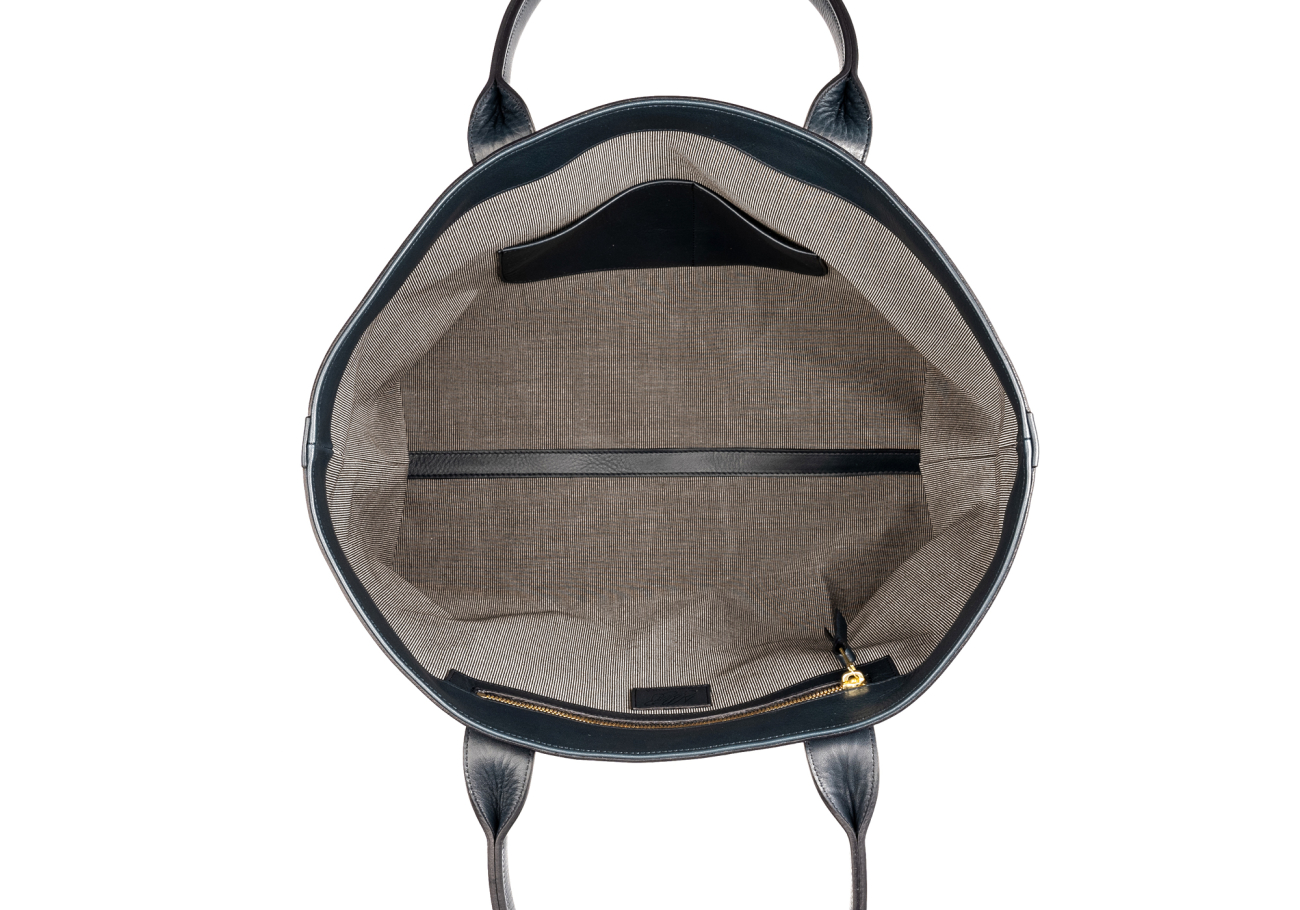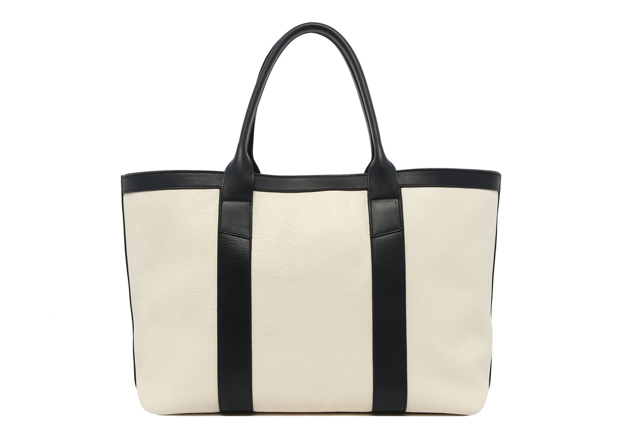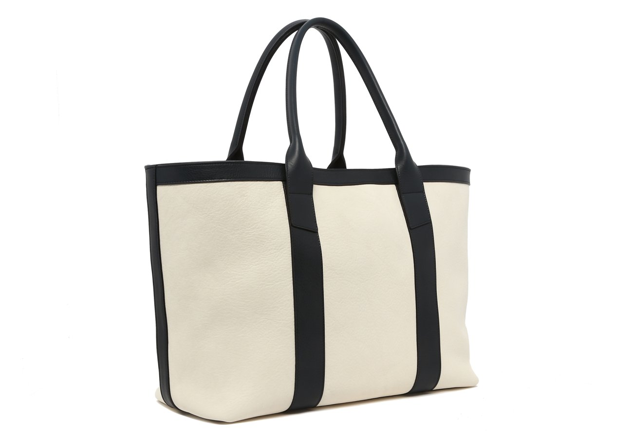Large Working Tote - Marshmallow/Navy - Tumbled Leather