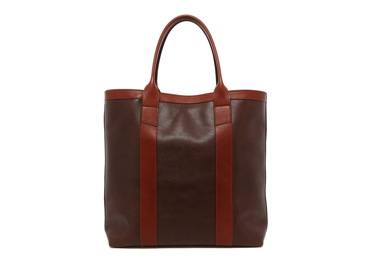 Tall Tote - Mulch/Chestnut Trim - Tumbled Leather