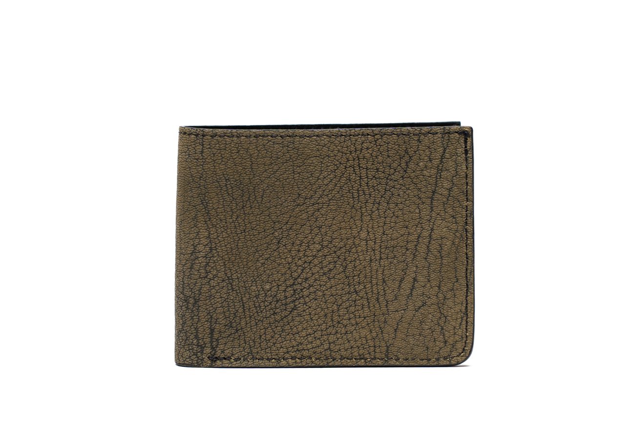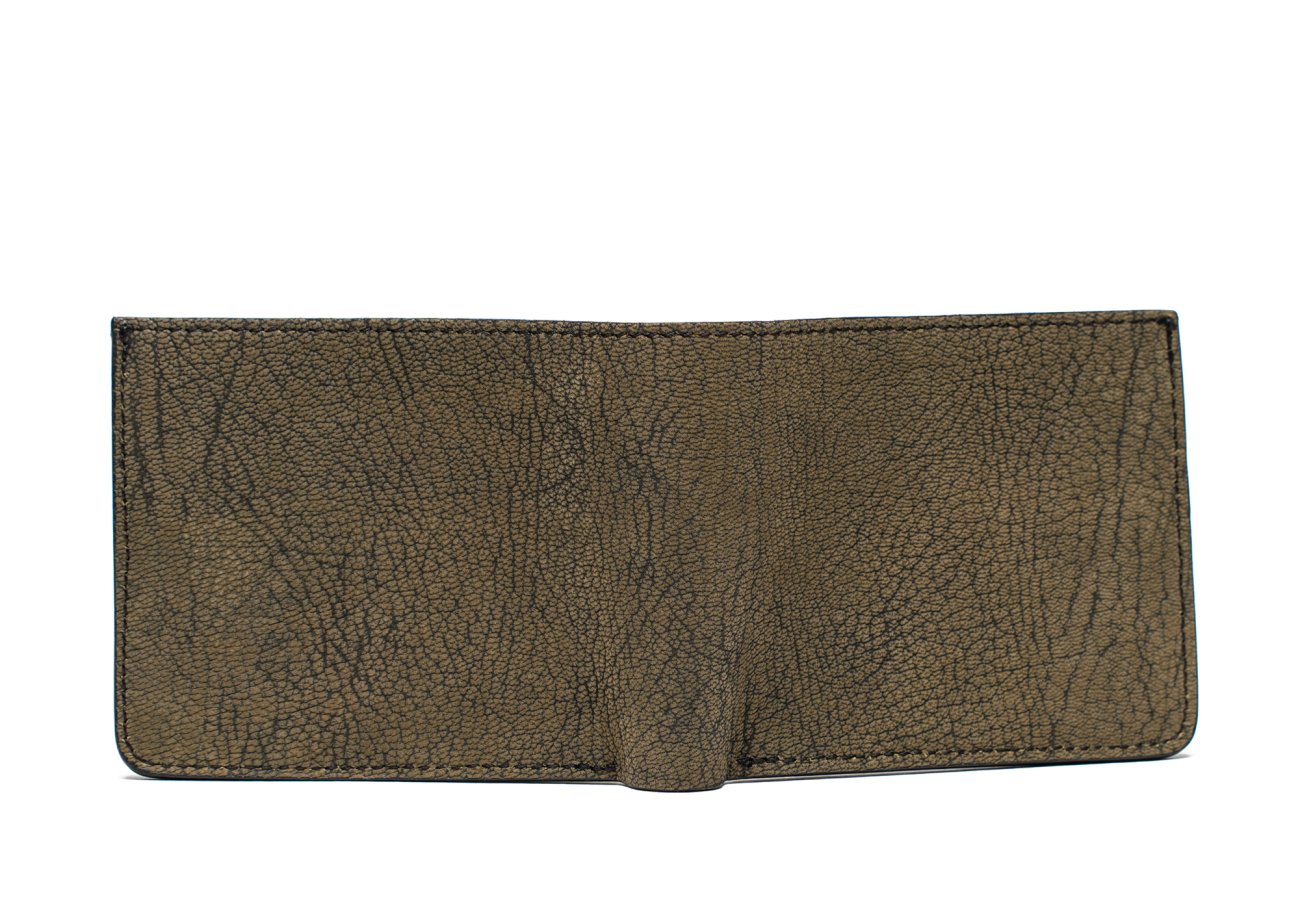 Bifold Wallet - Olive/Taupe - Nubuck Goatskin - Black Interior