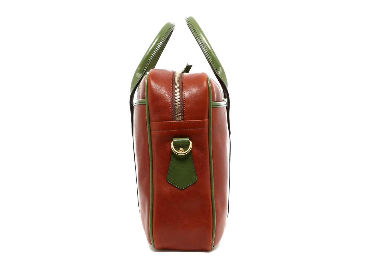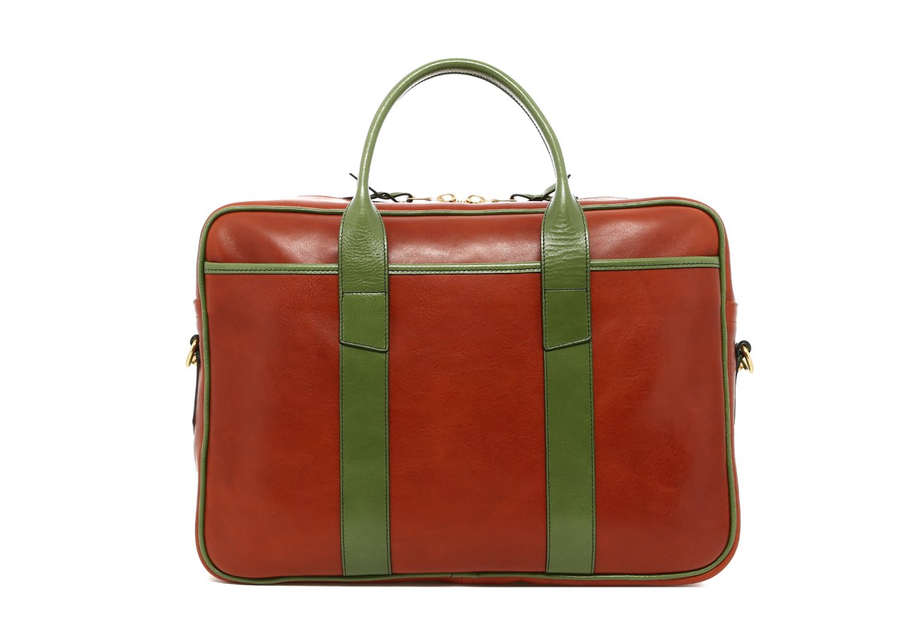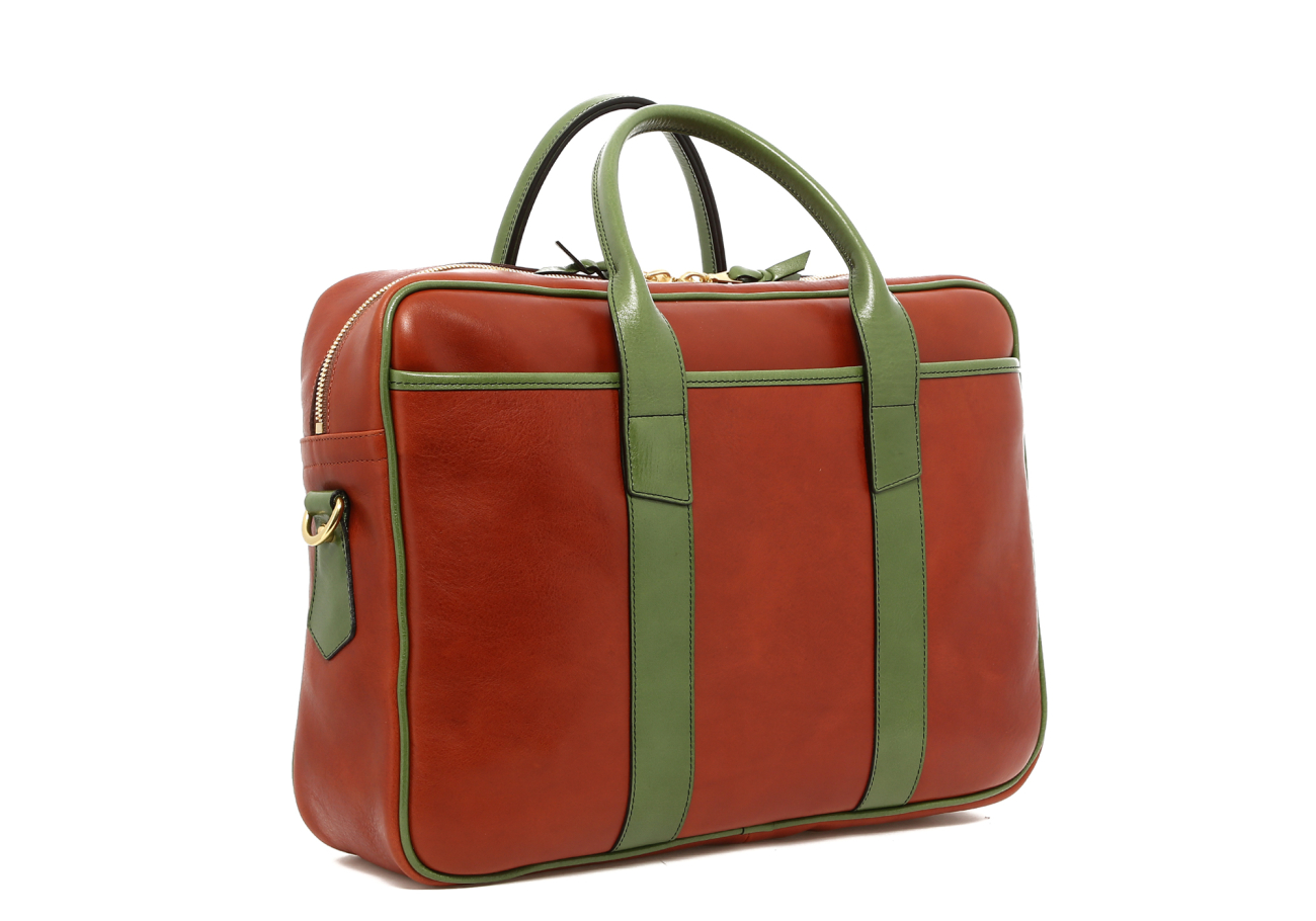 Commuter Briefcase - Potter's Clay/Meadow Green Trim - Tumbled Leather