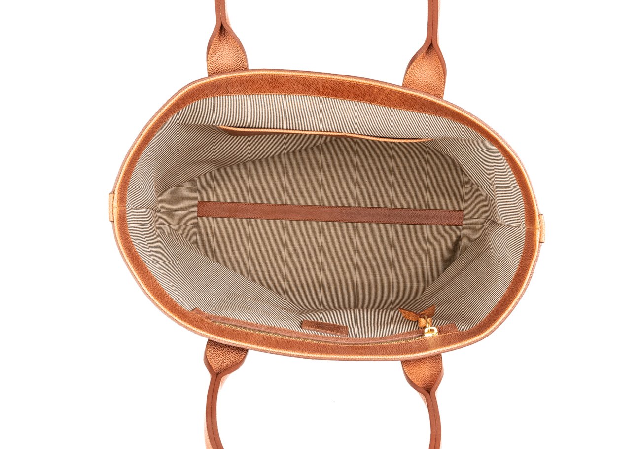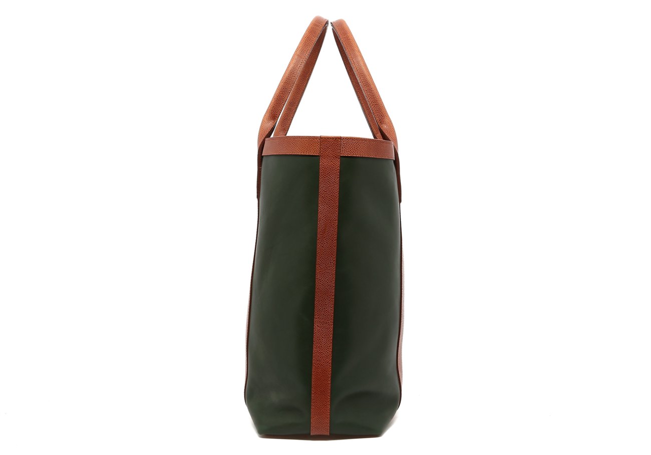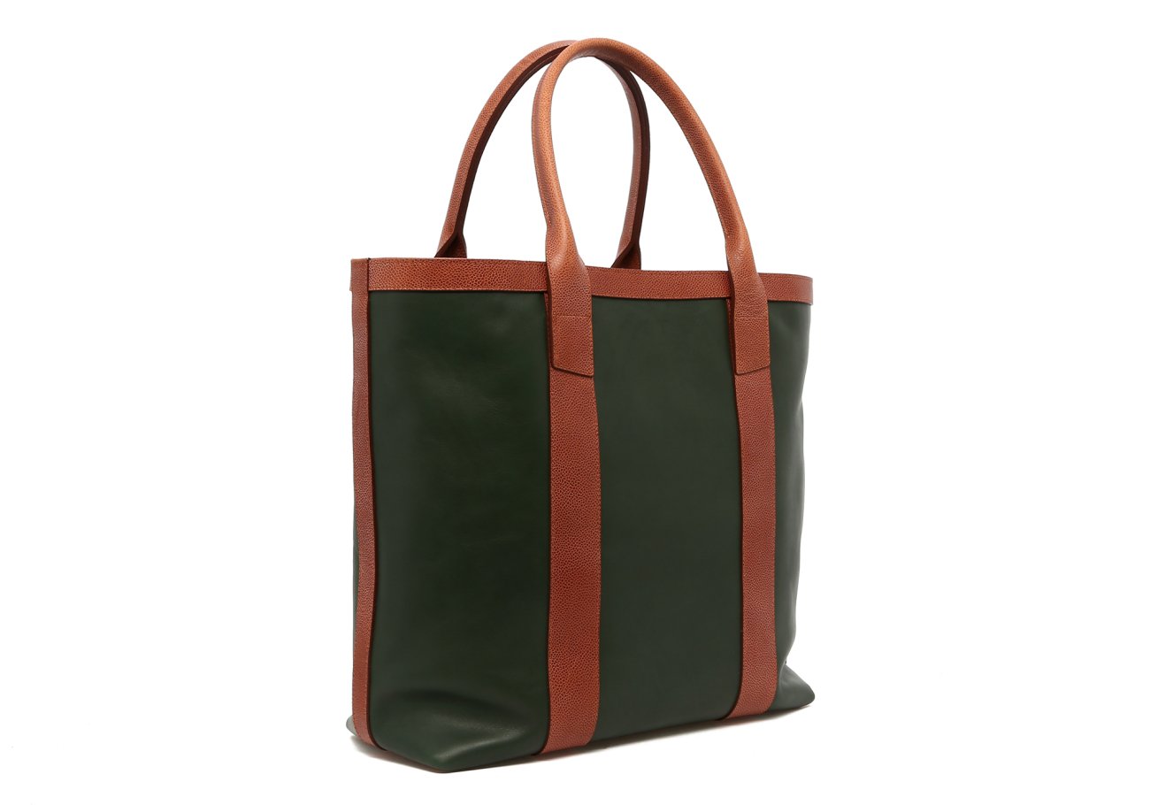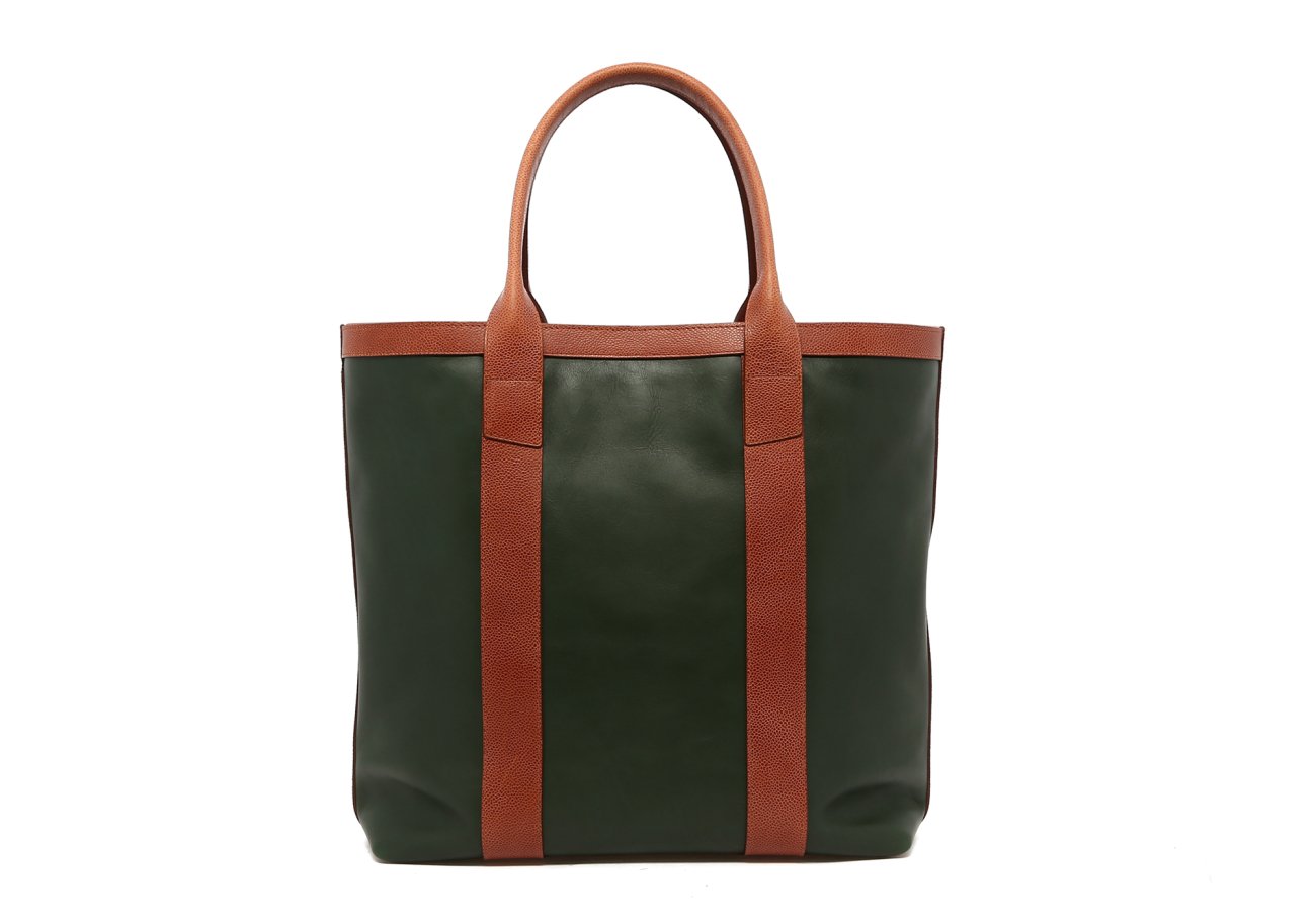 Tall Tote - Green/Cognac Scotch Grain Trim - Tumbled Leather