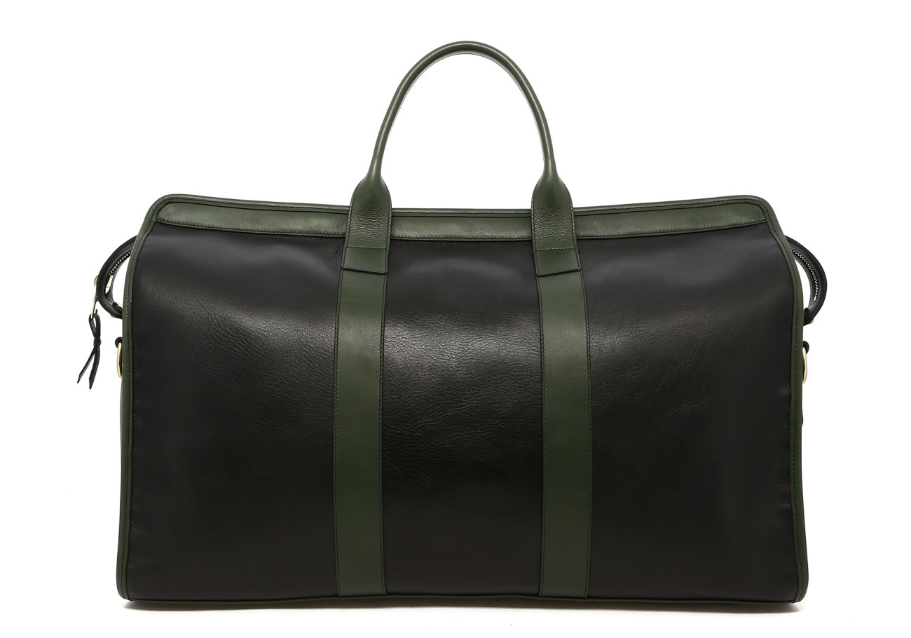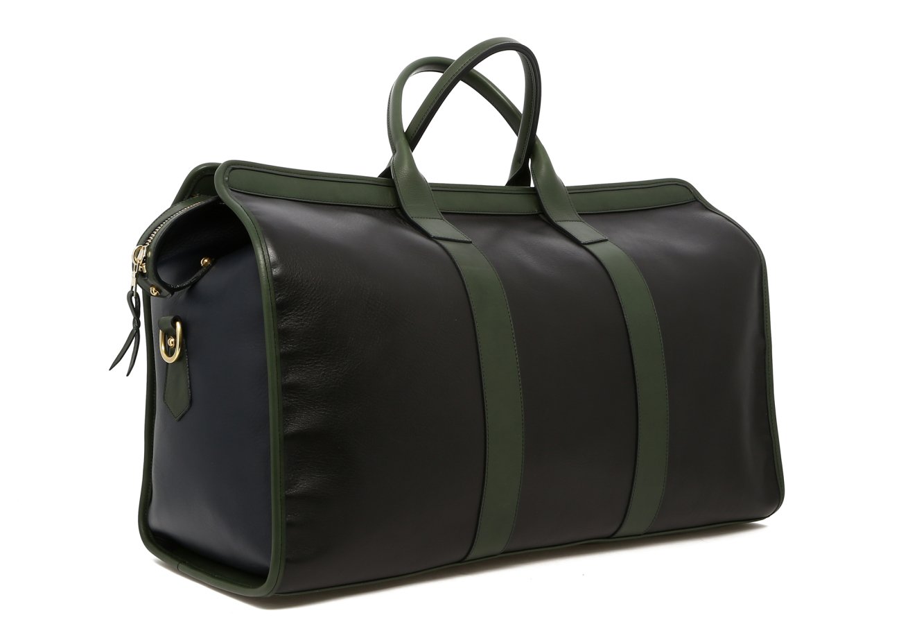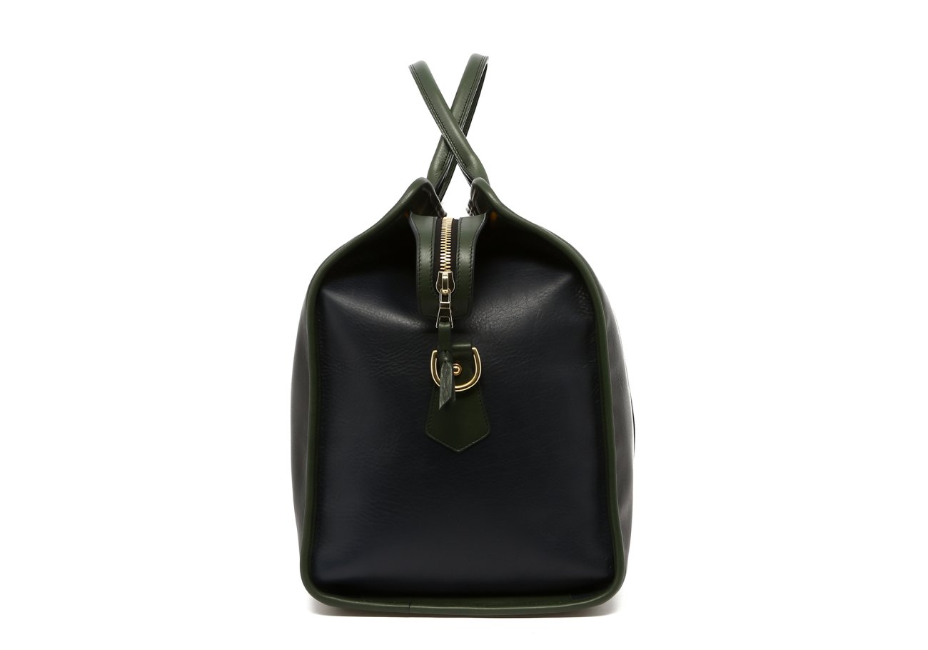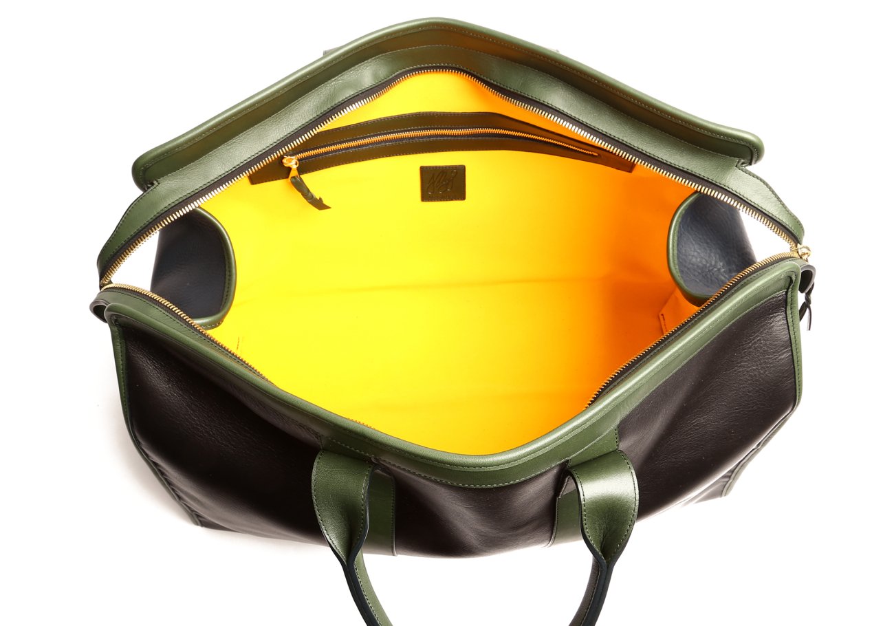 Compass Duffle - Black/Green/Navy Tumbled Leather - Sunflower Yellow Interior