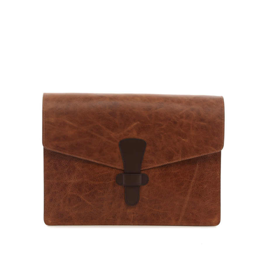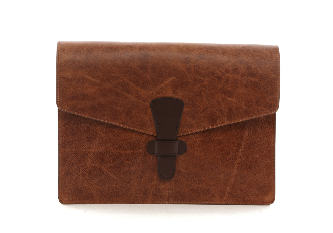 15" Document Case- Distressed Brown Leather / Chocolate Lining