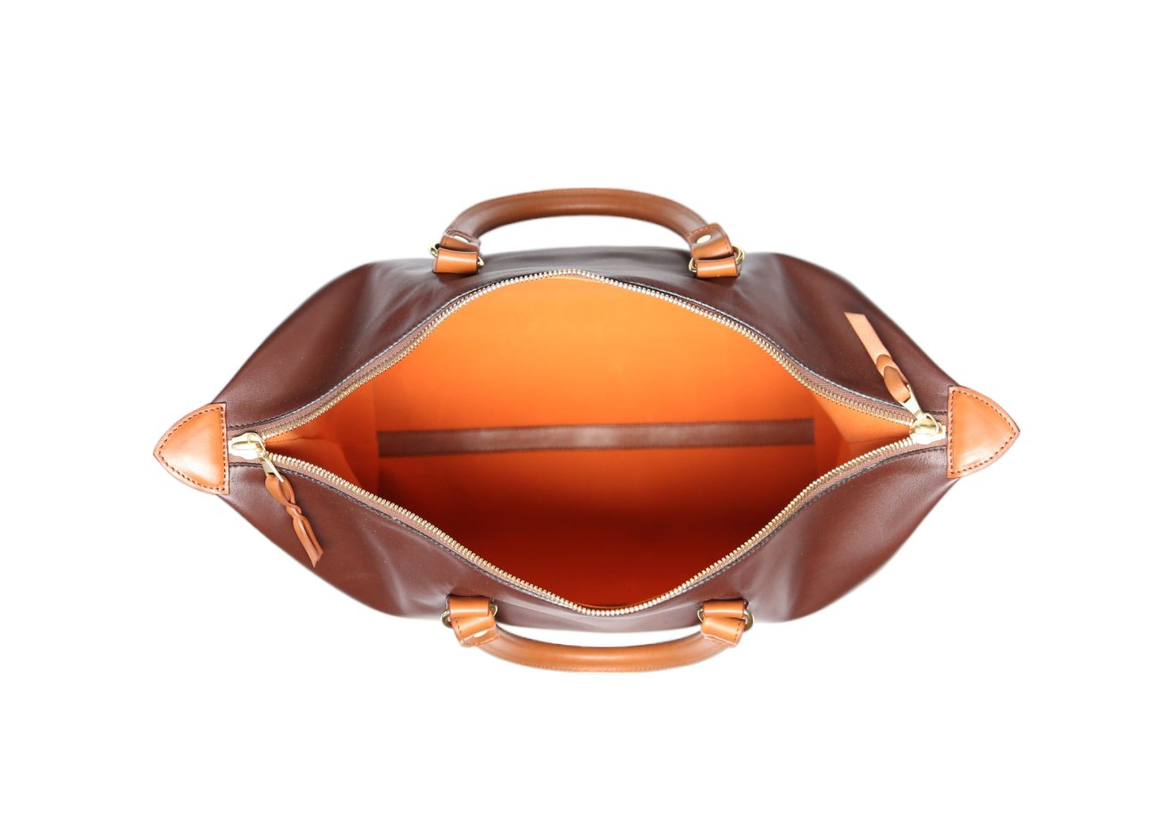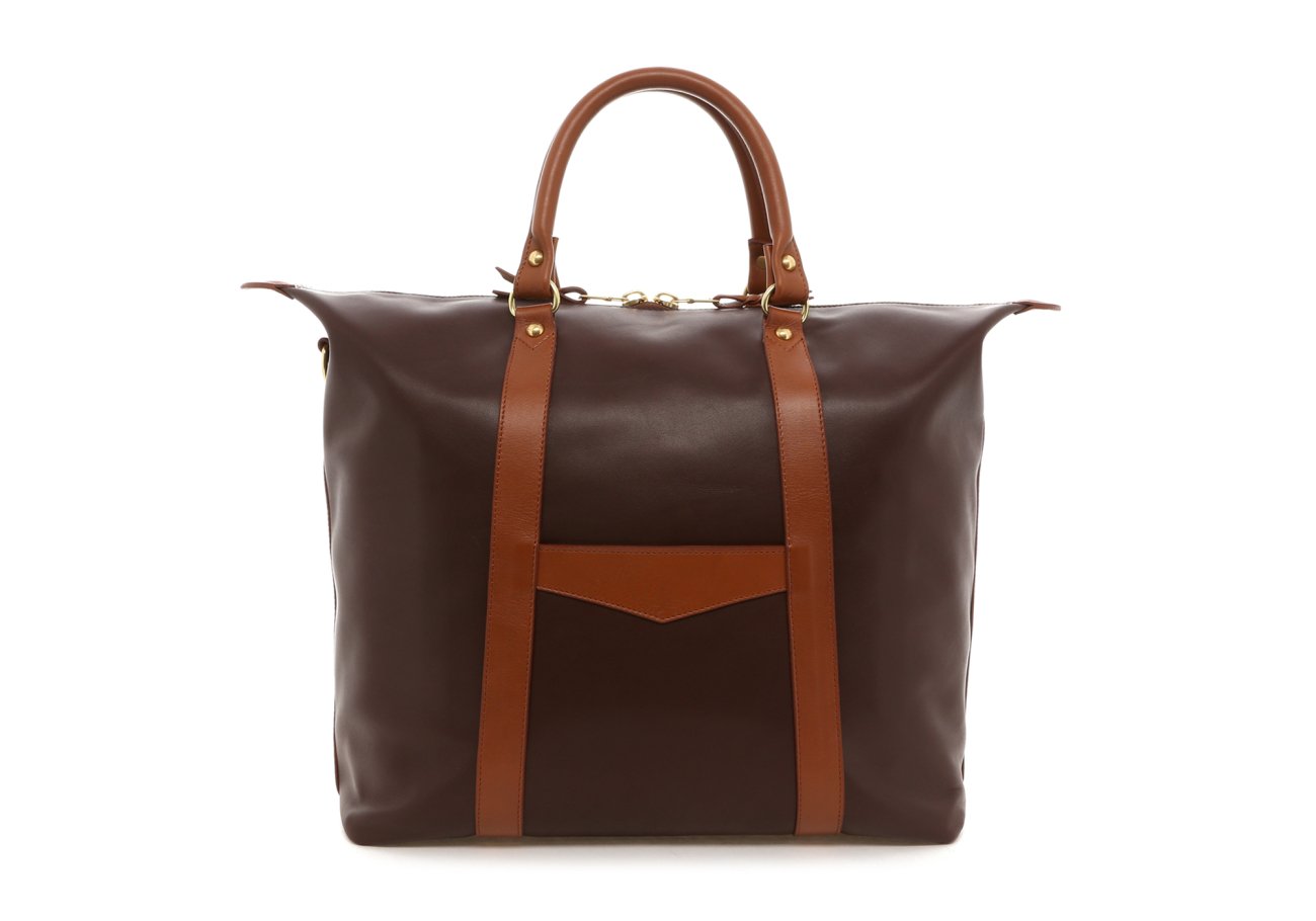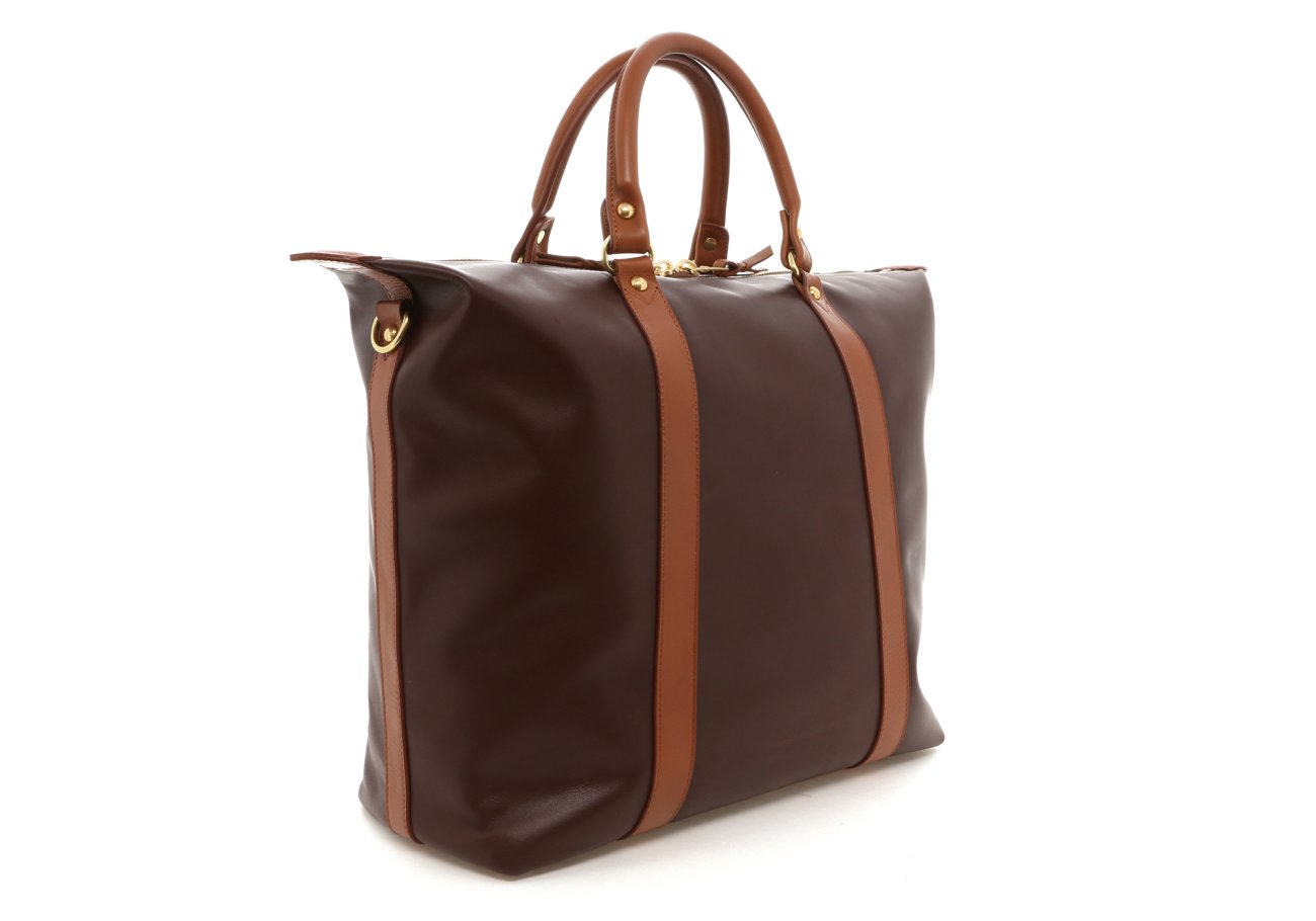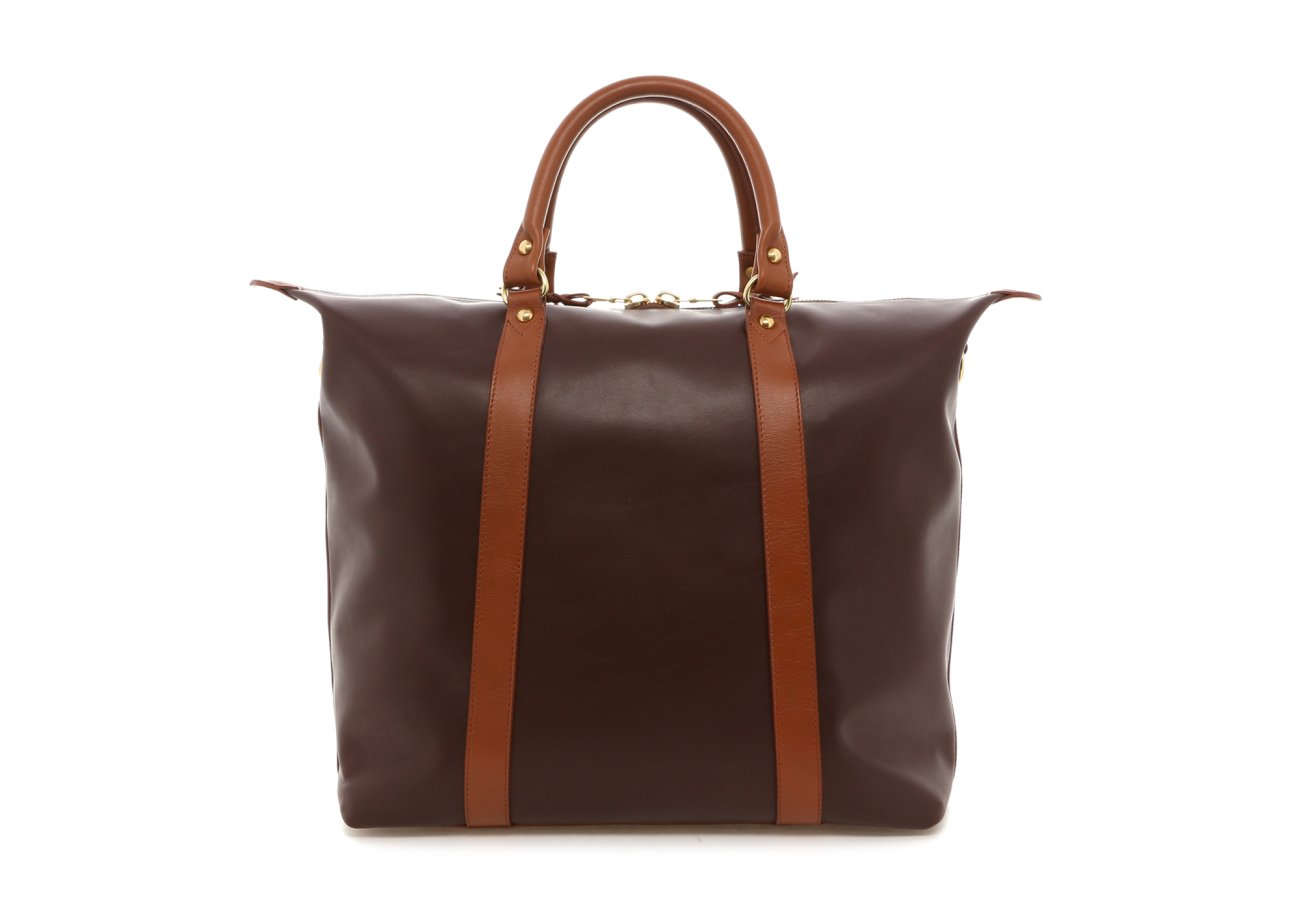 Hampton Tote - Chocolate Brown/Cognac - Soft Nappa - Burgundy Sunbrella