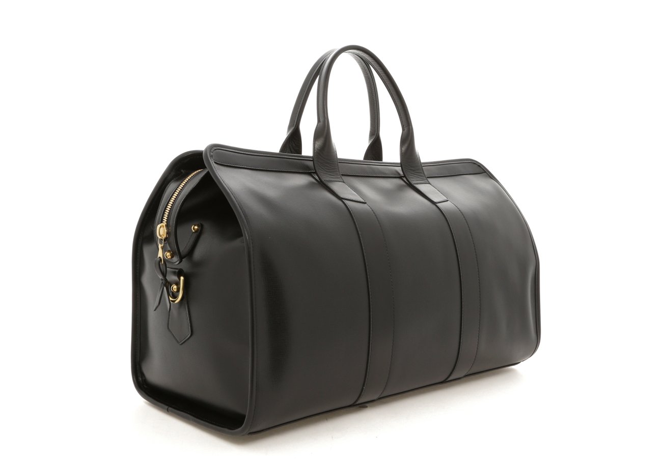 Signature Travel Duffle - Black/Black - Hatch Grain Leather - Charcoal Tweed