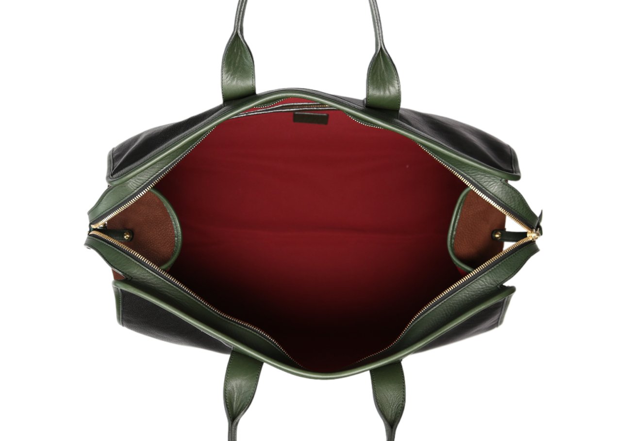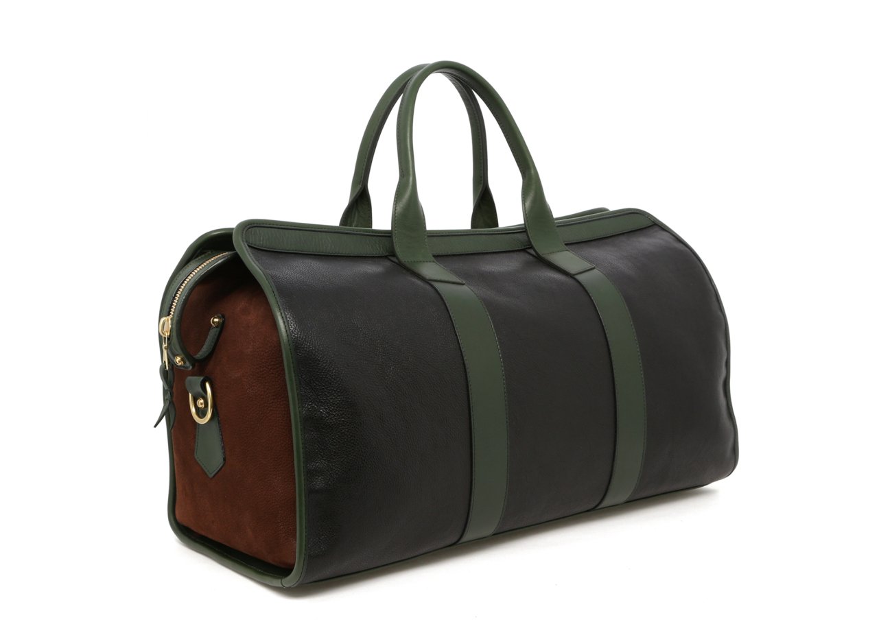 Signature Travel Duffle - Black/Green/Brown - Tumbled Leather / Nubuck - Burgundy Sunbrella