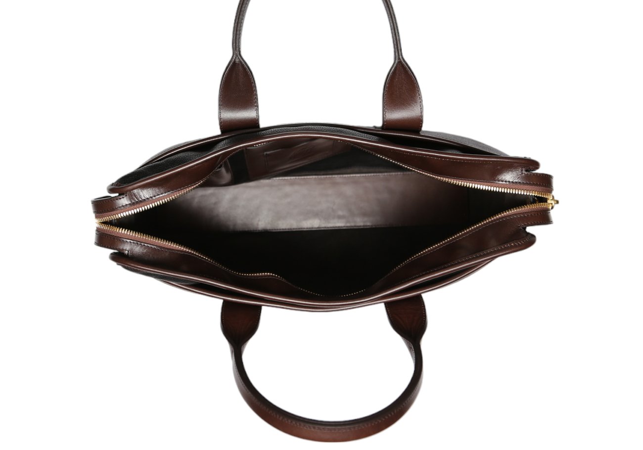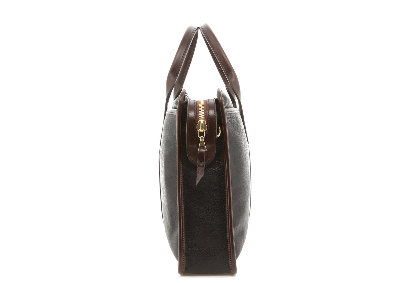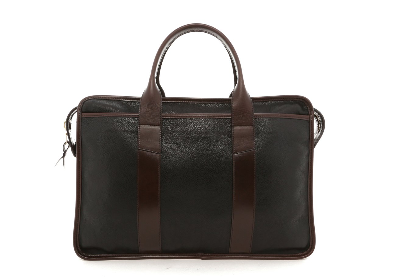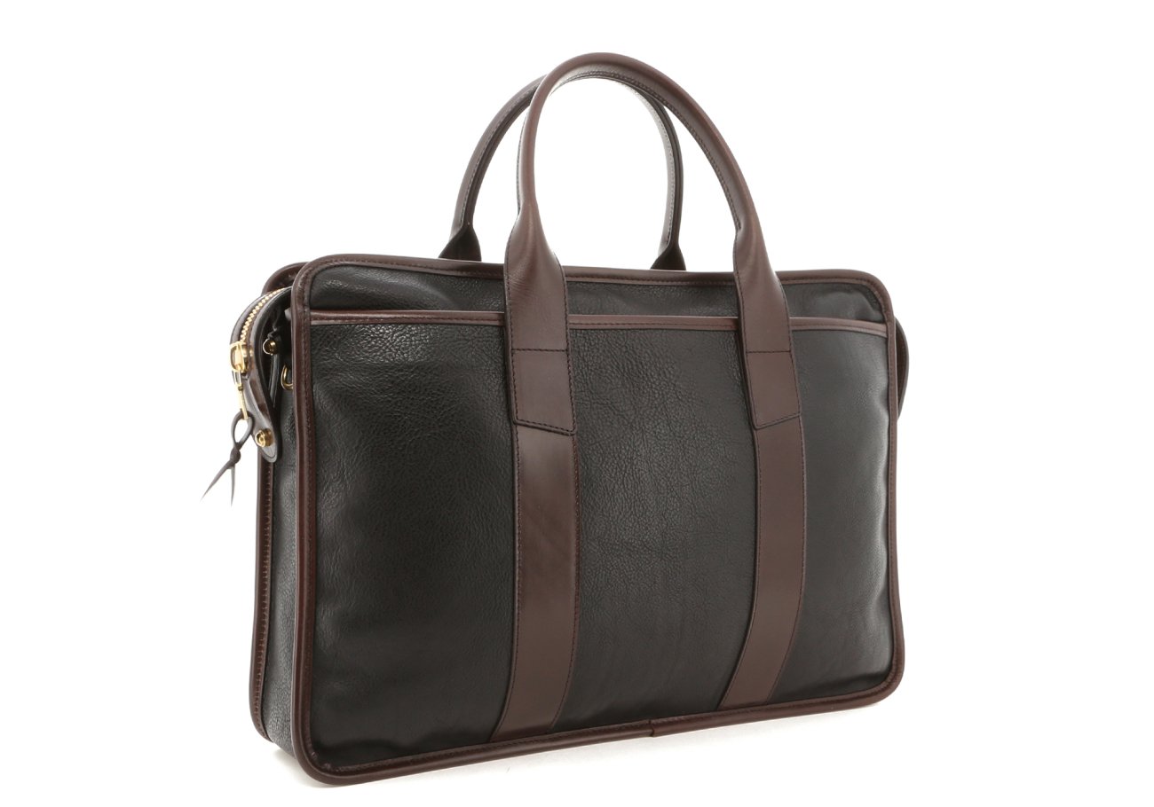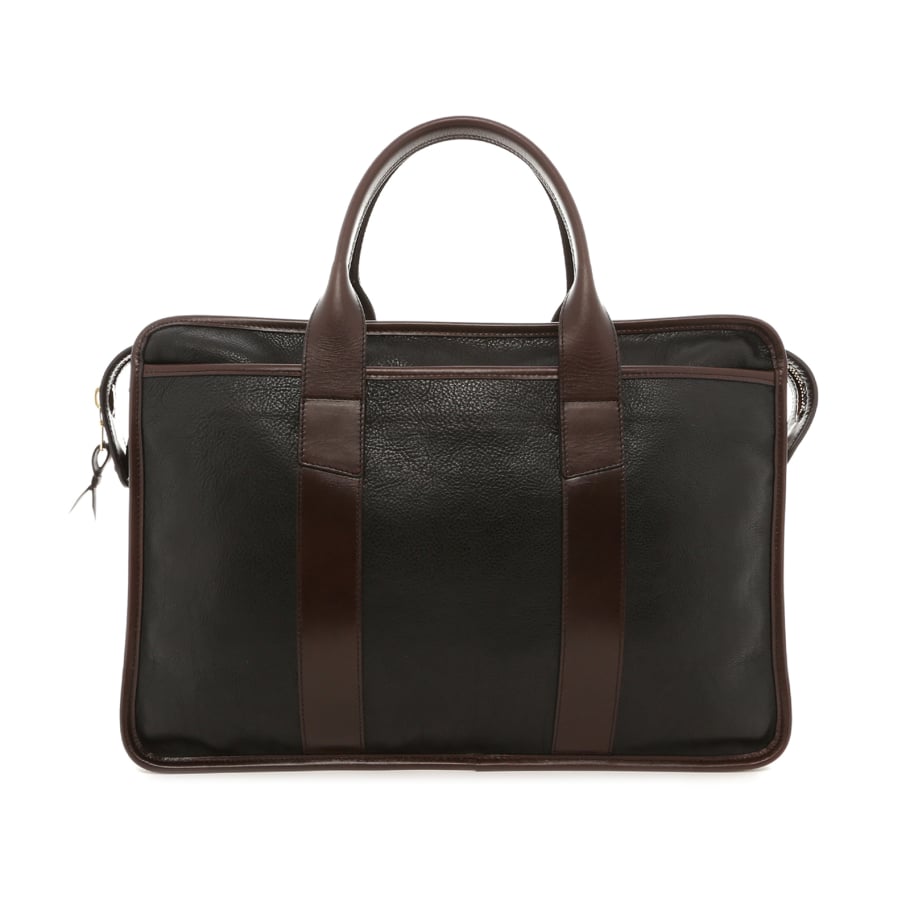 Bound Edge Zip-Top Briefcase - Black/Chocolate Torte - Tumbled Leather