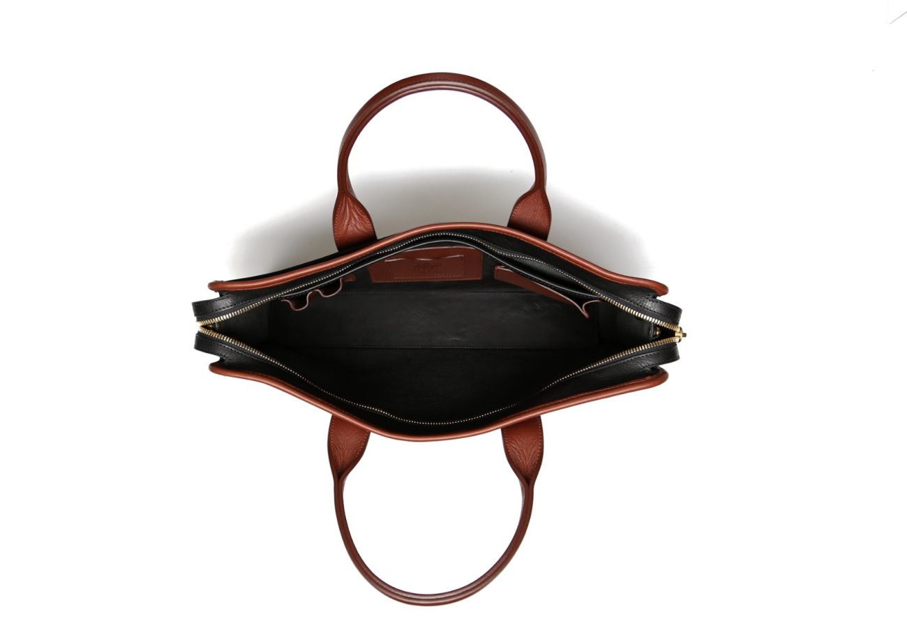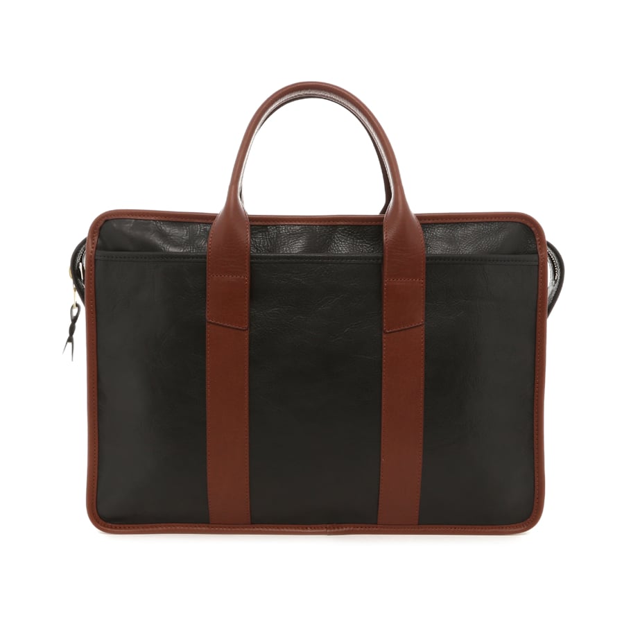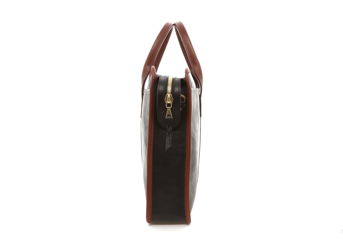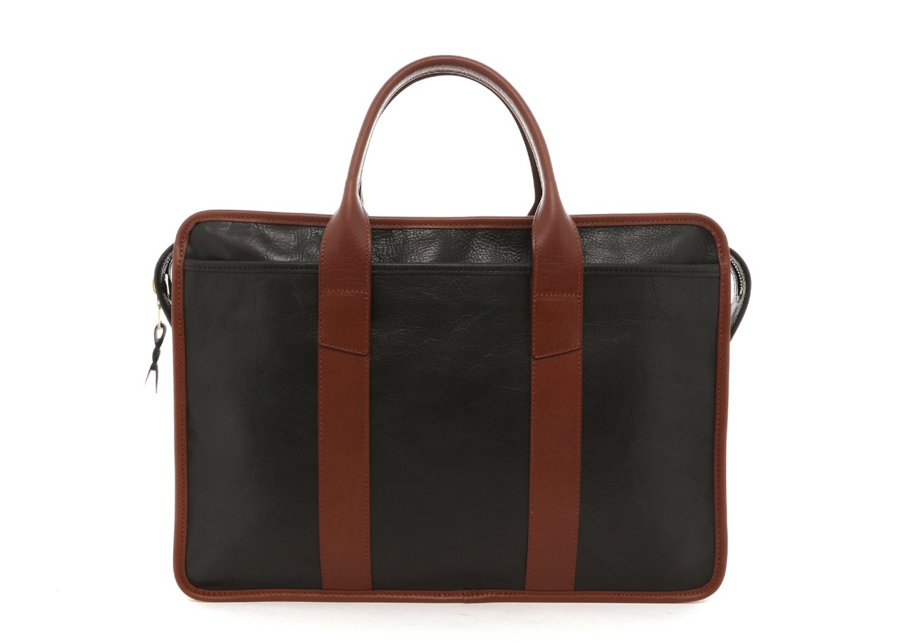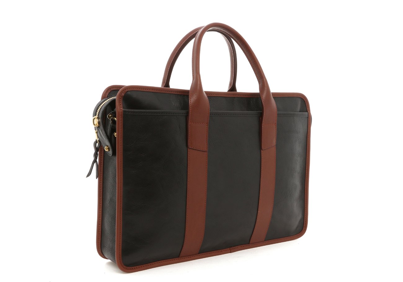 Bound Edge Zip-Top Briefcase - Black/Sequoia- Tumbled Leather