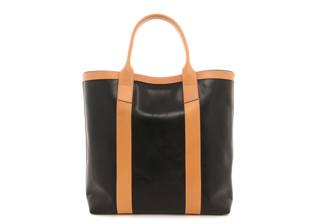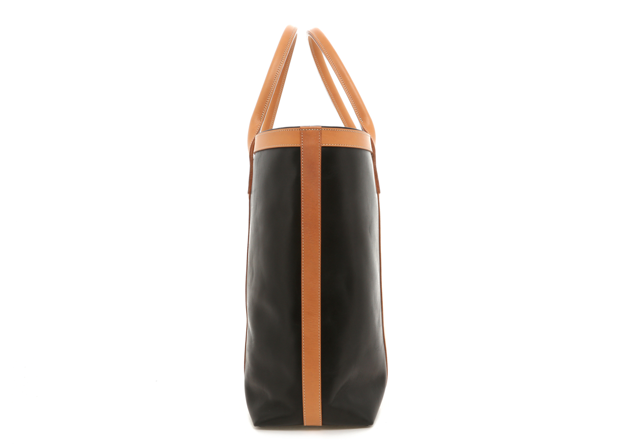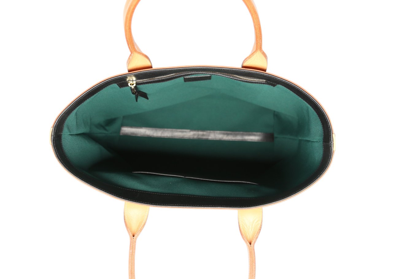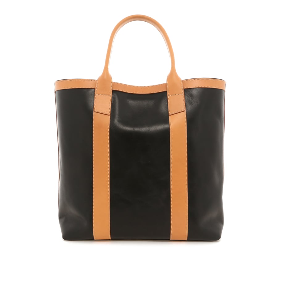 Tall Tote - Black/Natural - Smooth Leather - Forest Green Sunbrella