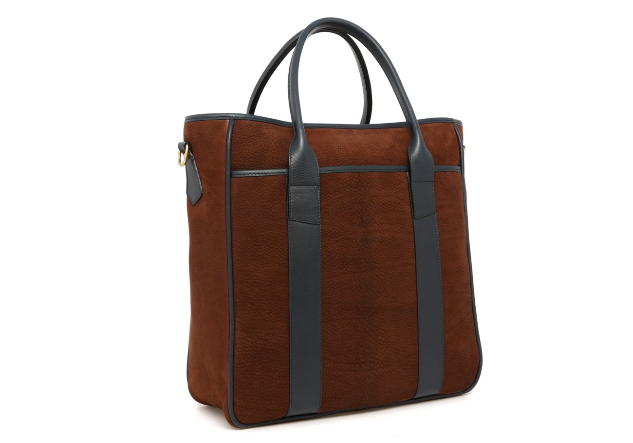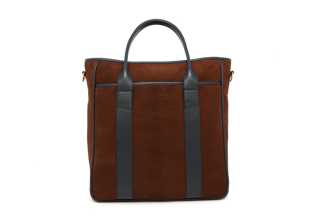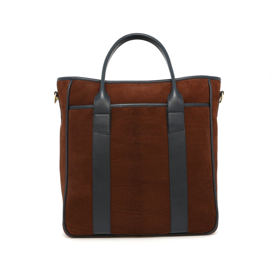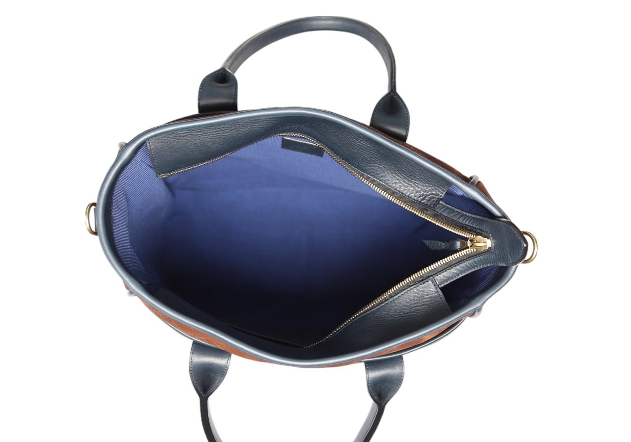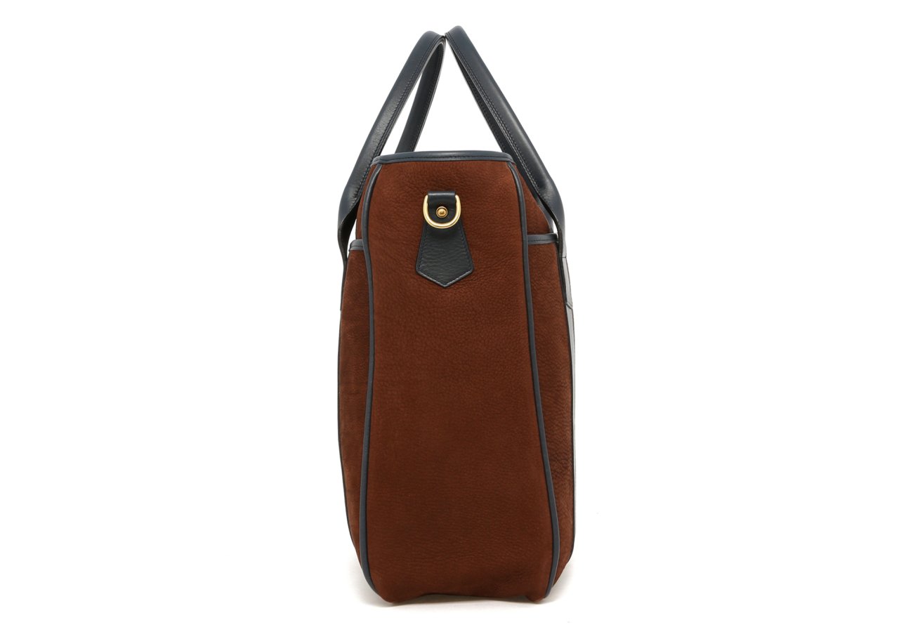 Commuter Tote - Brown Nubuck / Navy Tumbled - Royal Blue Sunbrella