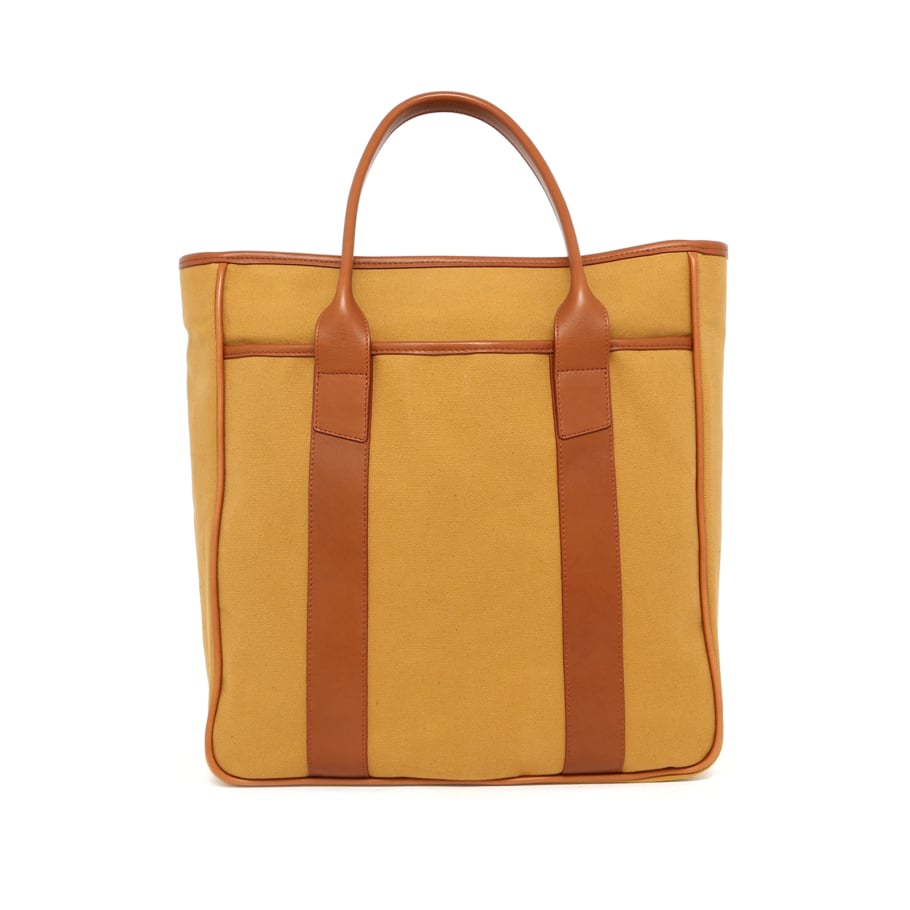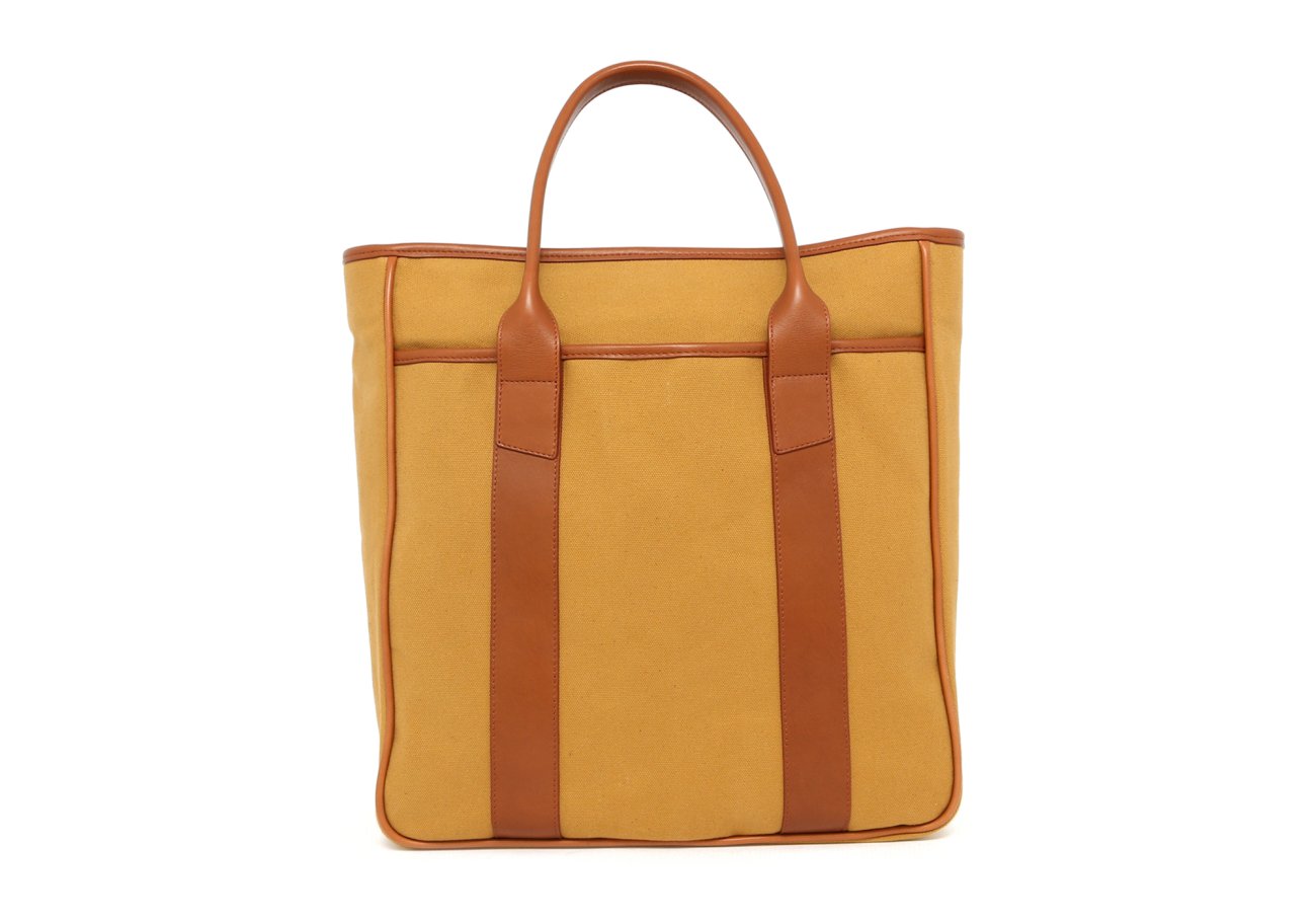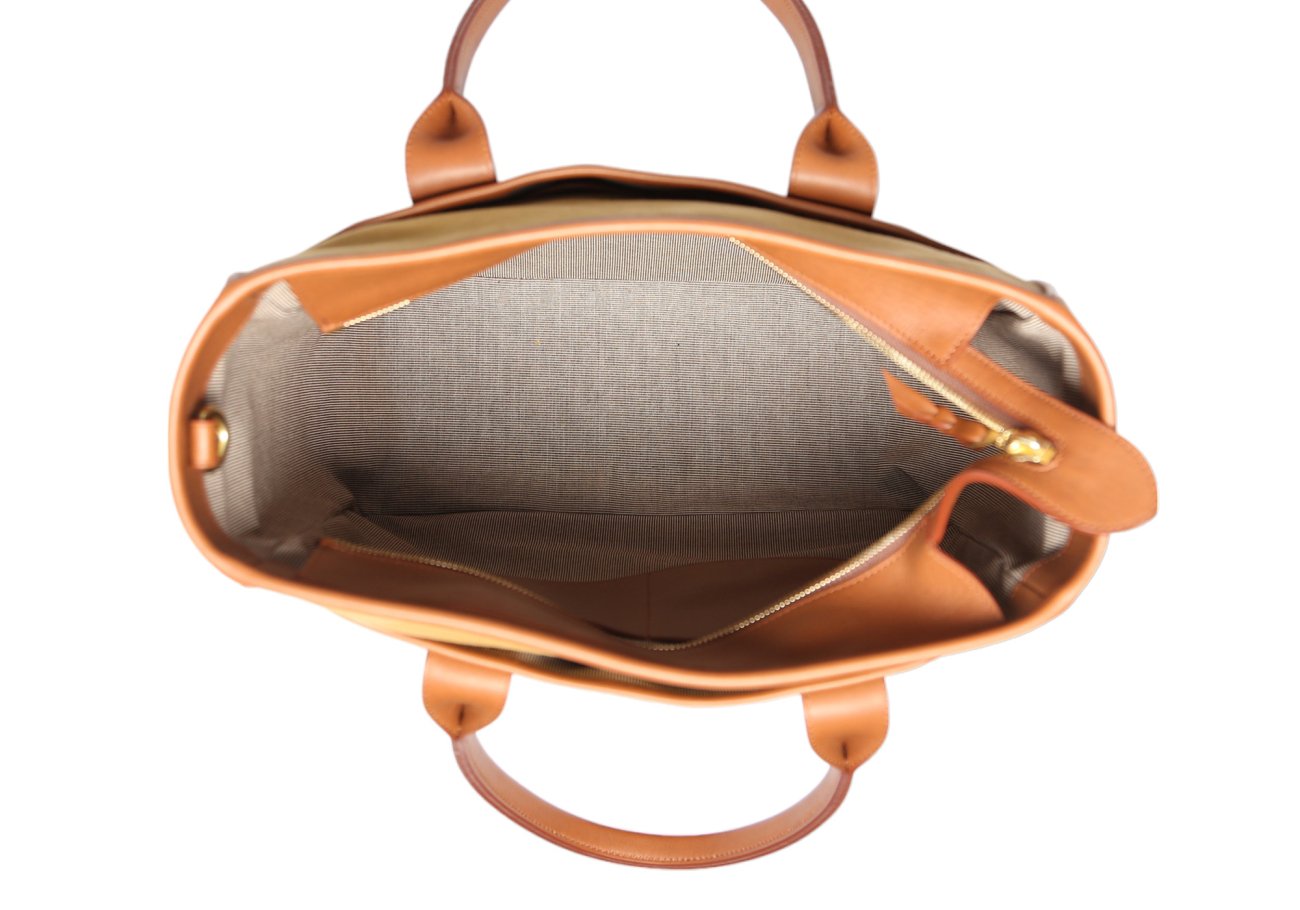 Commuter Tote - Sandstone Halley Stevensons Fabric / Cognac Trim - No Shoulder Strap