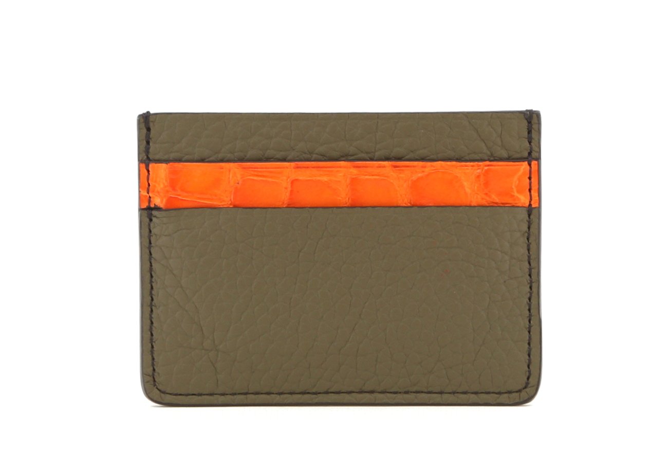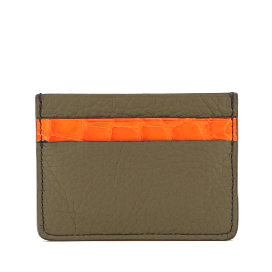 Double Card Case - Forest Taurillon / Orange Alligator - Chocolate Interior