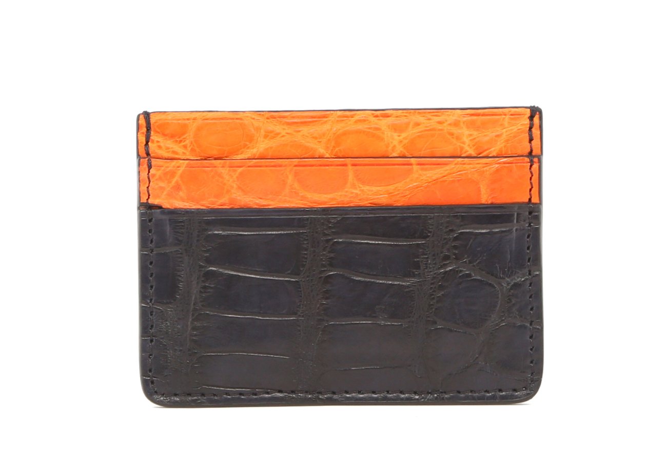 Double Card Case - Navy-Orange - Alligator