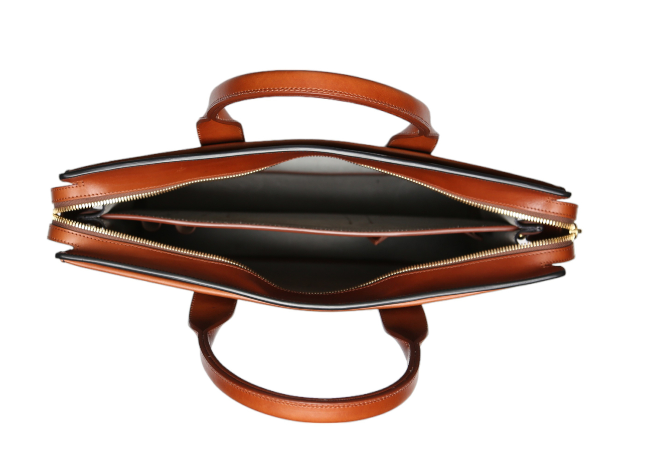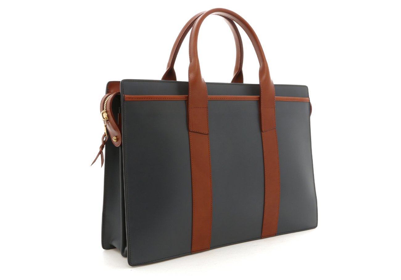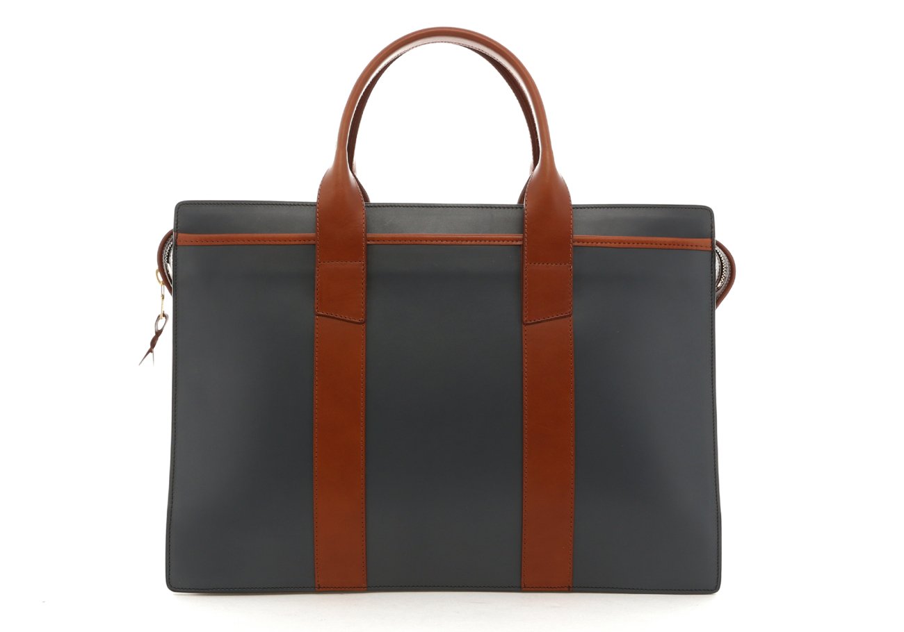 Double Zip-Top Briefcase - Battleship/Bombay Brown - Belting Leather