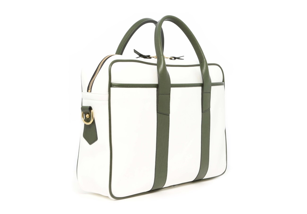 Frank Clegg products are made-to-order by our skilled craftsmen at our workshop in Fall River, Massachusetts. Most bags require 5-7 weeks for production due to the nature of this process. Additionally, please note that we close for two weeks at the end of July and again at the end of December, which may cause production delays during those periods.