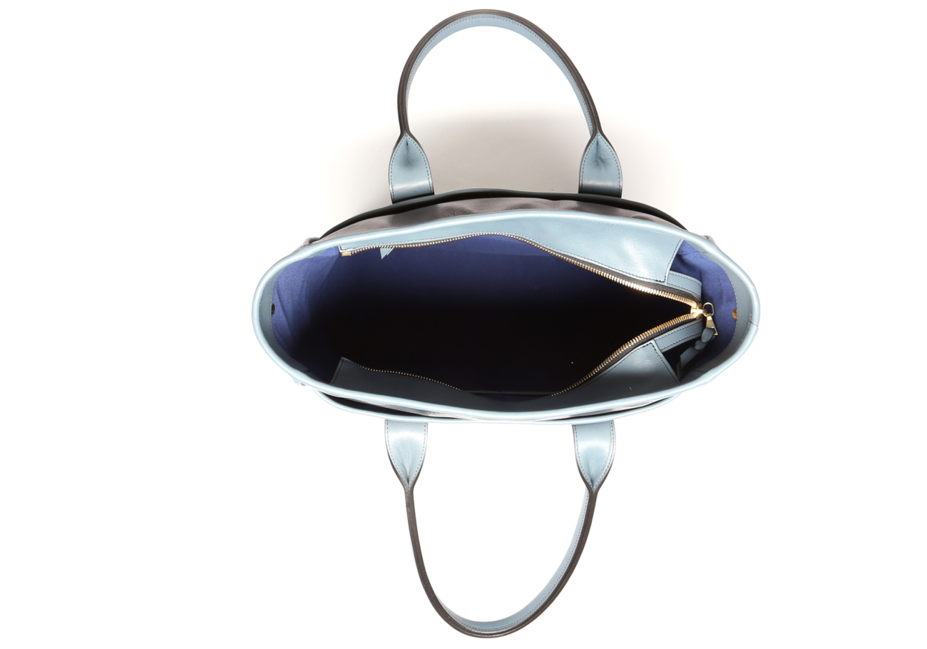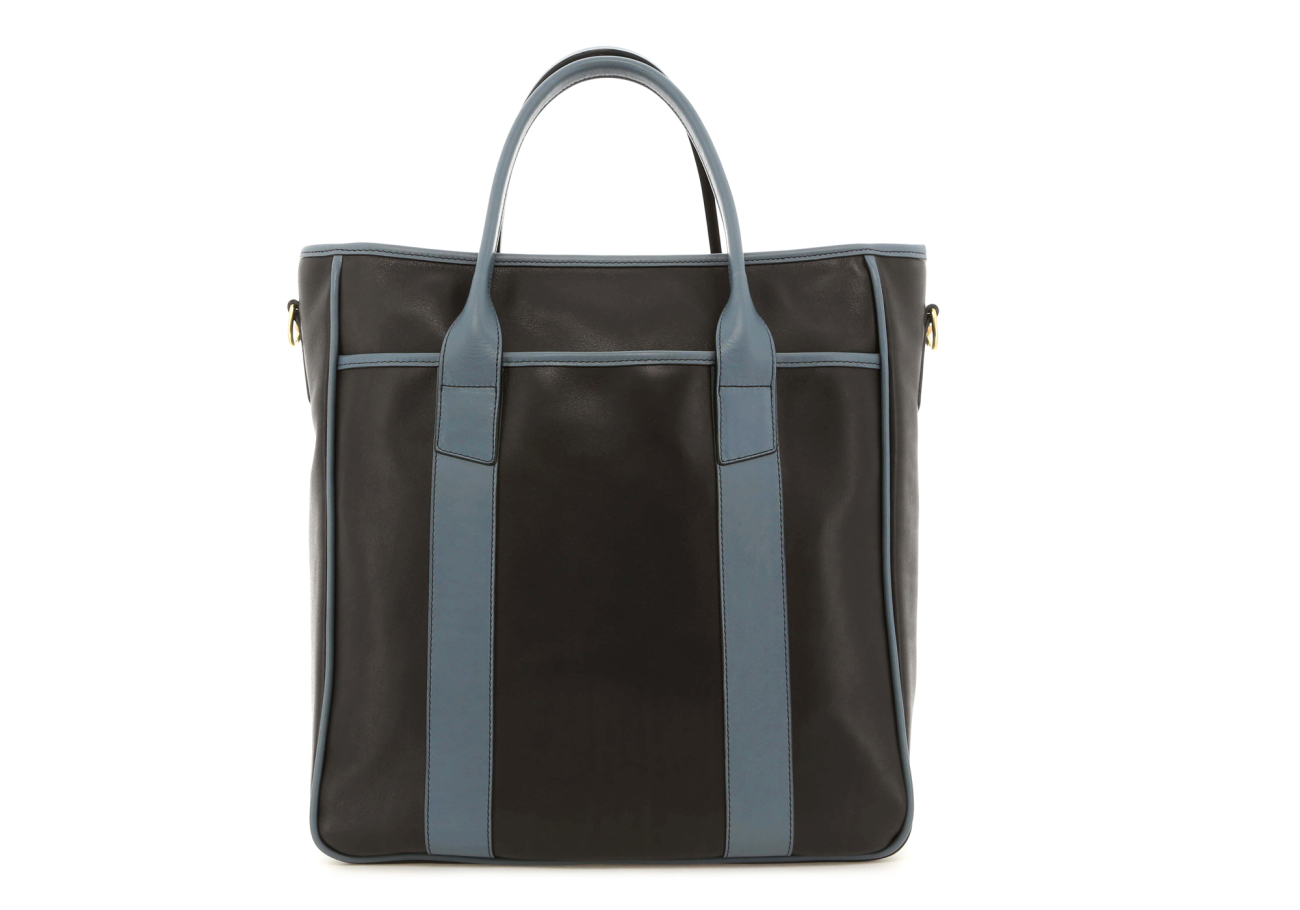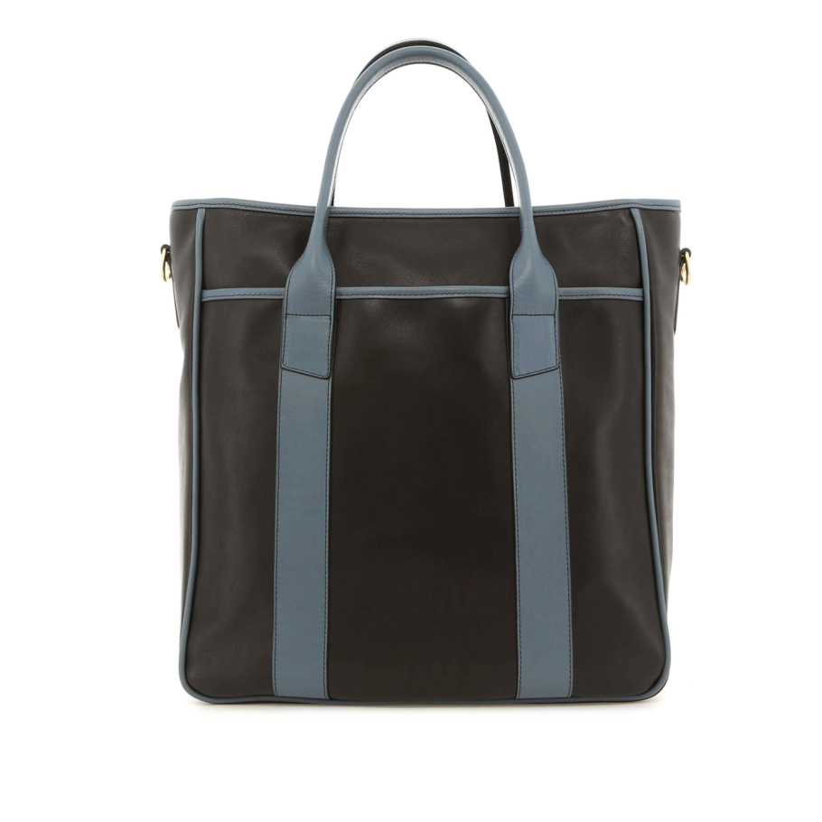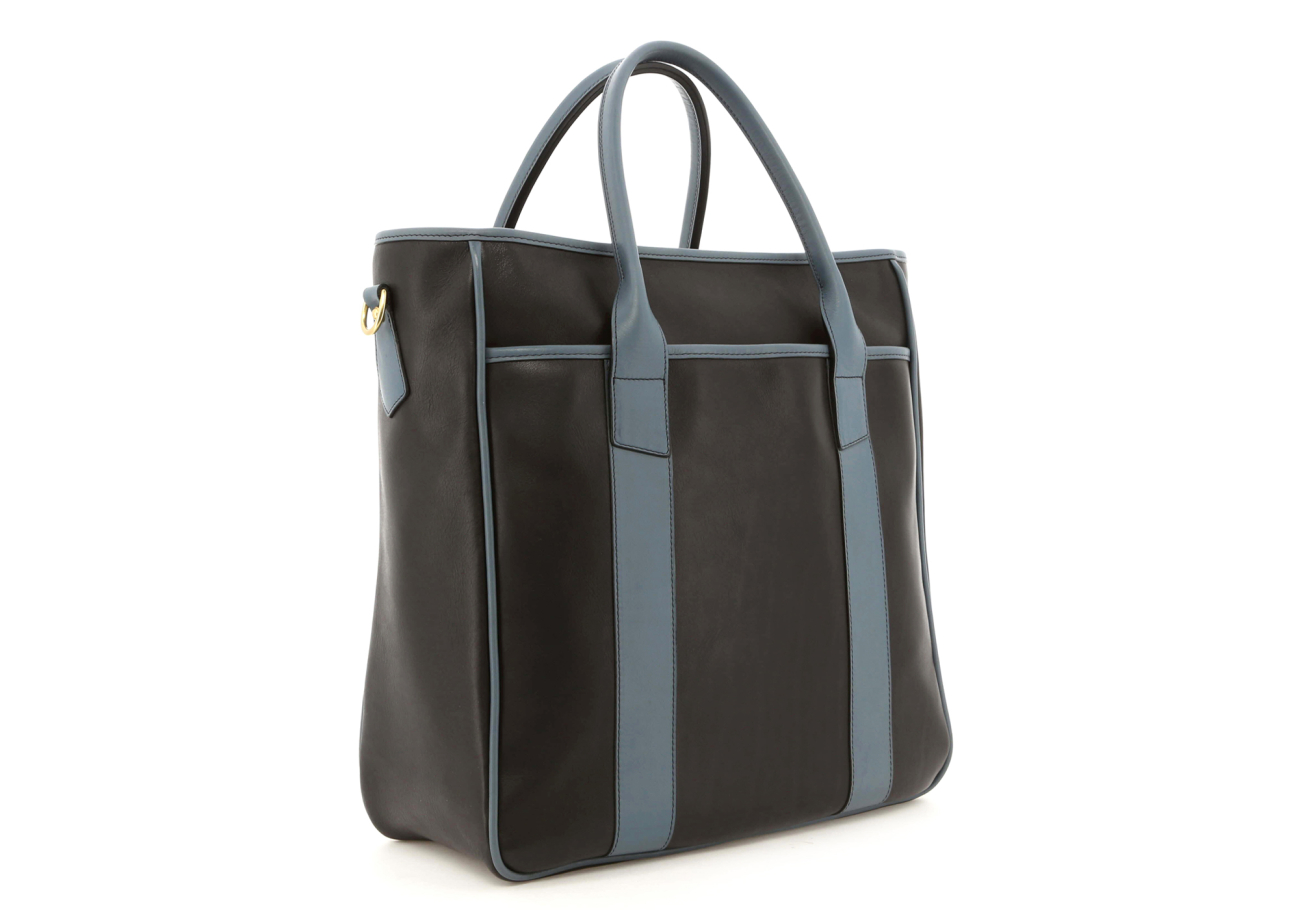 Commuter Tote - Black/Bluestone - Tumbled Leather - Charcoal Sunbrella