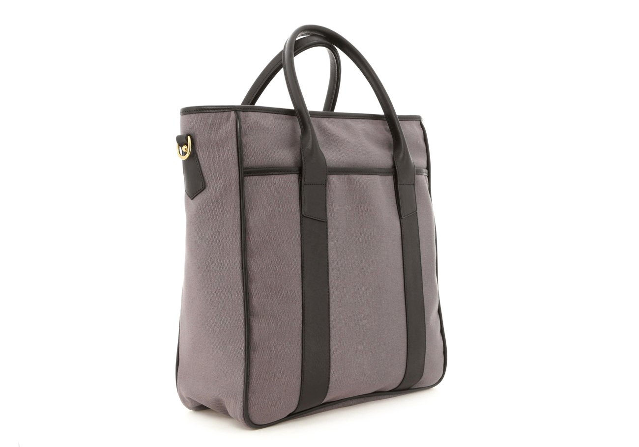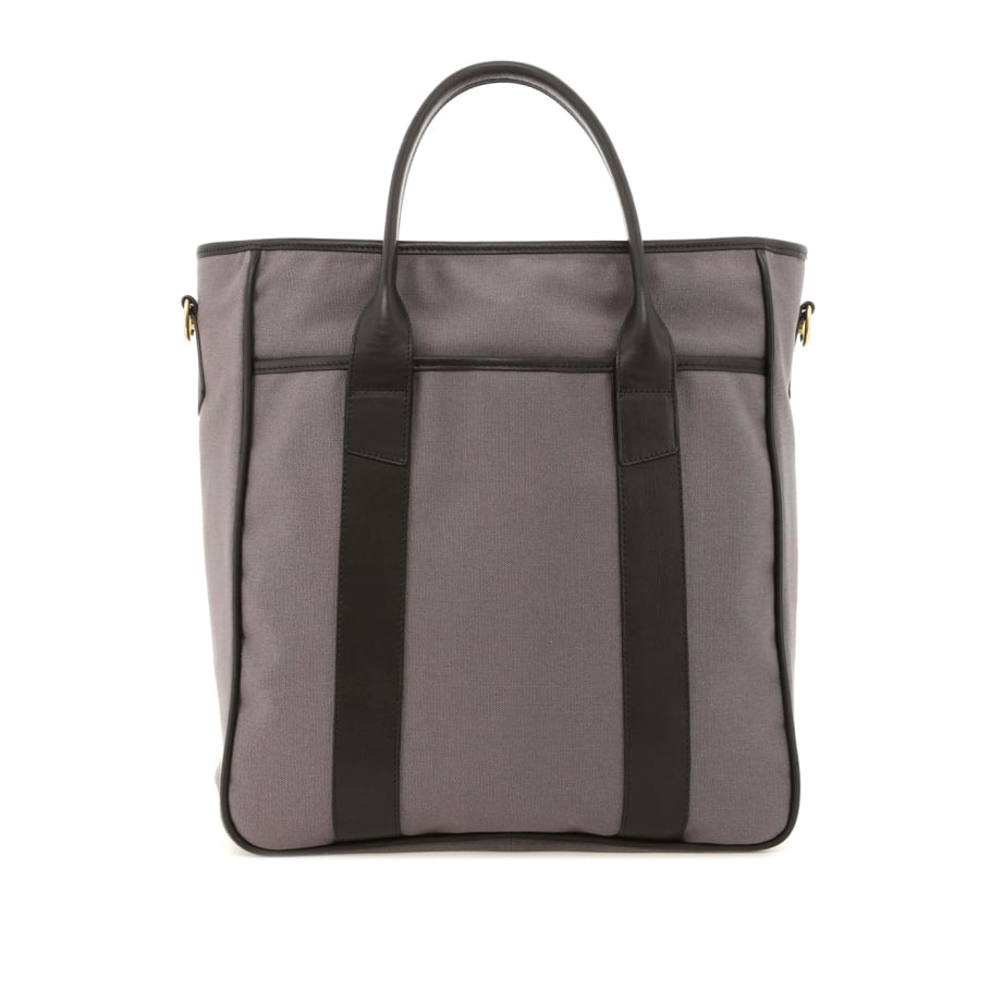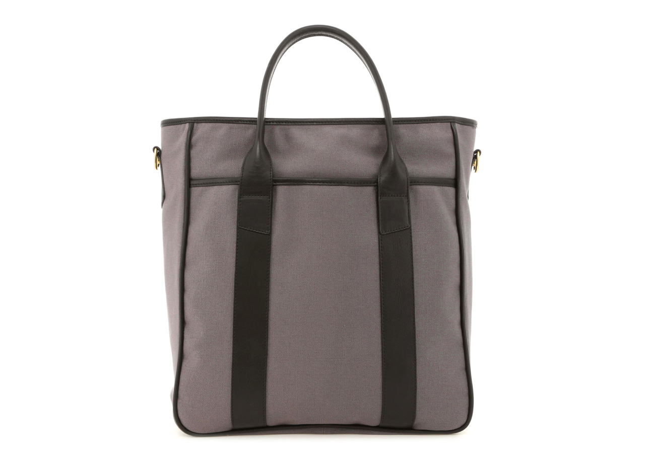 Commuter Tote - Grey Canvas / Black Tumbled Leather - Dubonnet Tweed Sunbrella