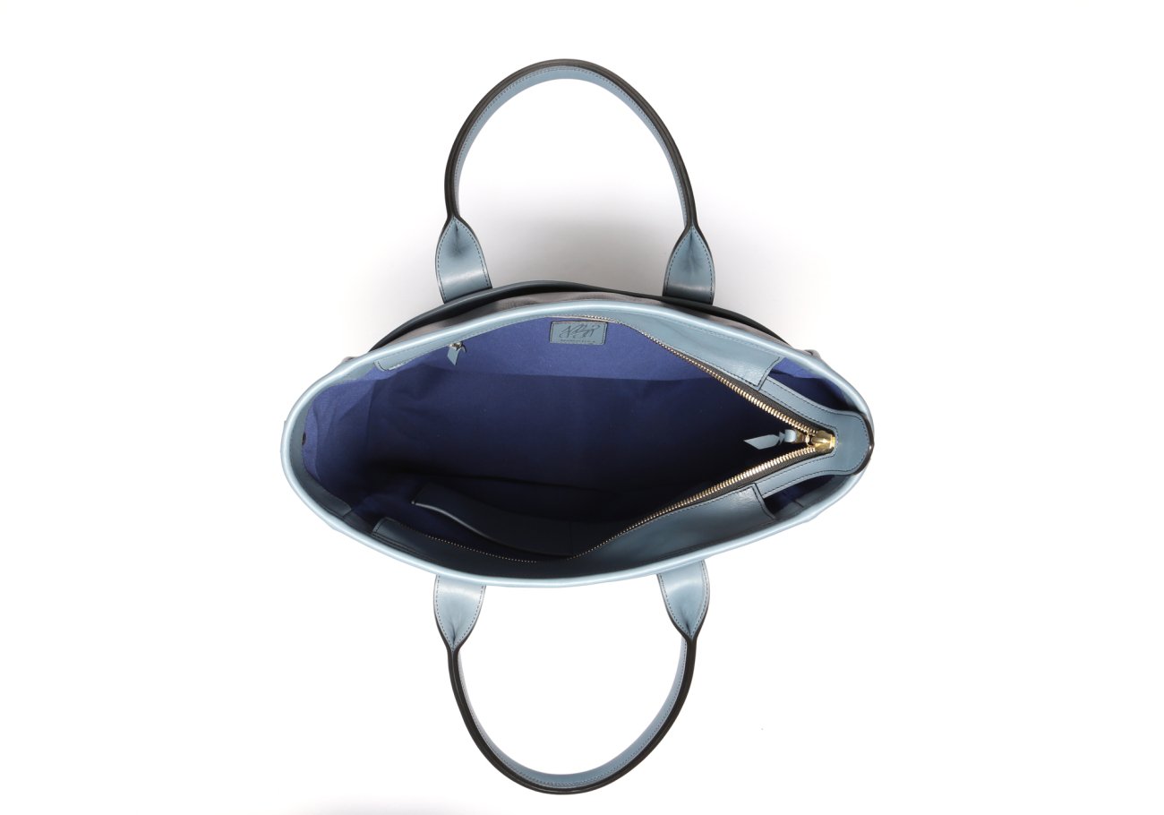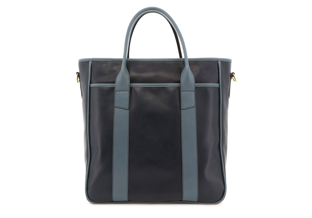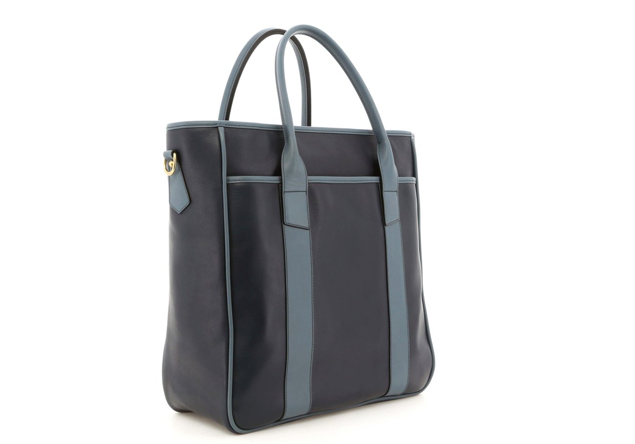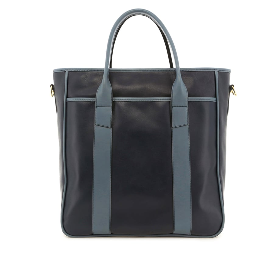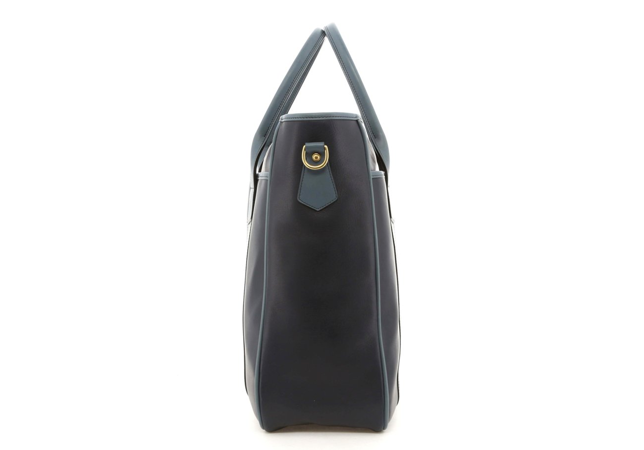 Commuter Tote - Navy/Bluestone - Tumbled Leather - Captain Navy Sunbrella