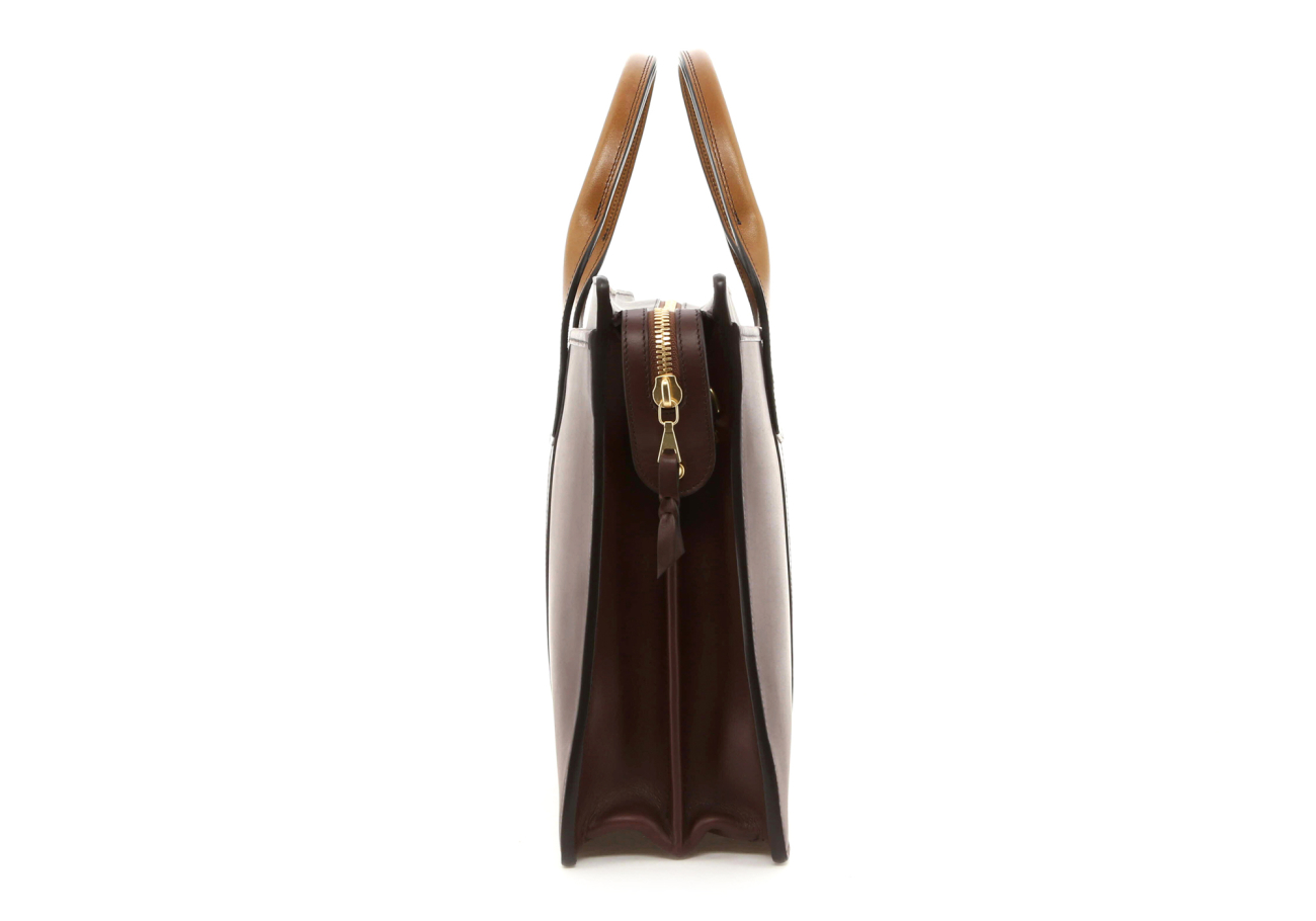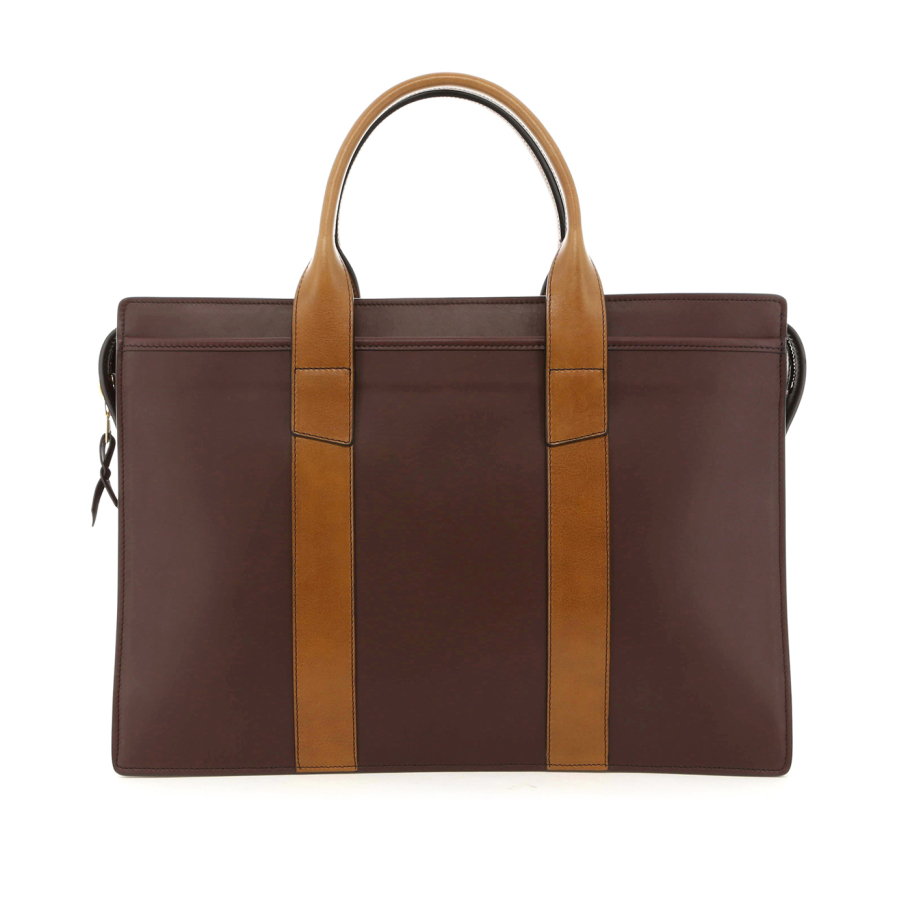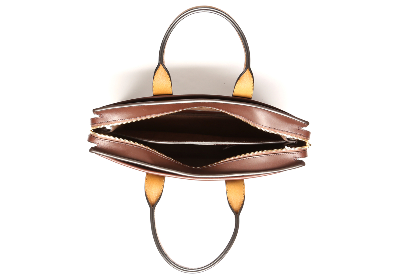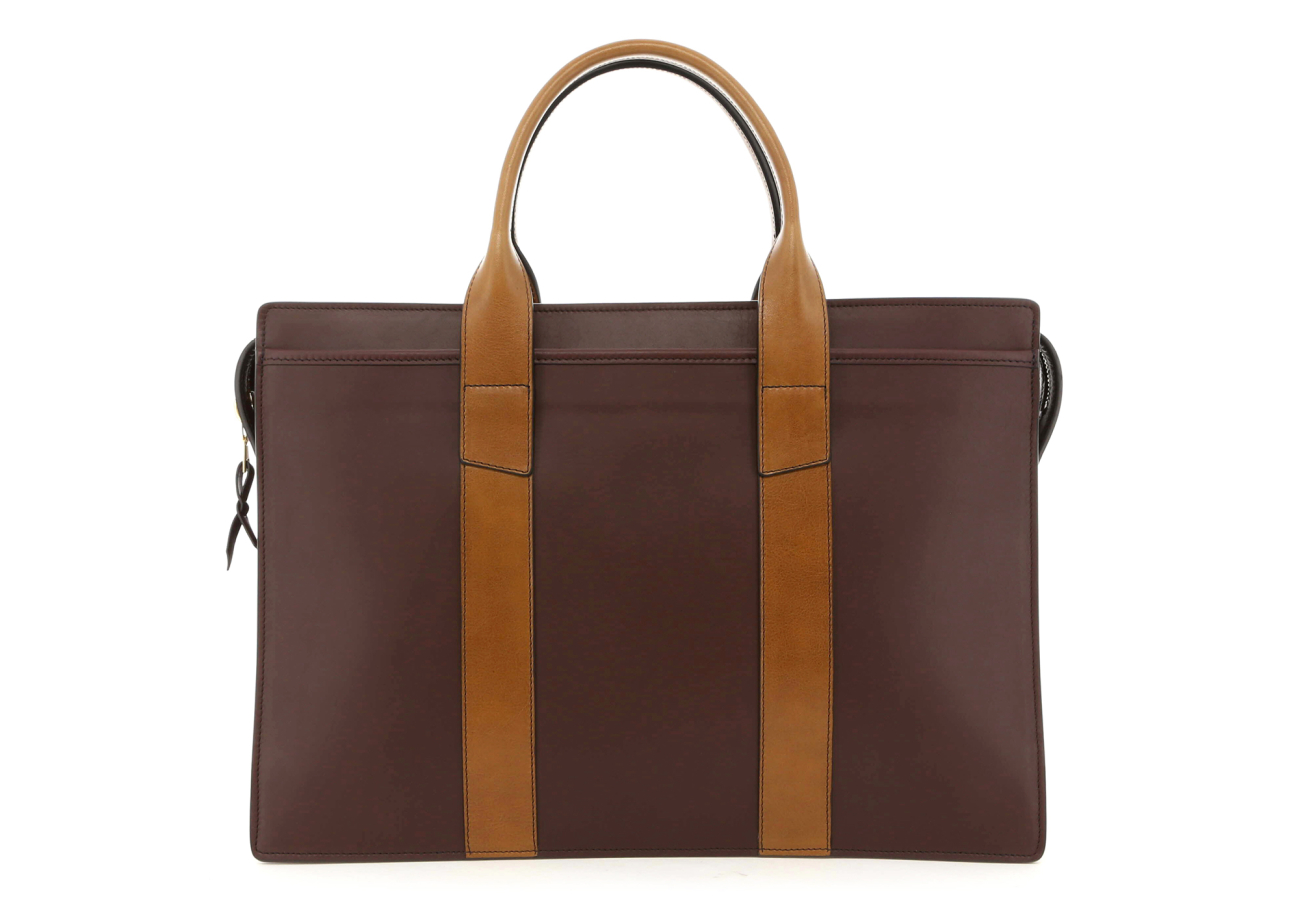 Double Zip-Top Briefcase - Chocolate/Metal Bronze - Harness Belting Leather