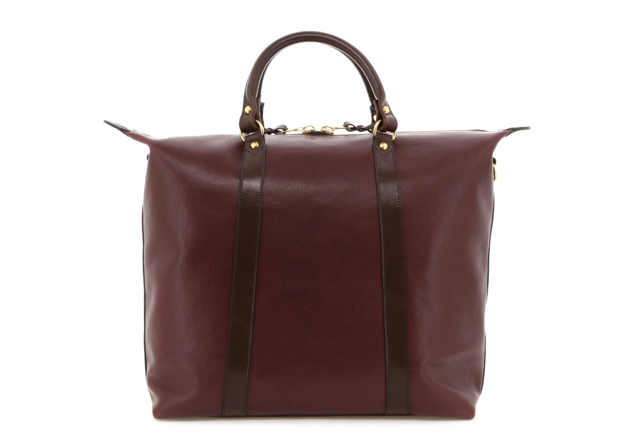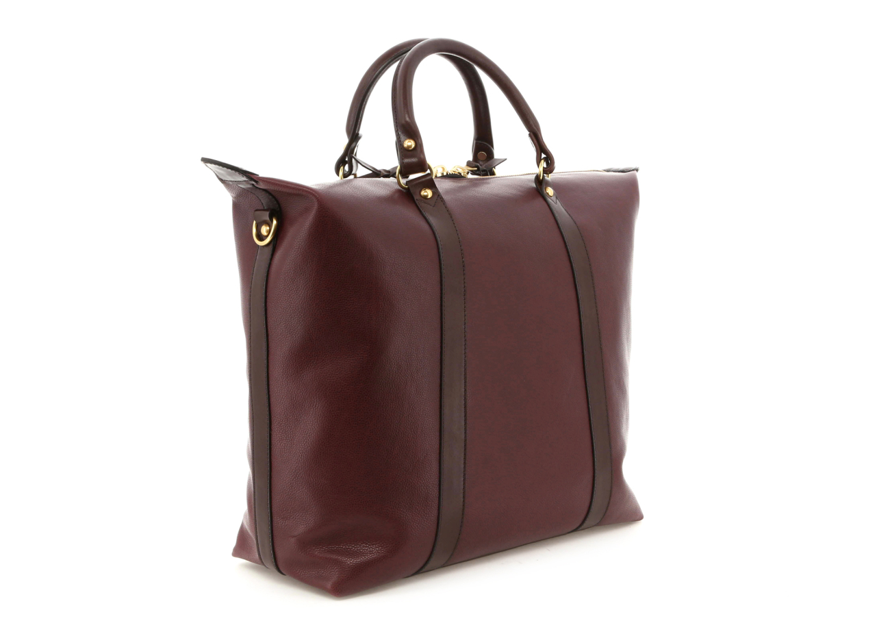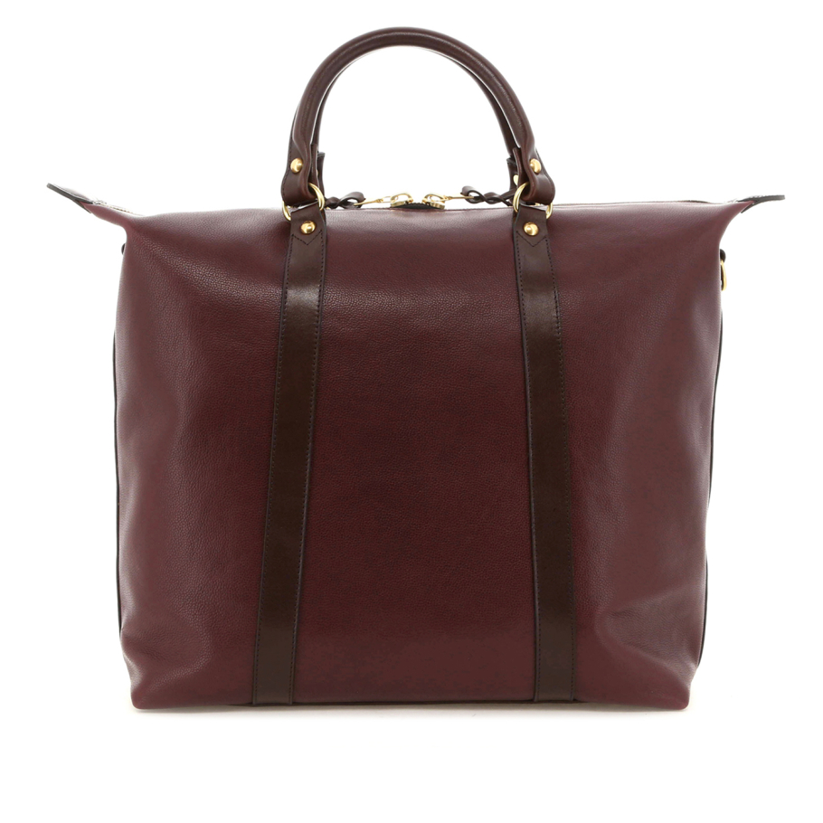 Hampton Tote - Eggplant/Chocolate - Soft Pebbled Leather - Sunflower Sunbrella