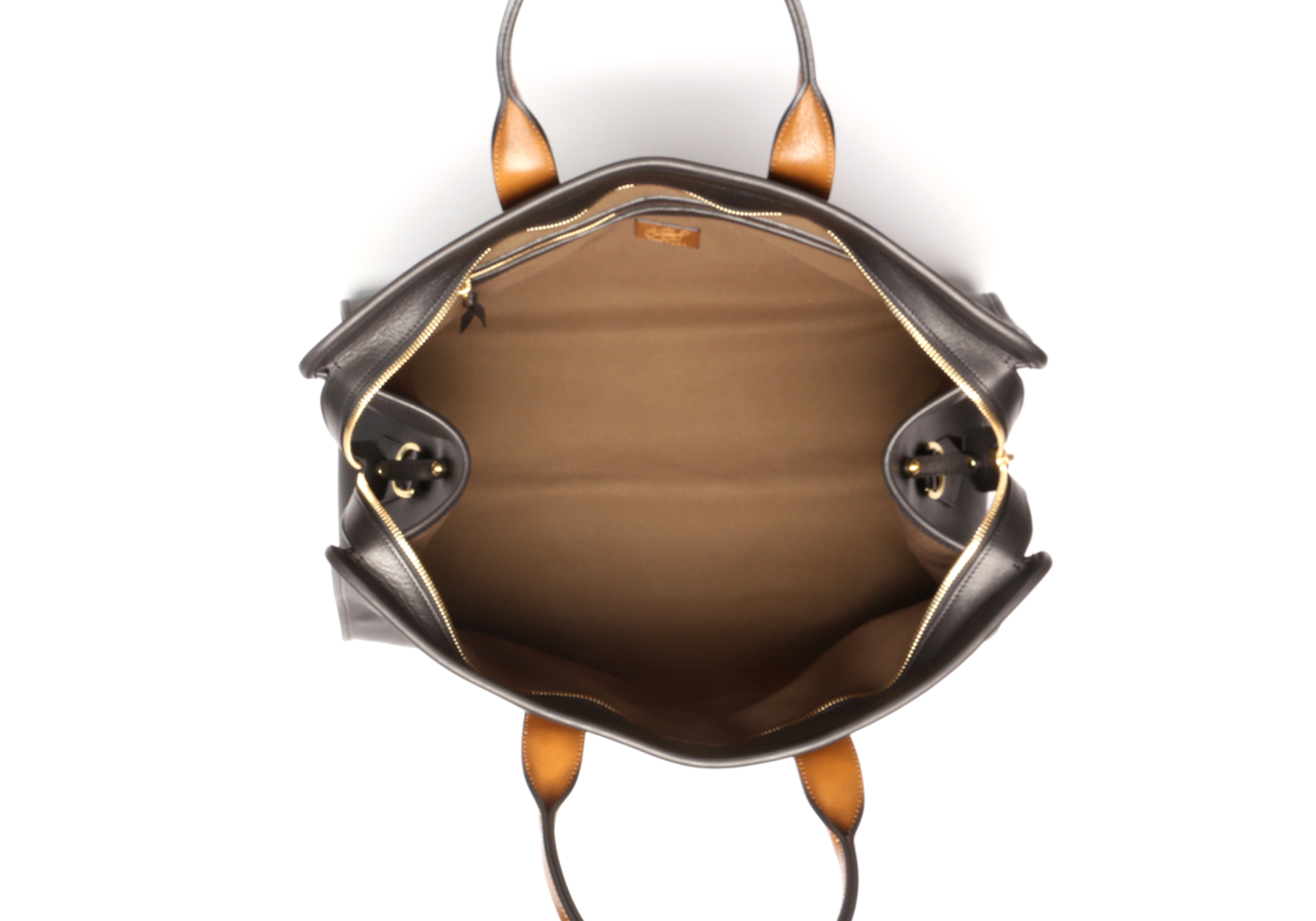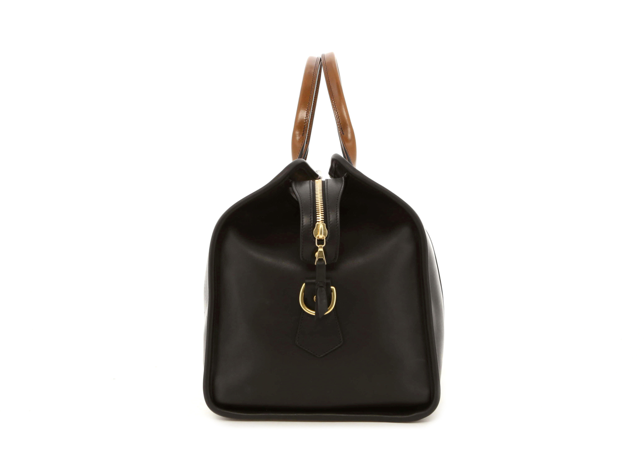 Signature Travel Duffle - Black/Golden Brown - Tumbled Leather / Harness - Dark Olive Canvas
