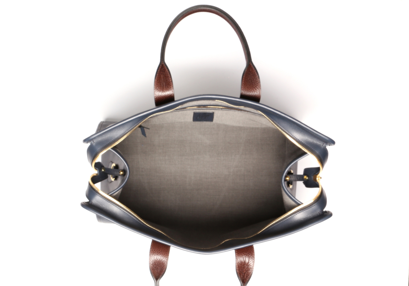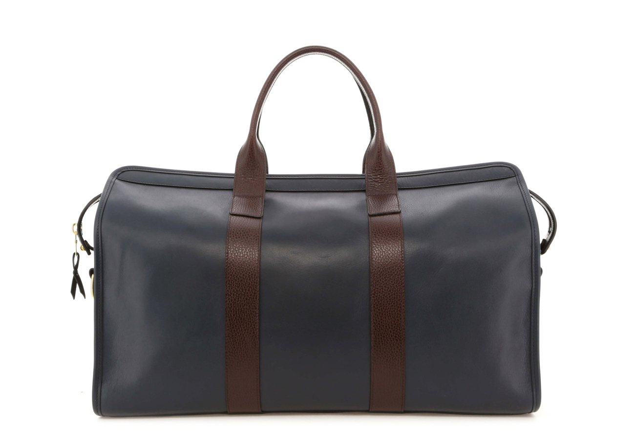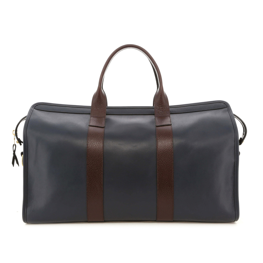 Signature Travel Duffle - Navy Tumbled / Java Brown Pebbled Leather - Charcoal Tweed