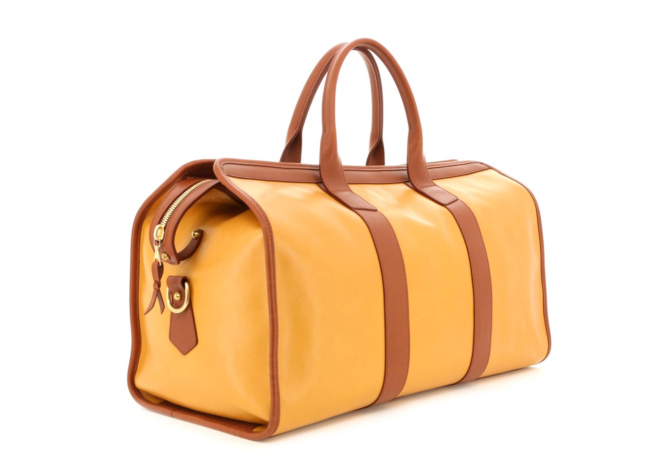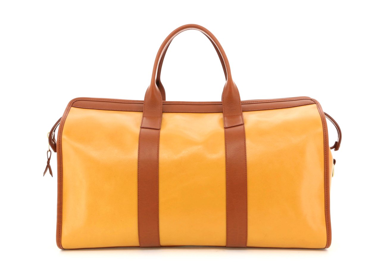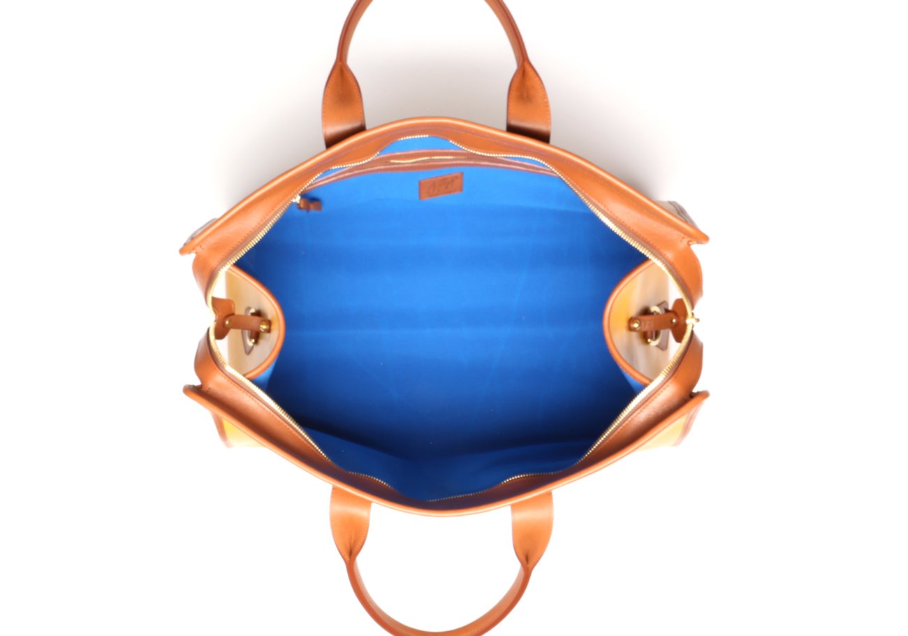 Signature Travel Duffle - Ochre/Cognac - Tumbled Leather - Pacfic Blue Sunbrella