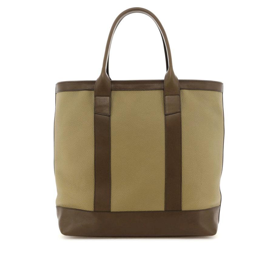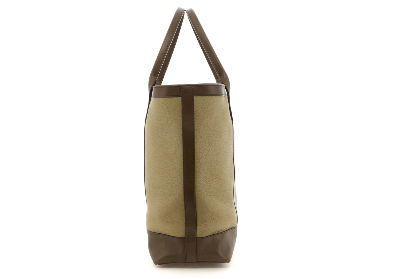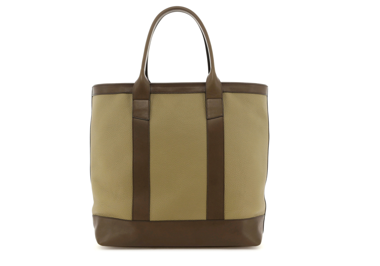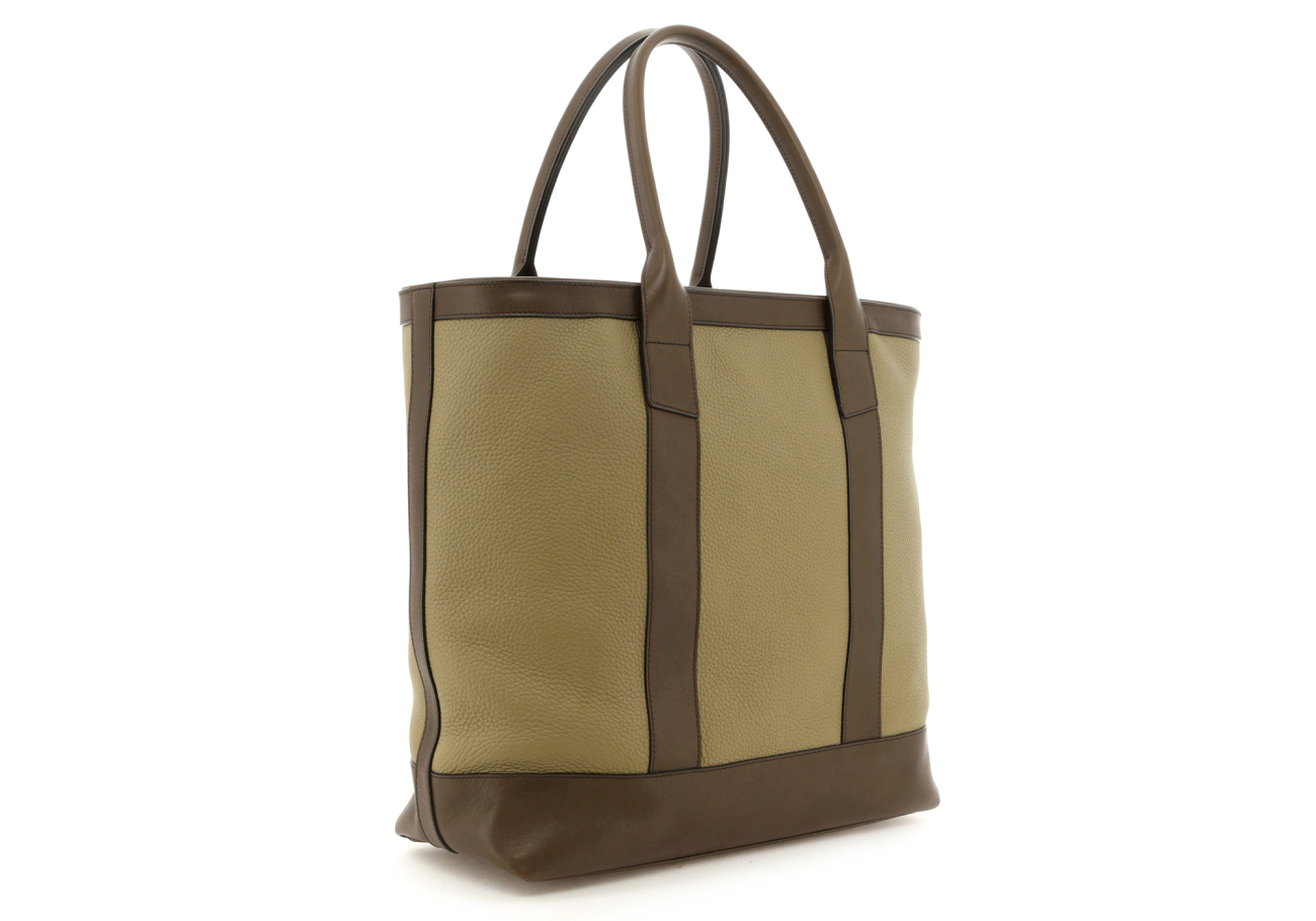 Tall Tote - Light Military/Olive - Taurillon Leather - Zipper Closure - True Brown Sunbrella
