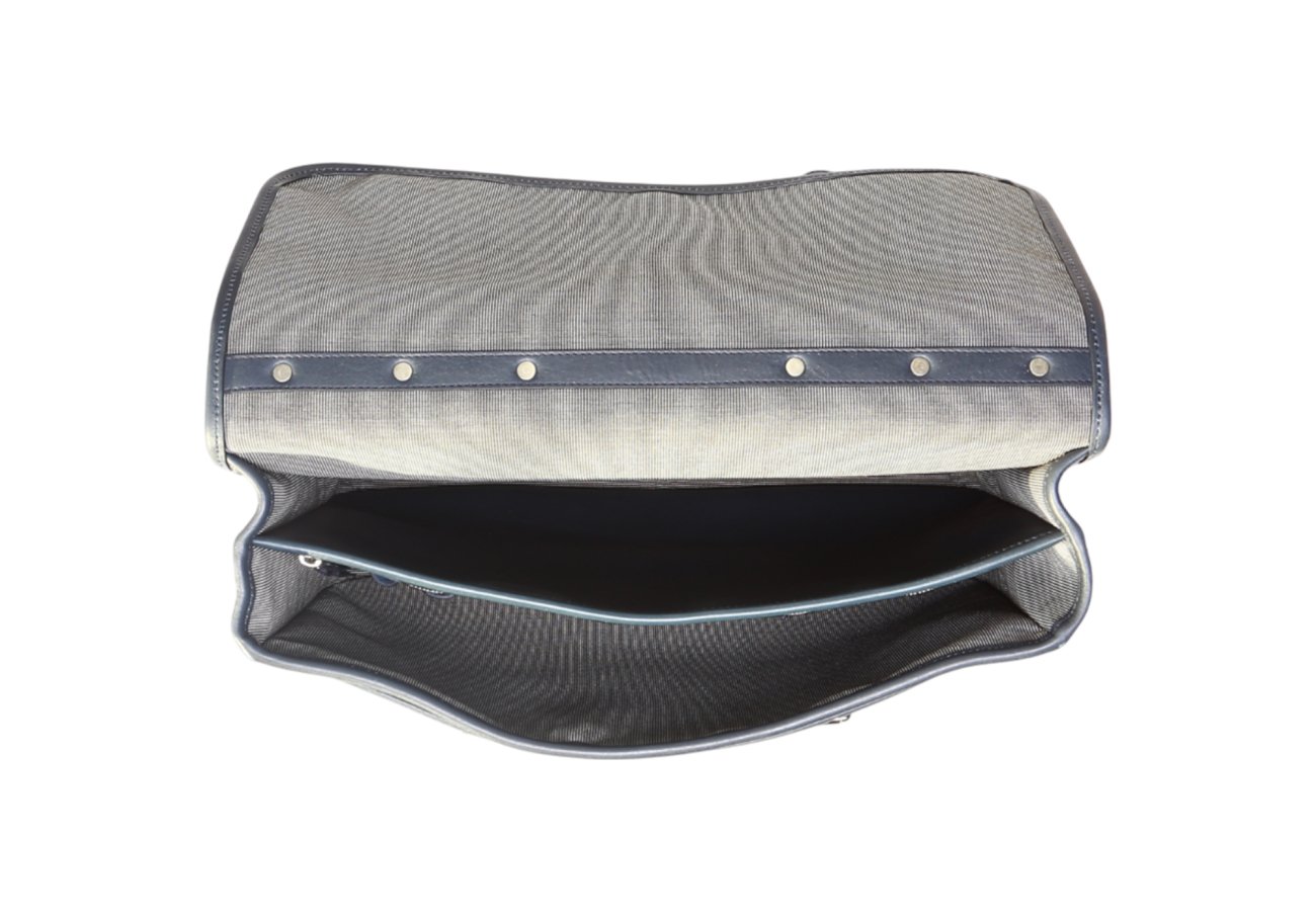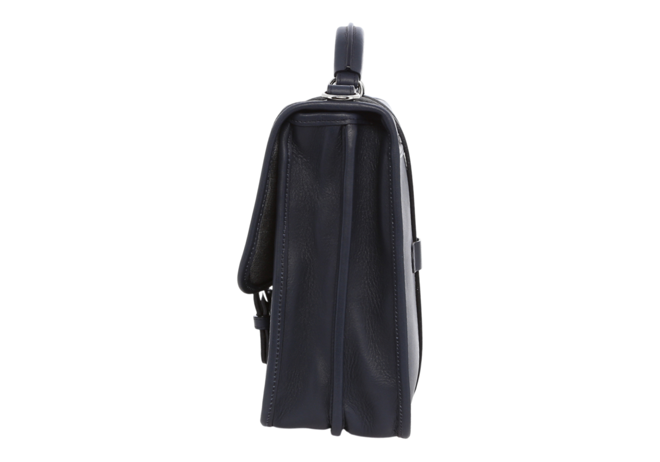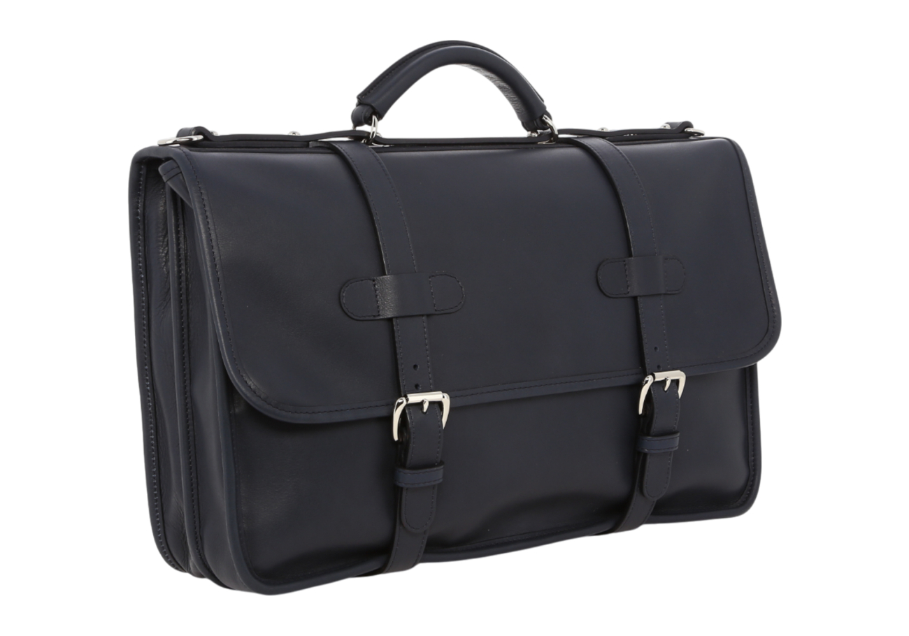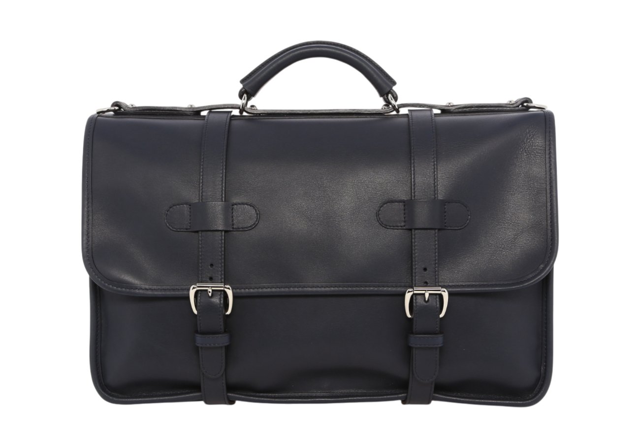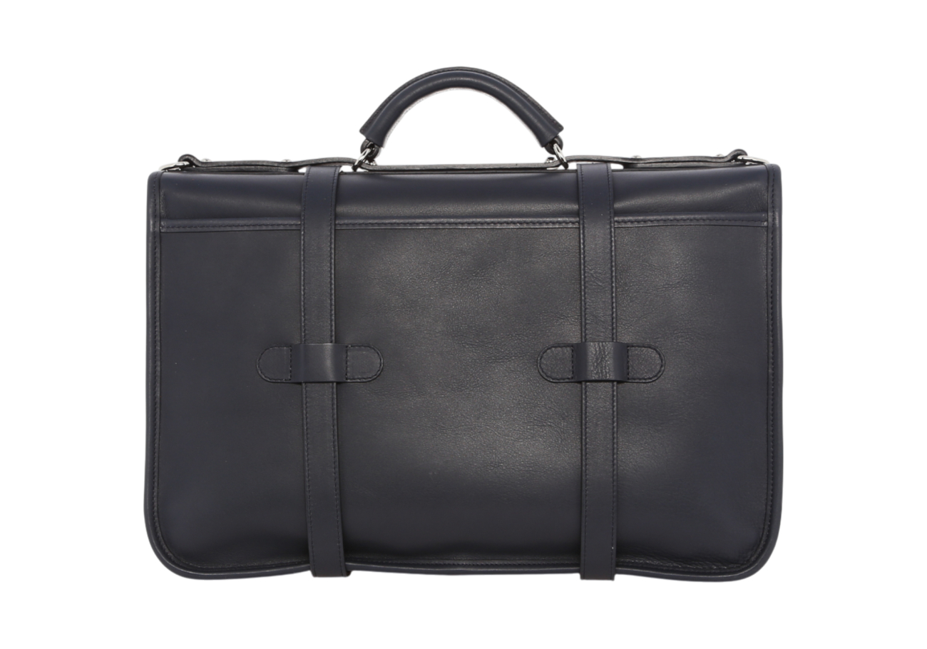 Bound Edge English Briefcase - Navy - Tumbled Leather - Silver Hardware - Sunbrella Lined
