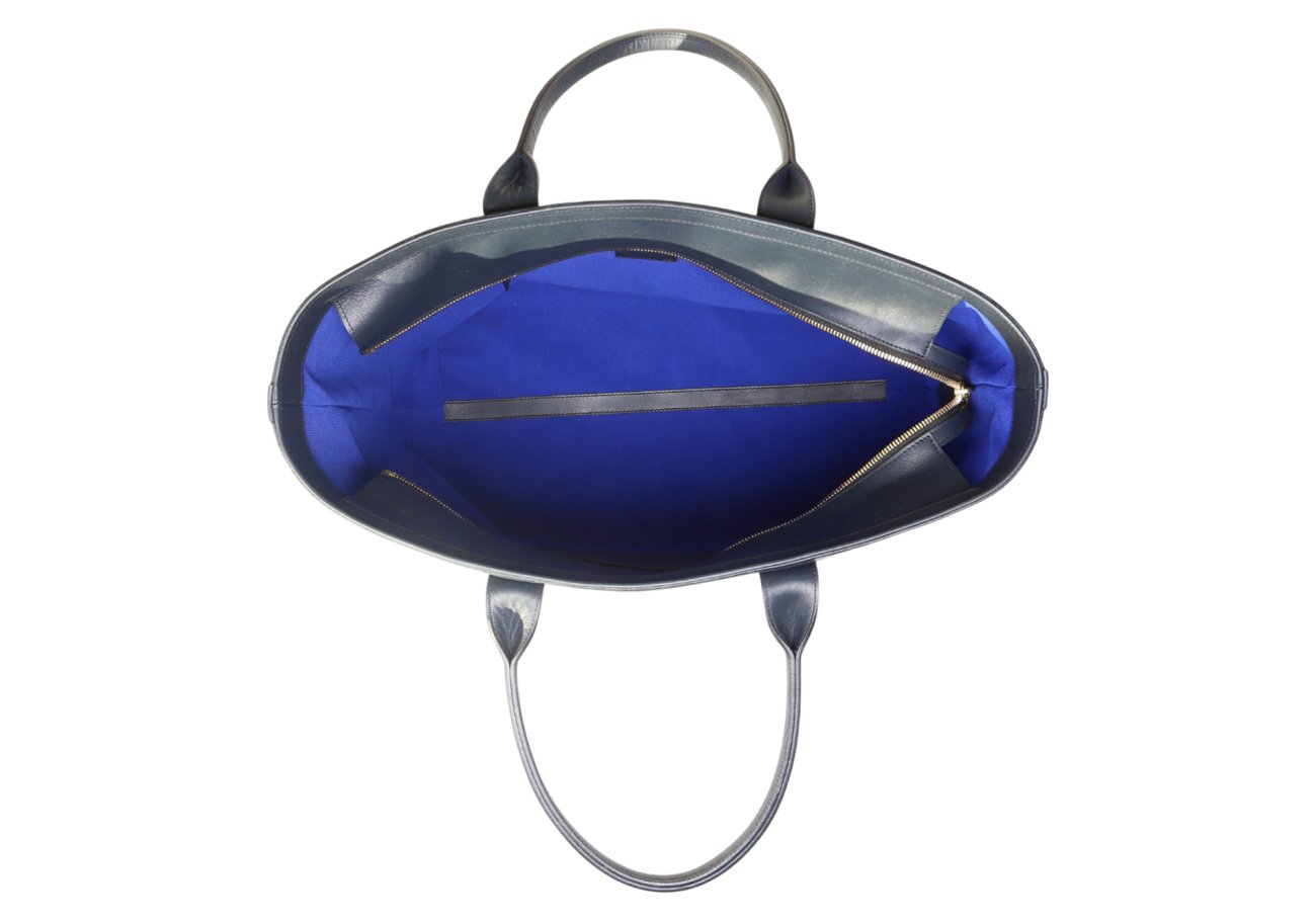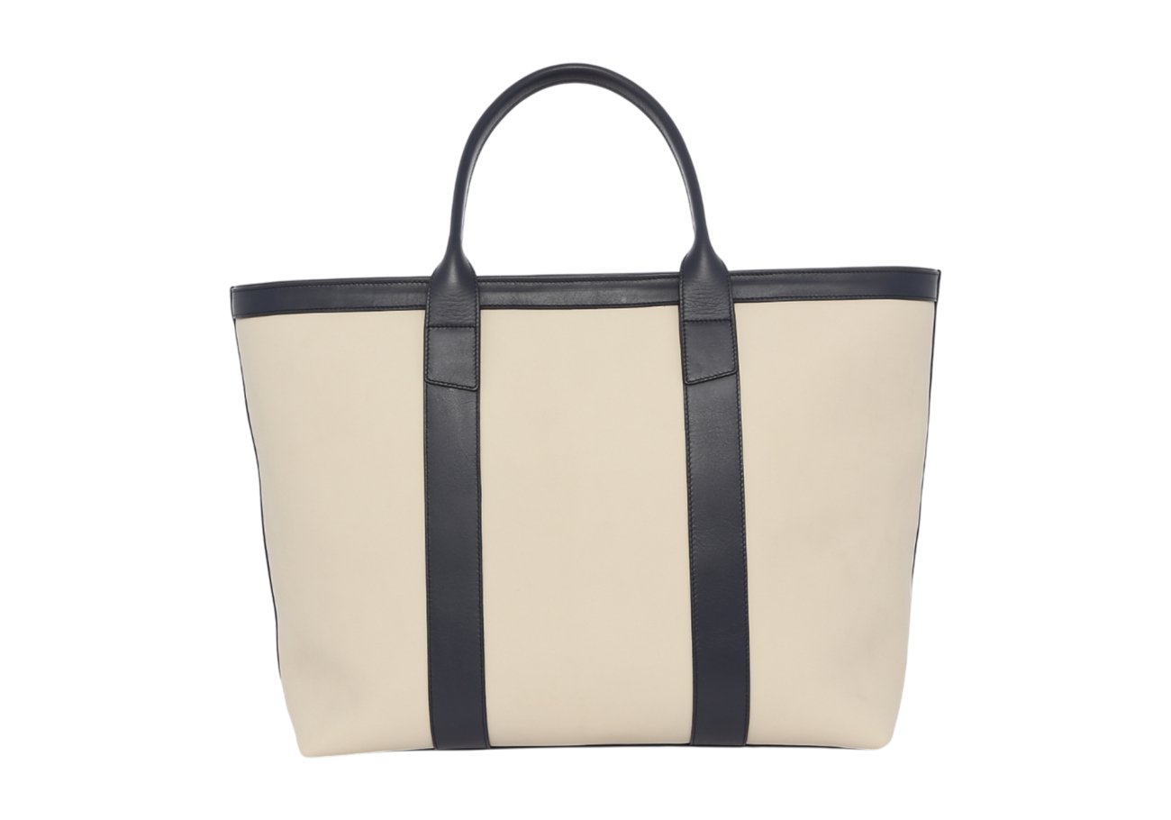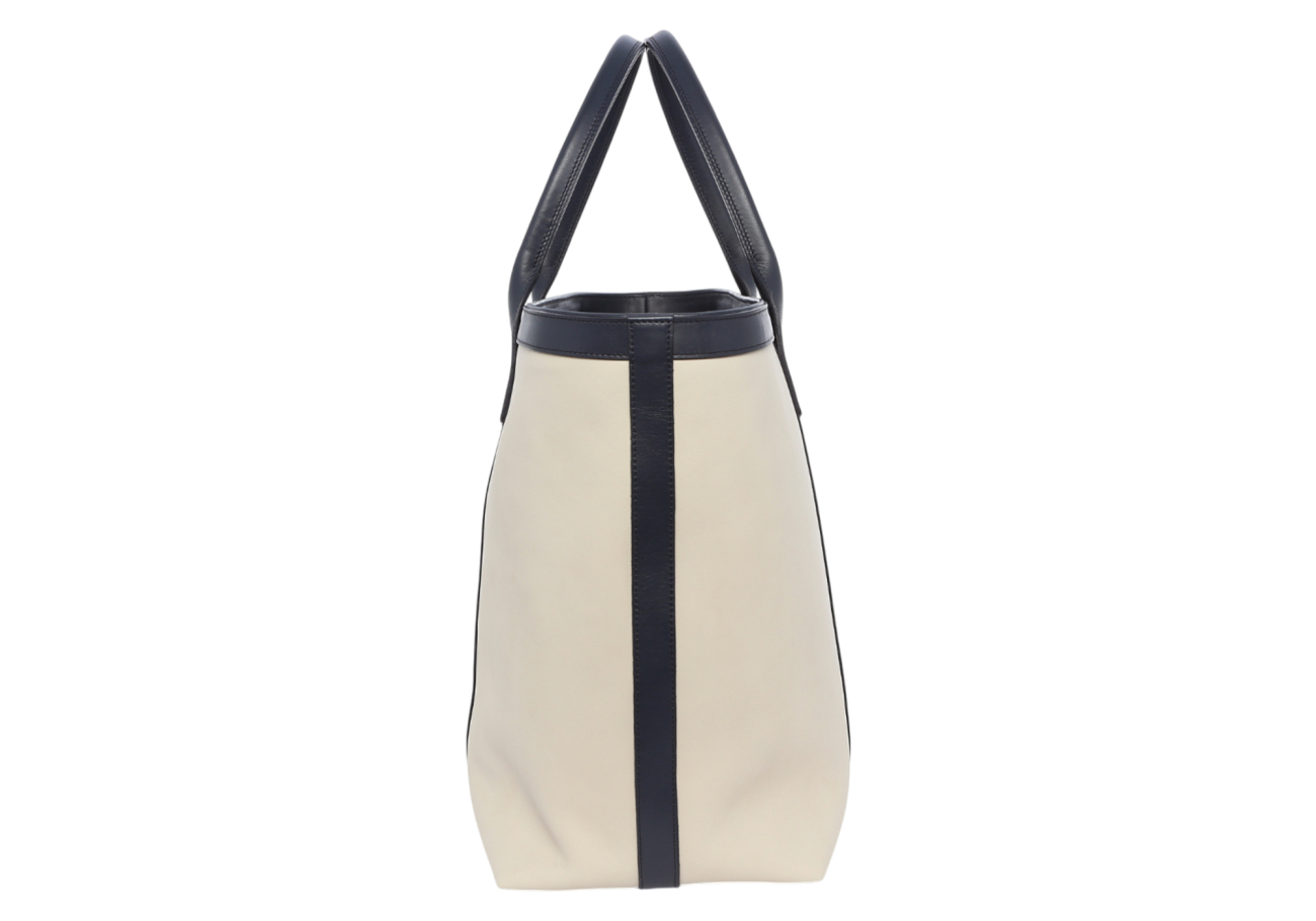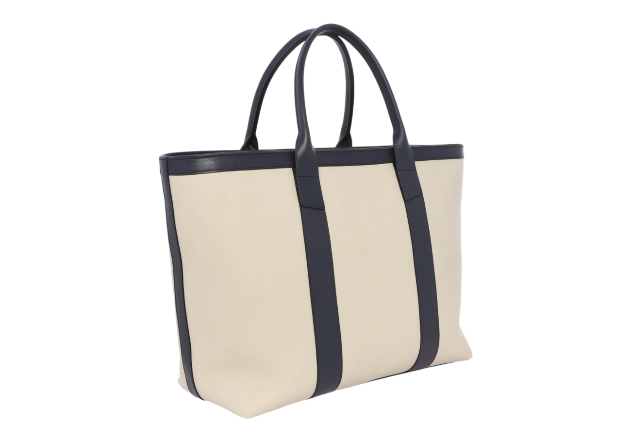 Signature Working Tote - Oatmeal/navy - Tumbled Leather - Zipper Closure - Ocean Blue Sunbrella