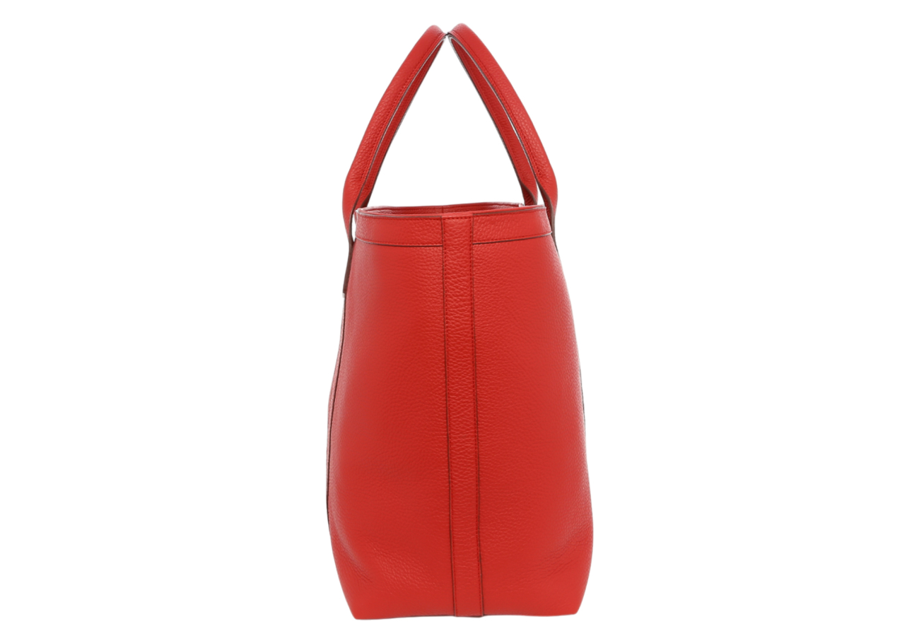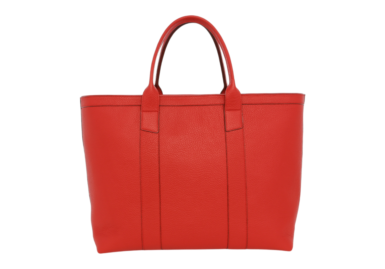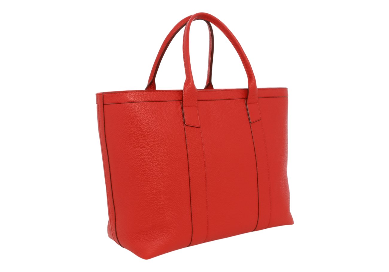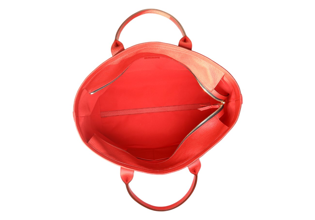 Signature Working Tote - Red - Pebbled Tumbled Leather - Zipper Closure - Red Sunbrella